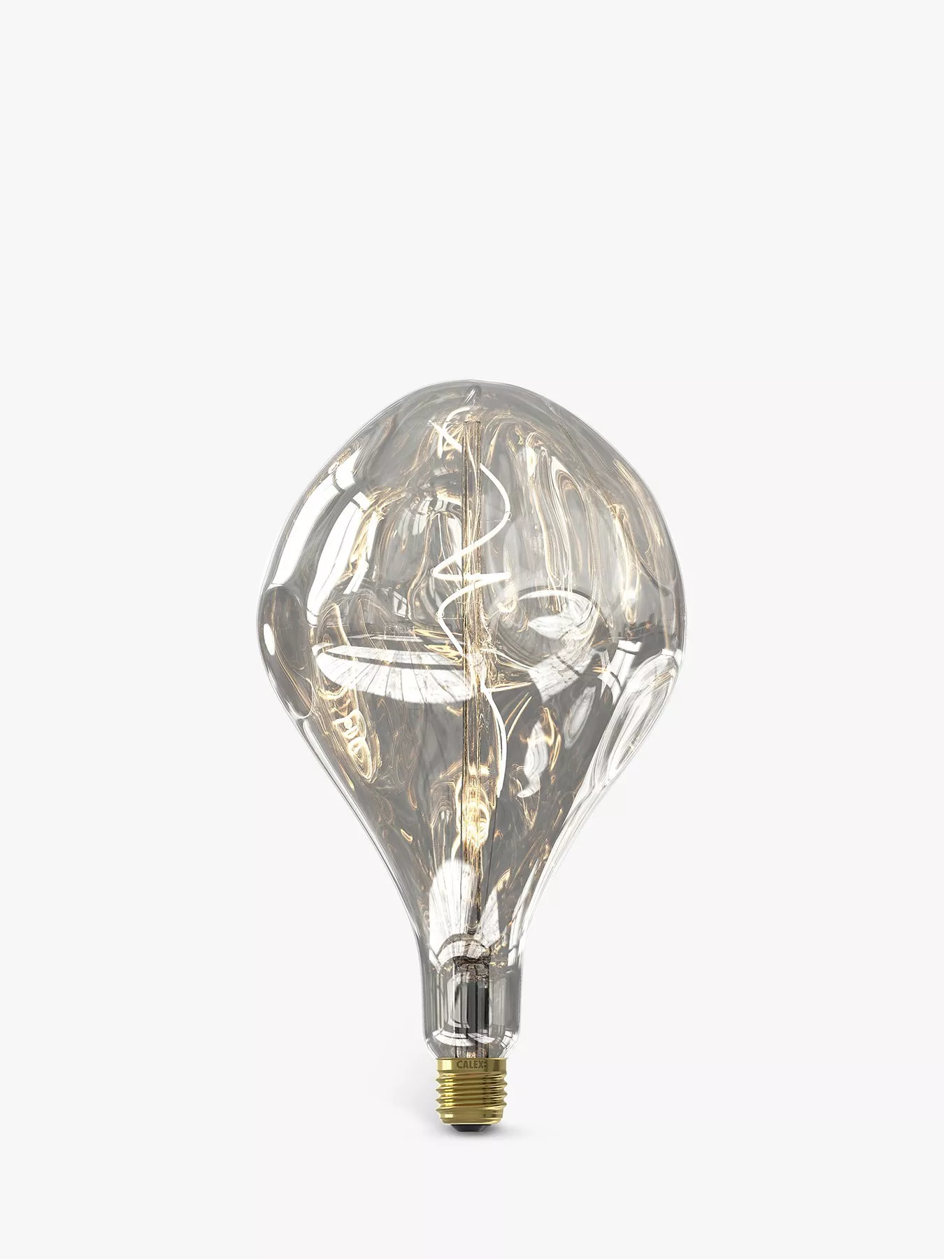 The XXL Series of bulbs from Calex offers eye-catching design with an extra warm, LED light output. This bulb has a fluid, imperfect shape and a subtle curved LED filament. The outside coating will reflect your interiors and the inside is also coated with a mirror-like coating, making this a unique and sophisticated light. Fully dimmable with a colour temperature of 1800K and a silver-tinted finish.