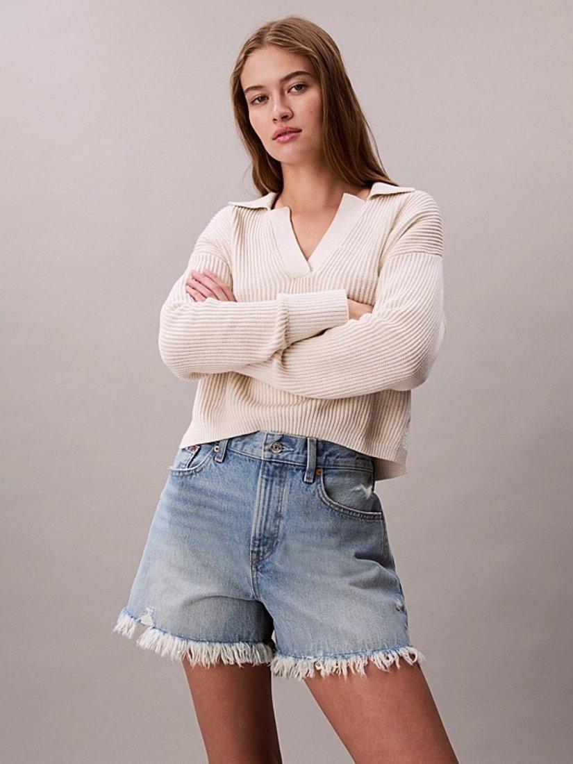 Calvin Klein90s Relaxed Frayed Denim Shorts, Bardot Blue