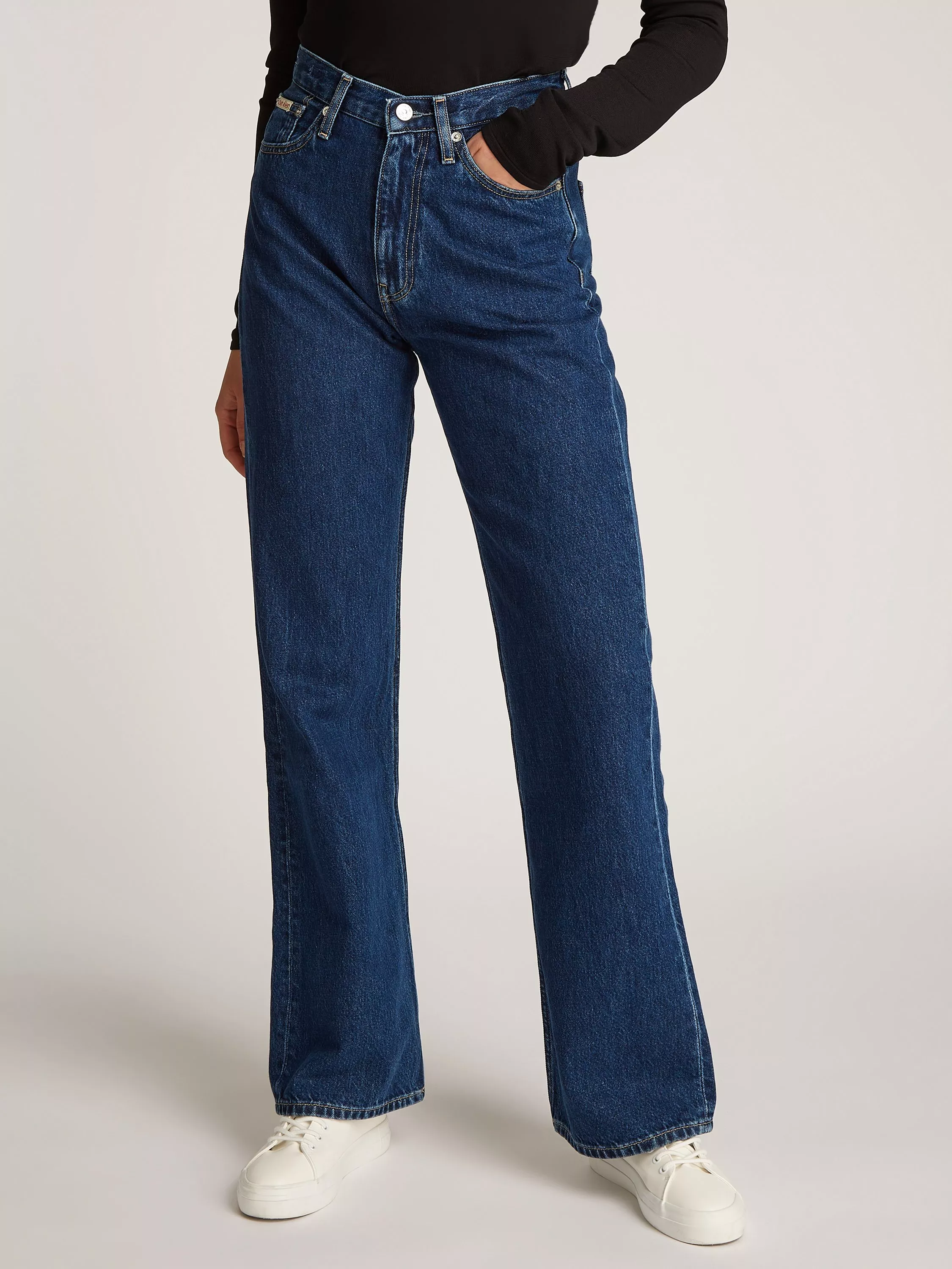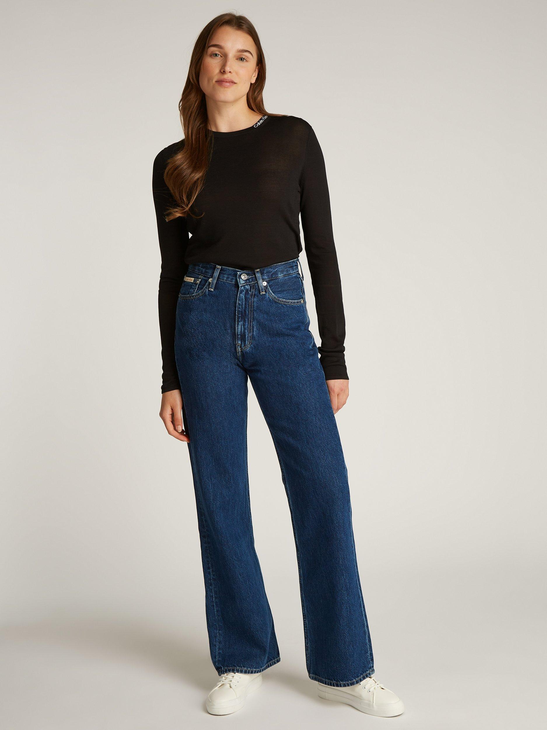 Shaped to a figure-hugging silhouette that falls into bootcut legs, these high-waisted jeans by Calvin Klein are made from pure cotton and fall to a regular length.