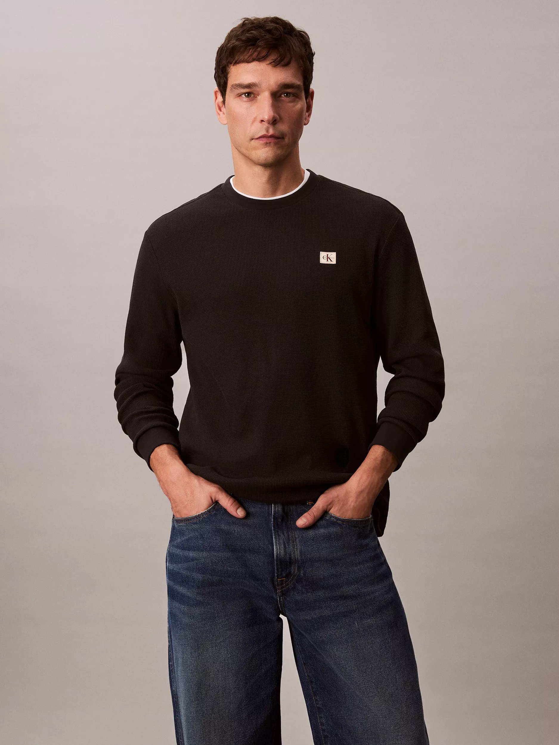 Designed with timeless, functional style, this piece from the Calvin Klein Heroes collection is a true wardrobe essential. Made from a soft cotton blend, the jersey has a subtle waffle texture and a regular fit. The crew neckline, long sleeves, and rib-knit cuffs give it a classic shape, while the Calvin Klein monogram badge on the chest adds a signature finishing touch. It's machine washable and can be tumble dried on a low setting.