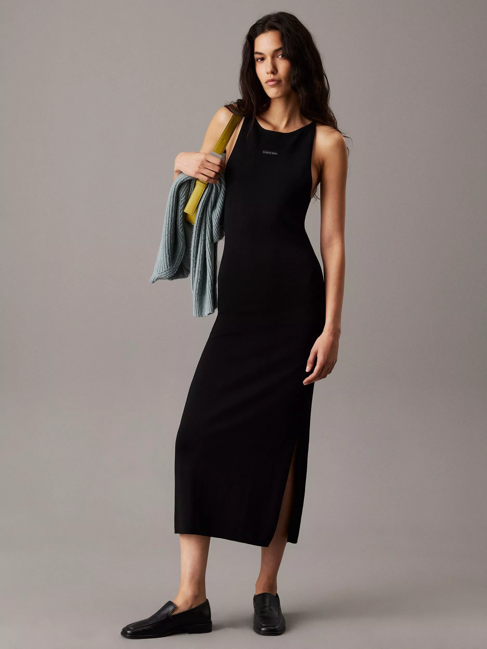 In a figure-skimming bodycon fit, this maxi dress from Calvin Klein is knitted from a soft viscose blend with a second-skin feel. With a crew neck, this sleeveless style is anything but simple.