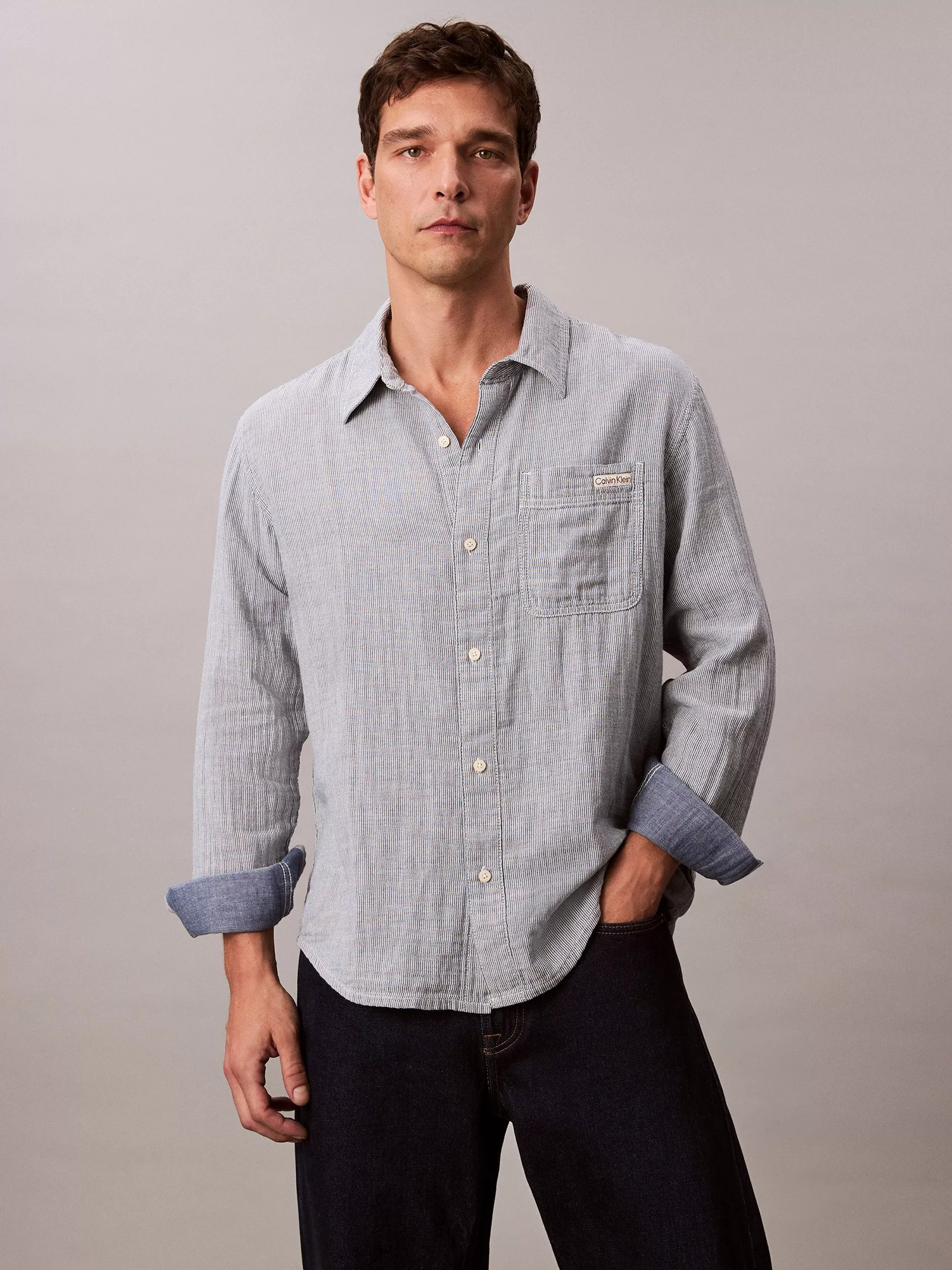 Calvin Klein's long-sleeve striped shirt delivers comfort and an easy, smart look for daily plans. Thoughtfully designed for all-day wear, its classic collar and regular cut offer a flexible fit - making it a reliable, everyday staple in your wardrobe.