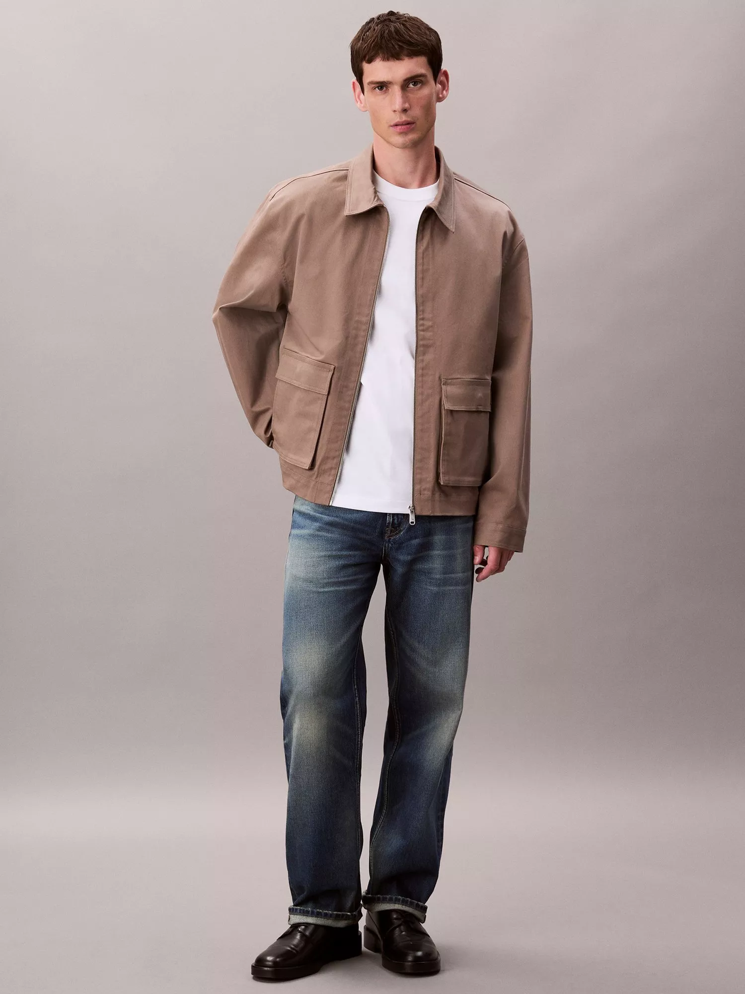 Calvin KleinCotton Zip-Through Utility Jacket, Taupe Tone