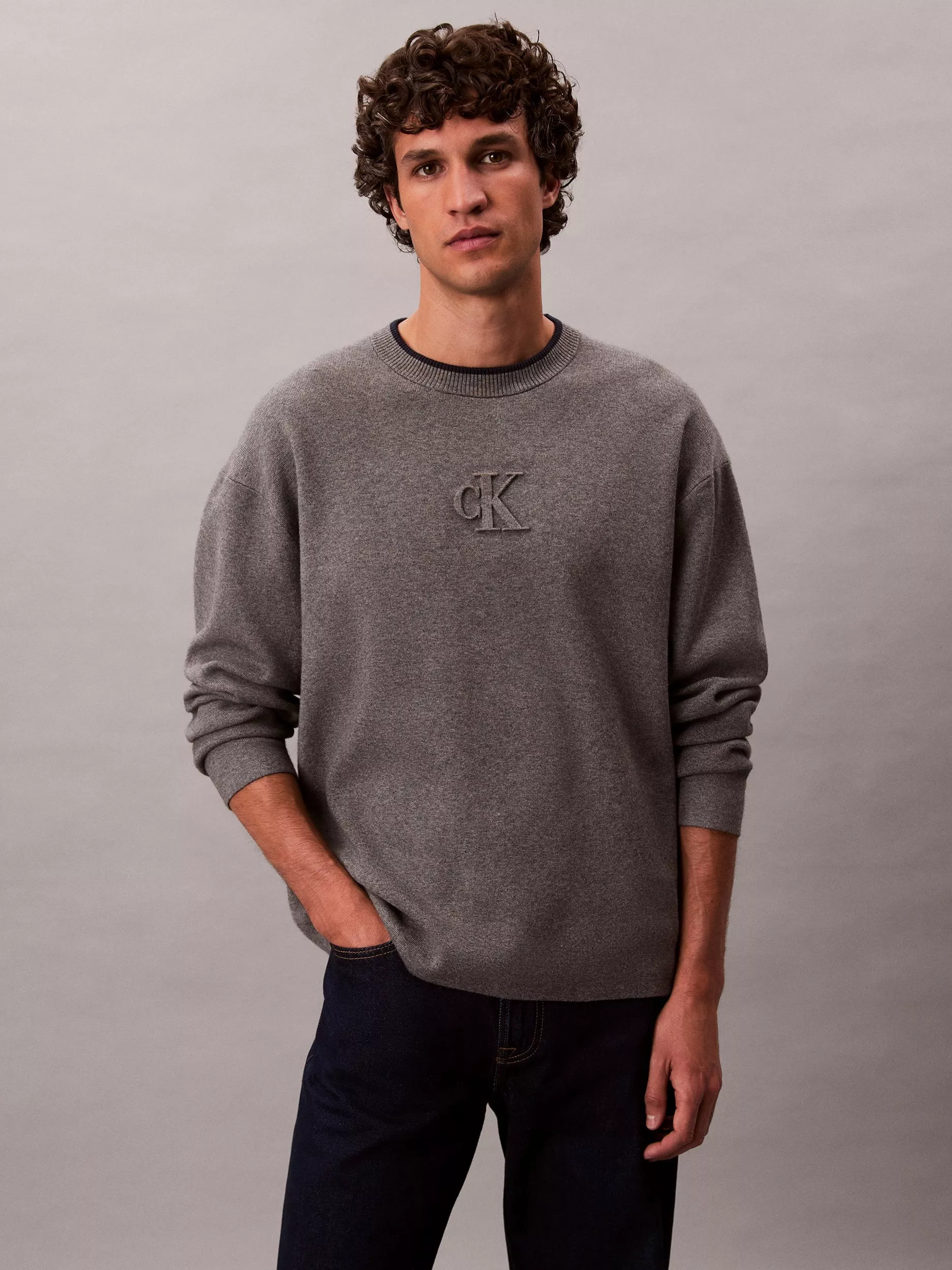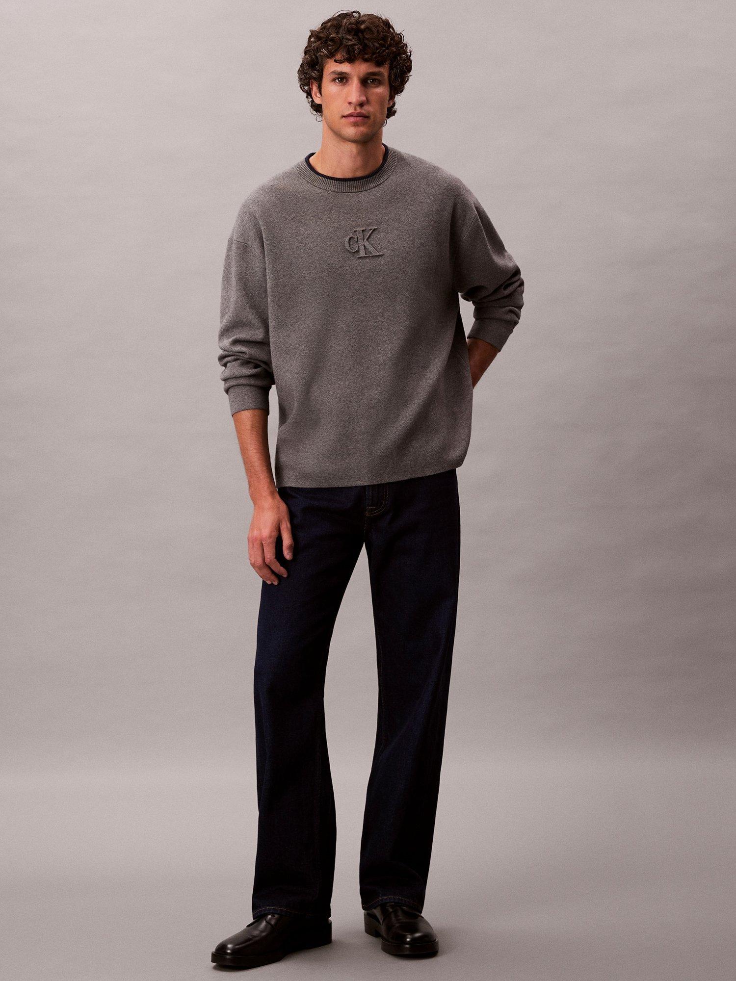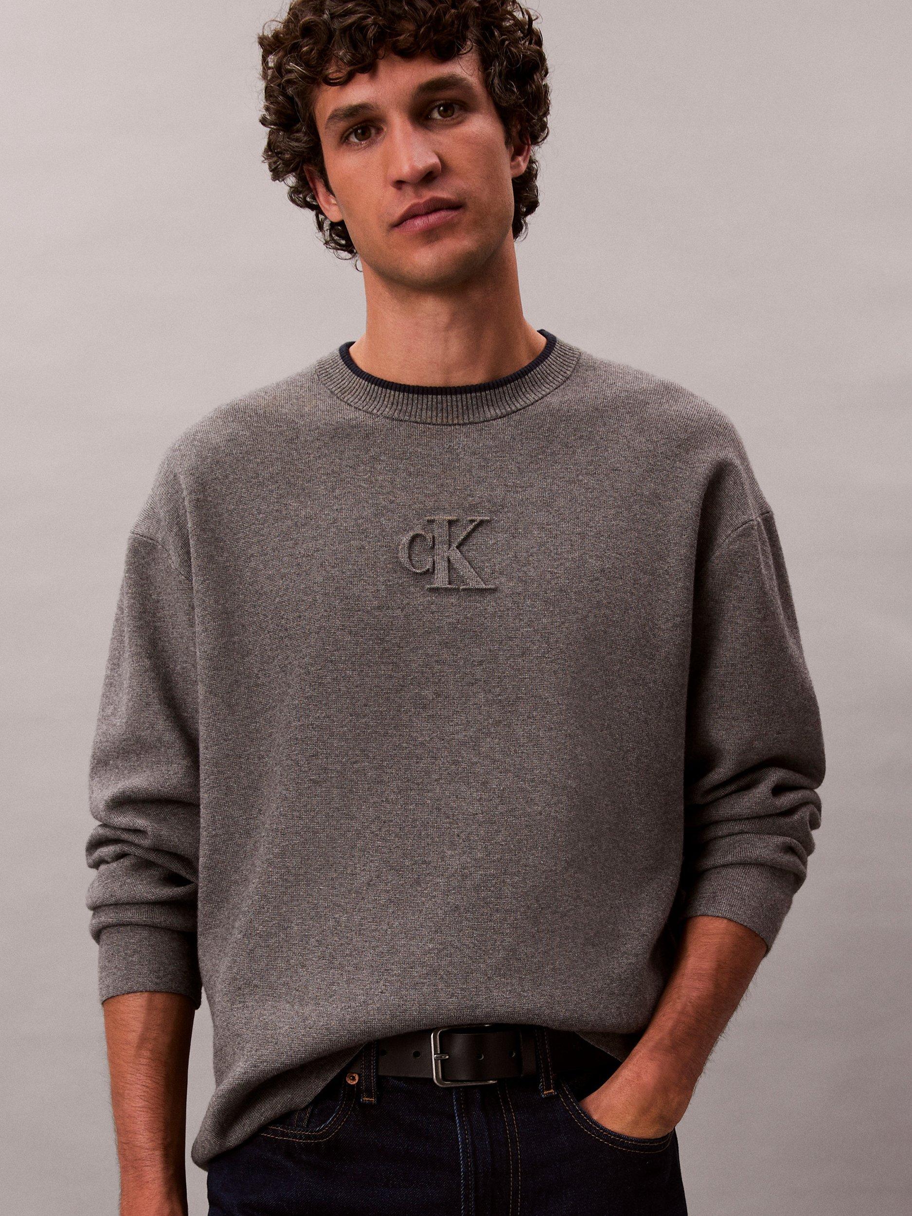A relaxed fitting crew neck sweatshirt from Calvin Klein with an embossed monogram logo, making it a smart, reliable pick for varied plans.