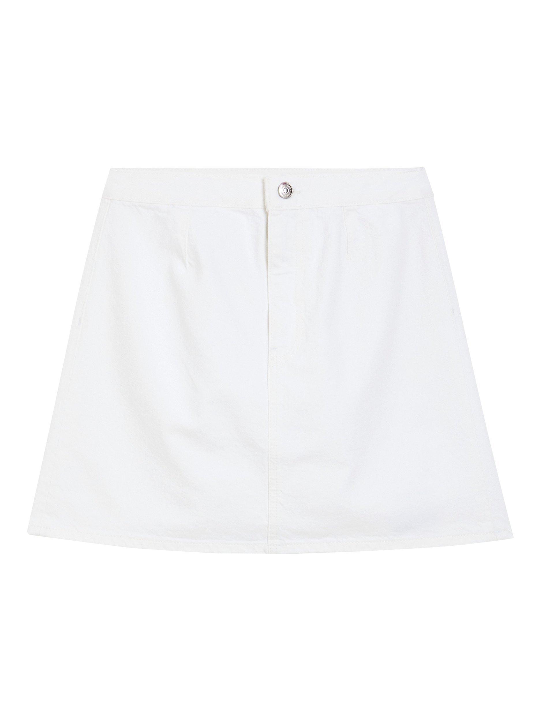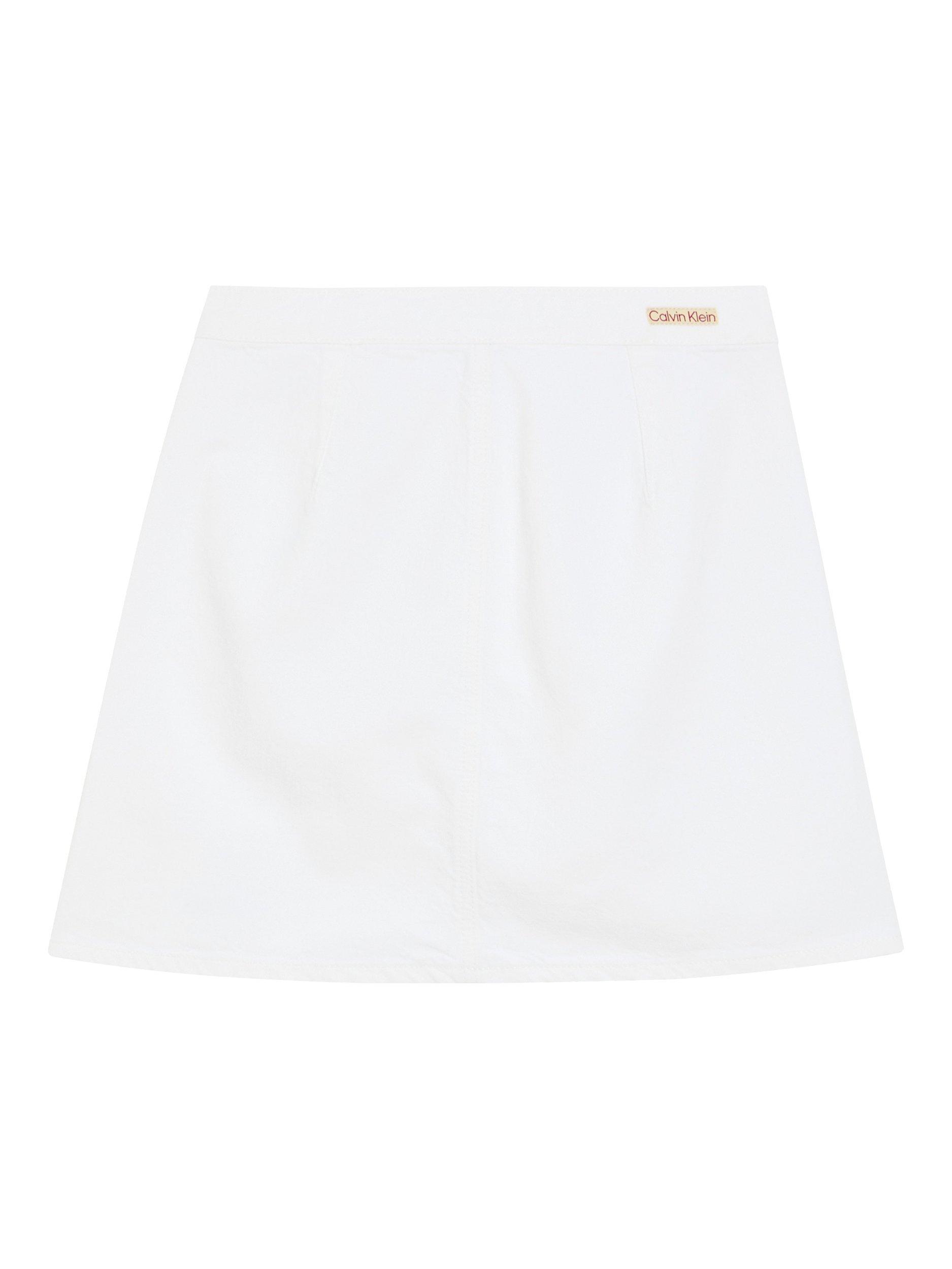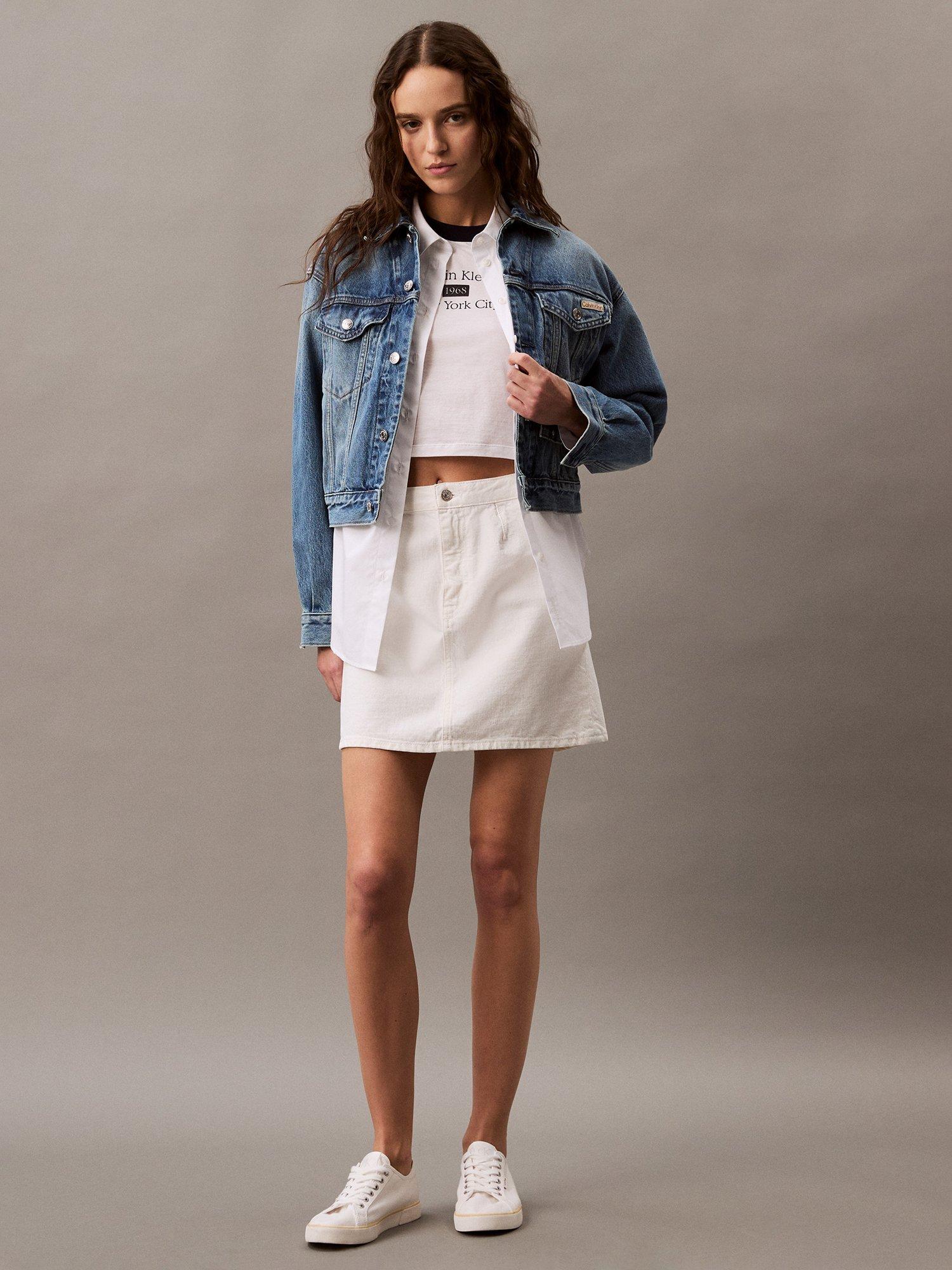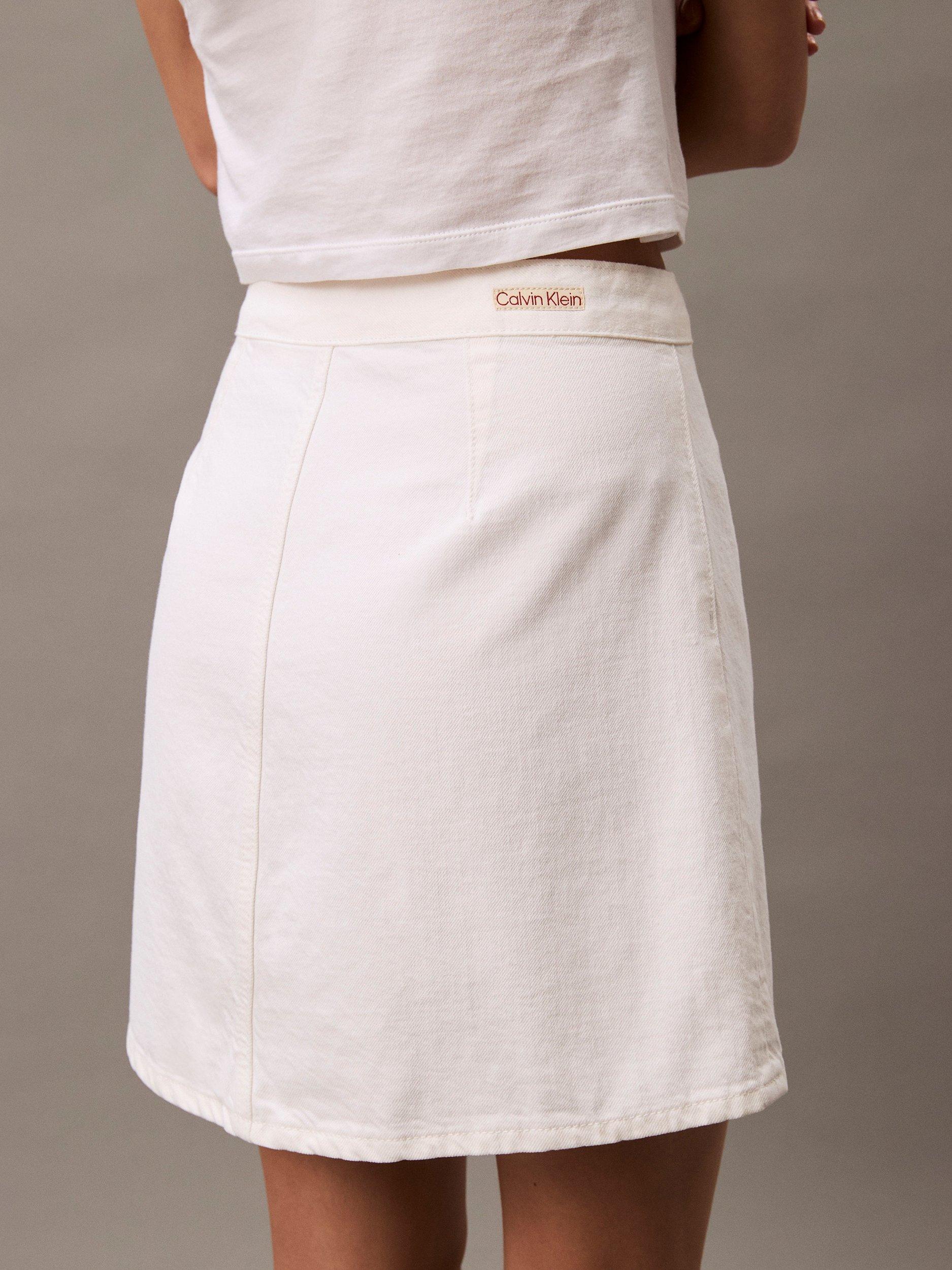 In an endlessly wearable A-line shape, this thigh-grazing skirt by Calvin Klein is the epitome of sheer minimalism.