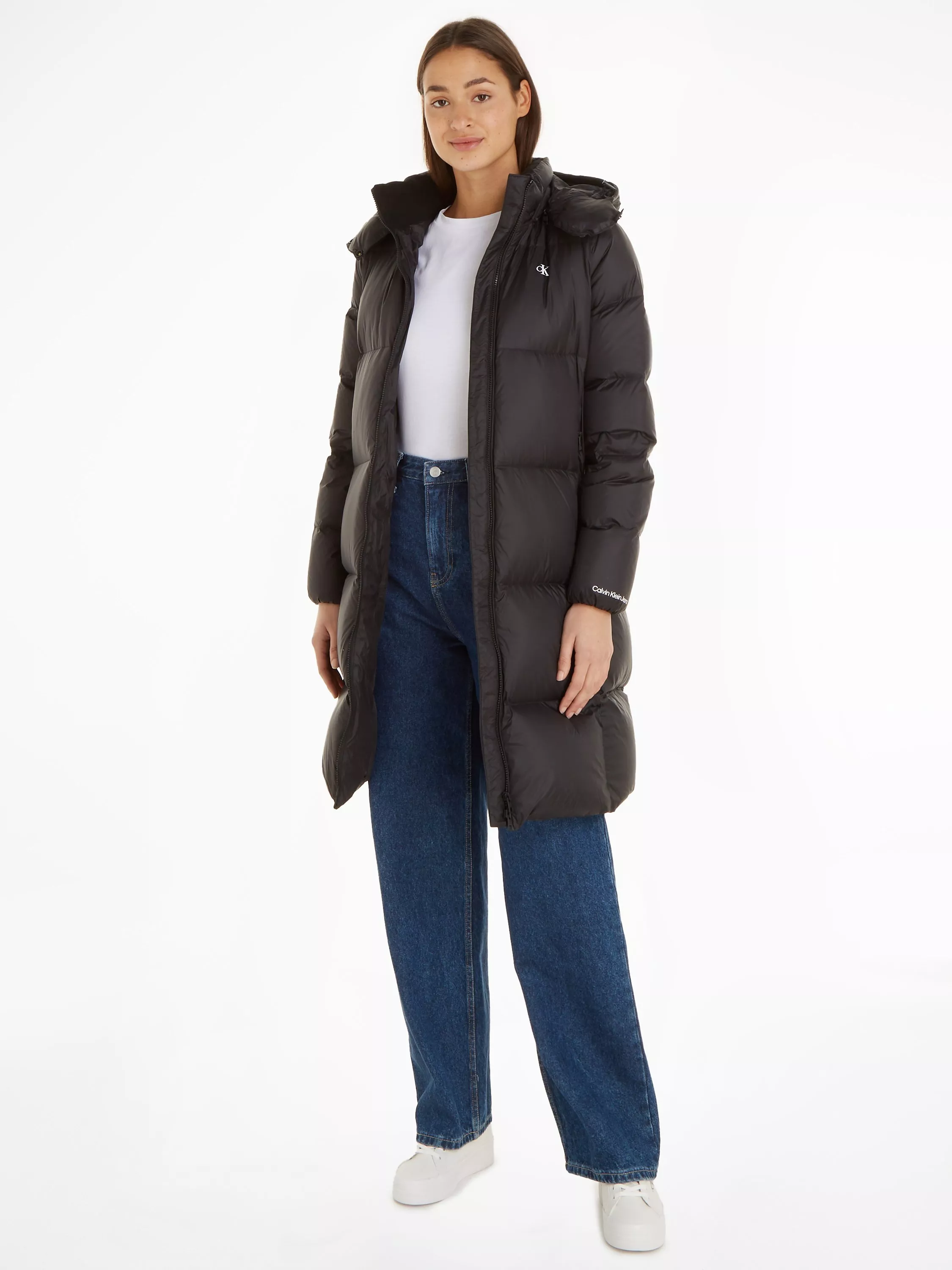 An outdoor staple for chilly days, this quilted jacket from Calvin Klein keeps out the chill with its knee-length hem.
