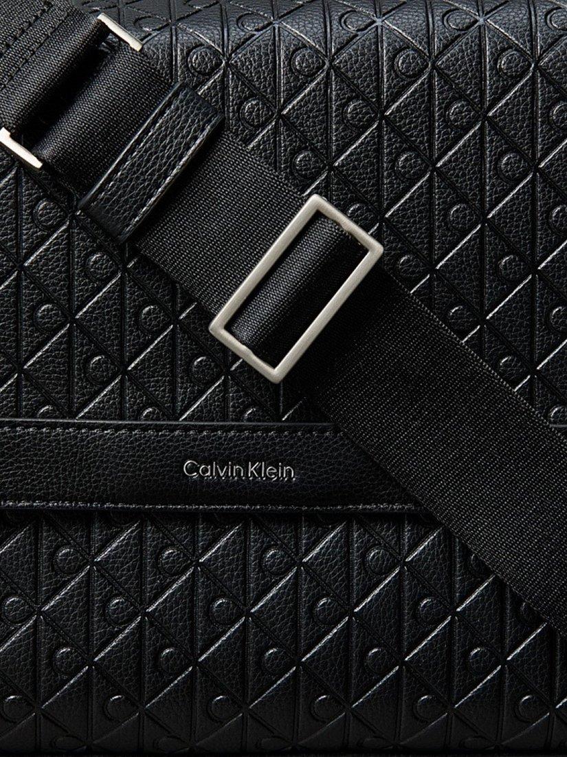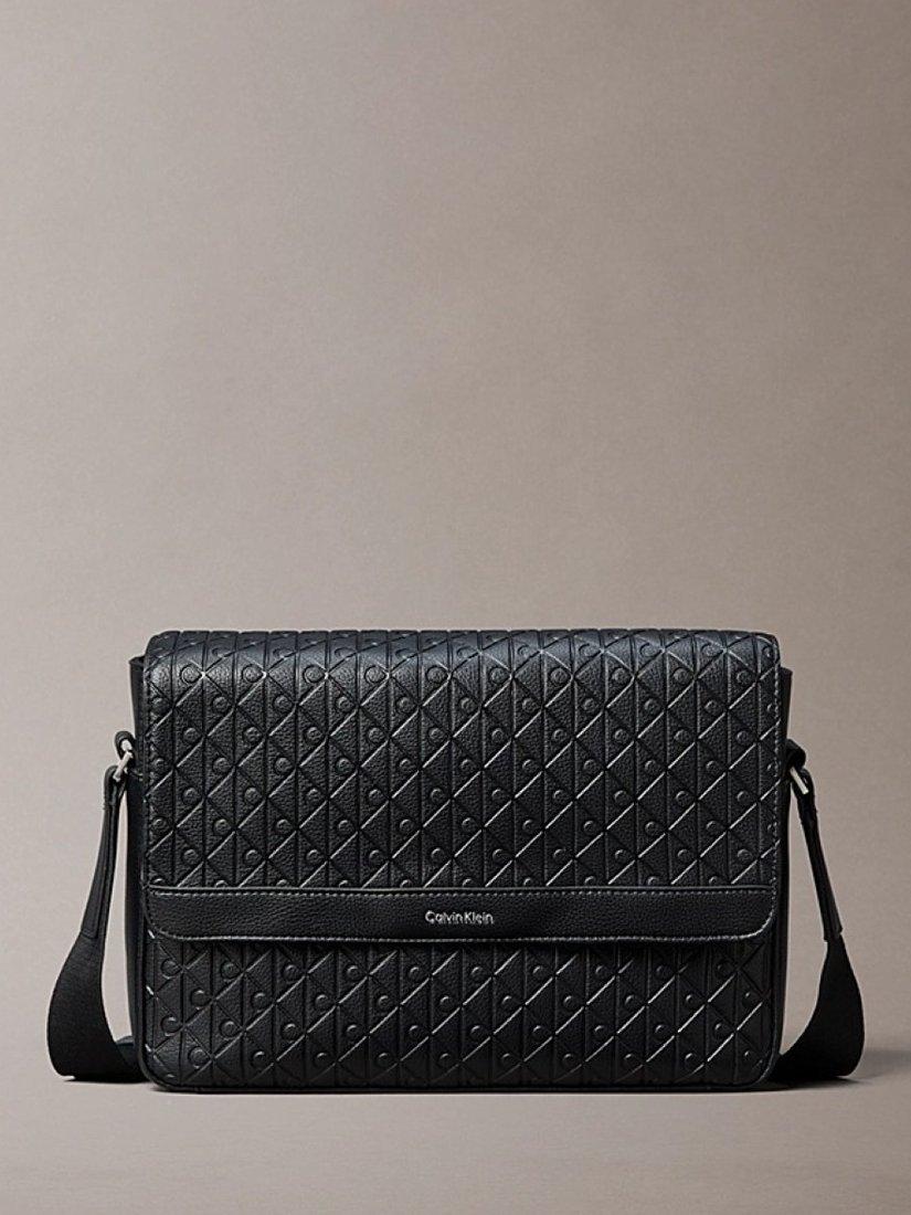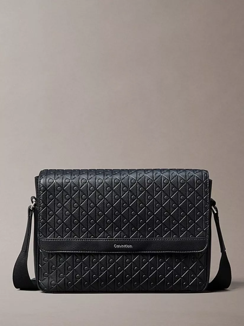 Calvin KleinEmbossed Emblem Logo Flap Messenger Bag, Black