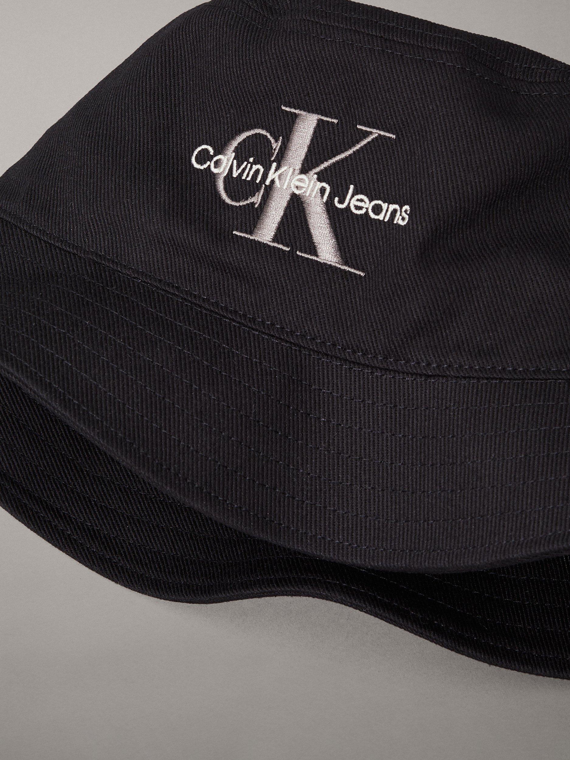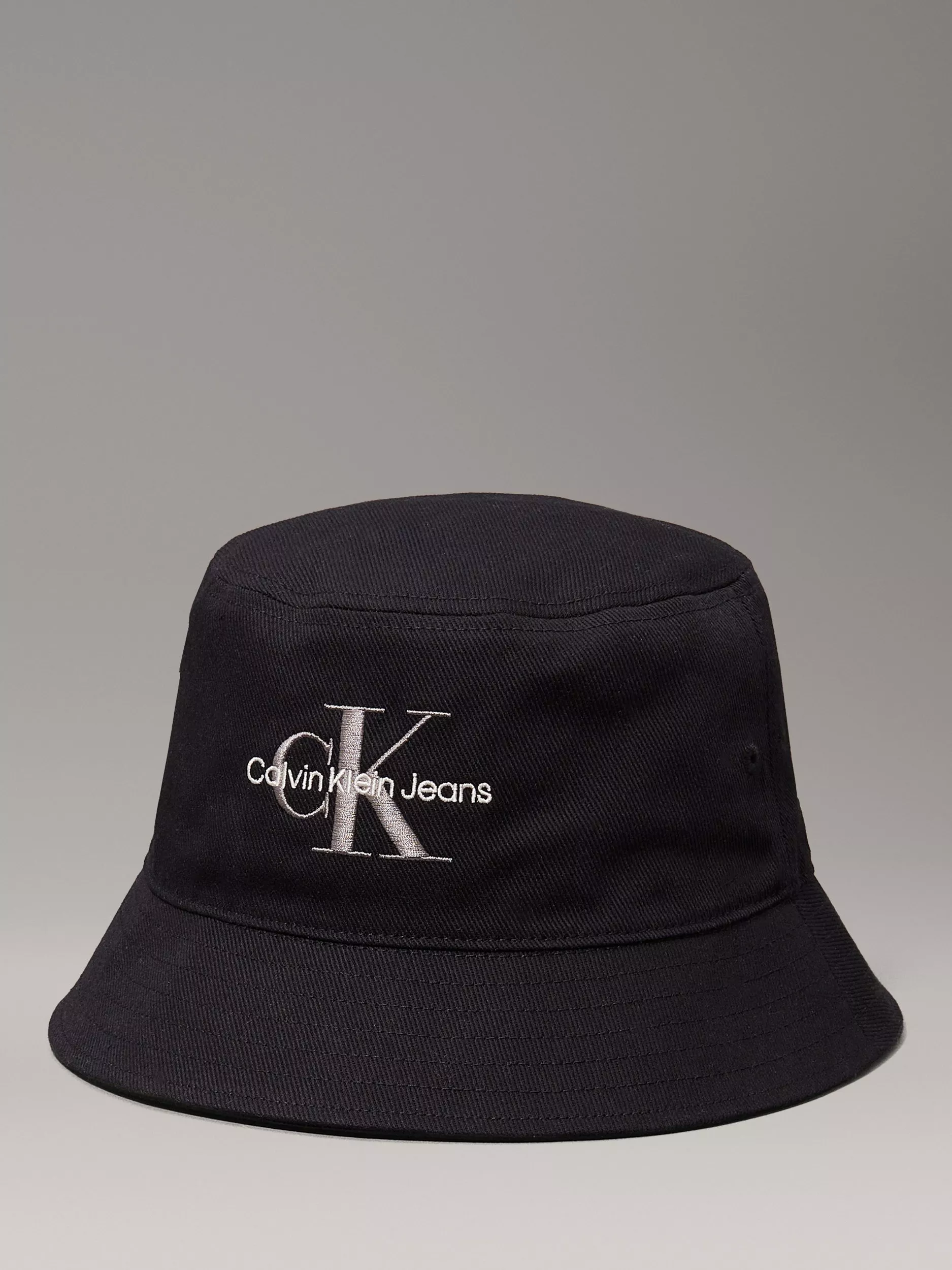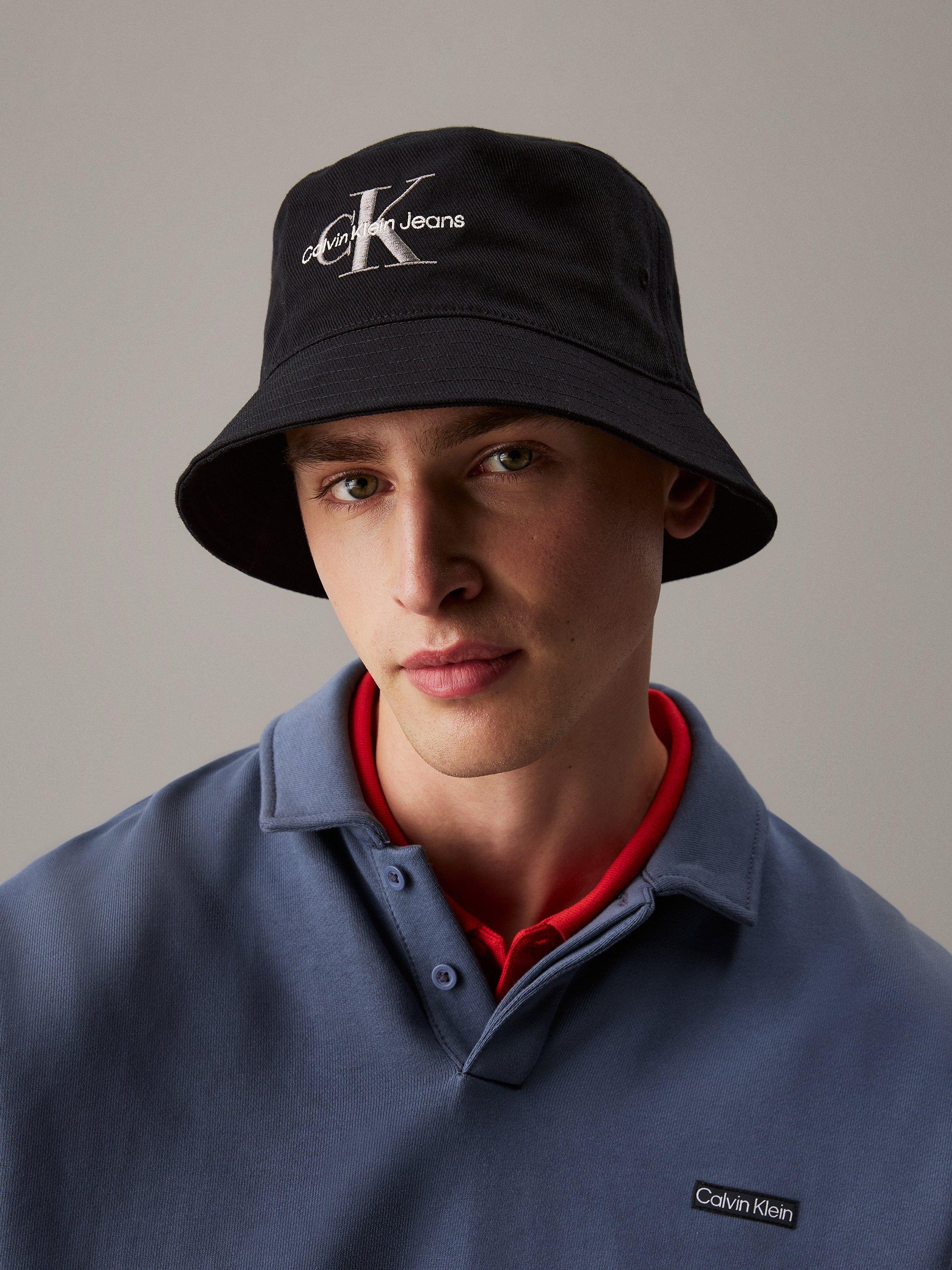 This bucket hat from Calvin Klein is finished with stitched eyelets and signature two-tone logo embroidery for an iconic look.