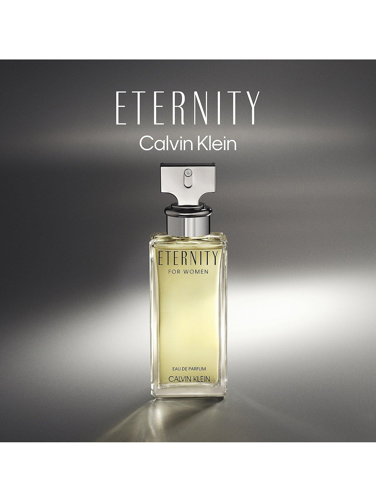 Inspired by a simple band of diamonds and the ideal of lasting love and intimacy, Calvin Klein Eternity Eau de Parfum for Women is a harmonious blend of classic and contemporary style. A classic, mesmerising Eau de Parfum, Eternity for Women is a harmonious blend of white flowers and creamy woods.