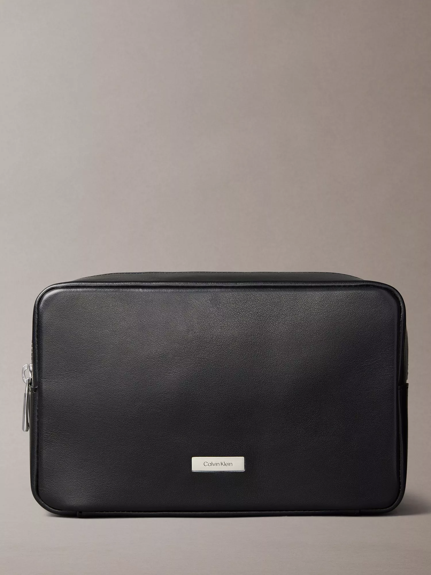 This wash bag is a sleek travel essential for life on the move, crafted from full-grain leather for a refined and organised finish. It features a smooth exterior and a zip fastening with branded hardware. There's also an internal zip pocket for added security, and the bag is finished with an engraved metal logo plaque on the front.