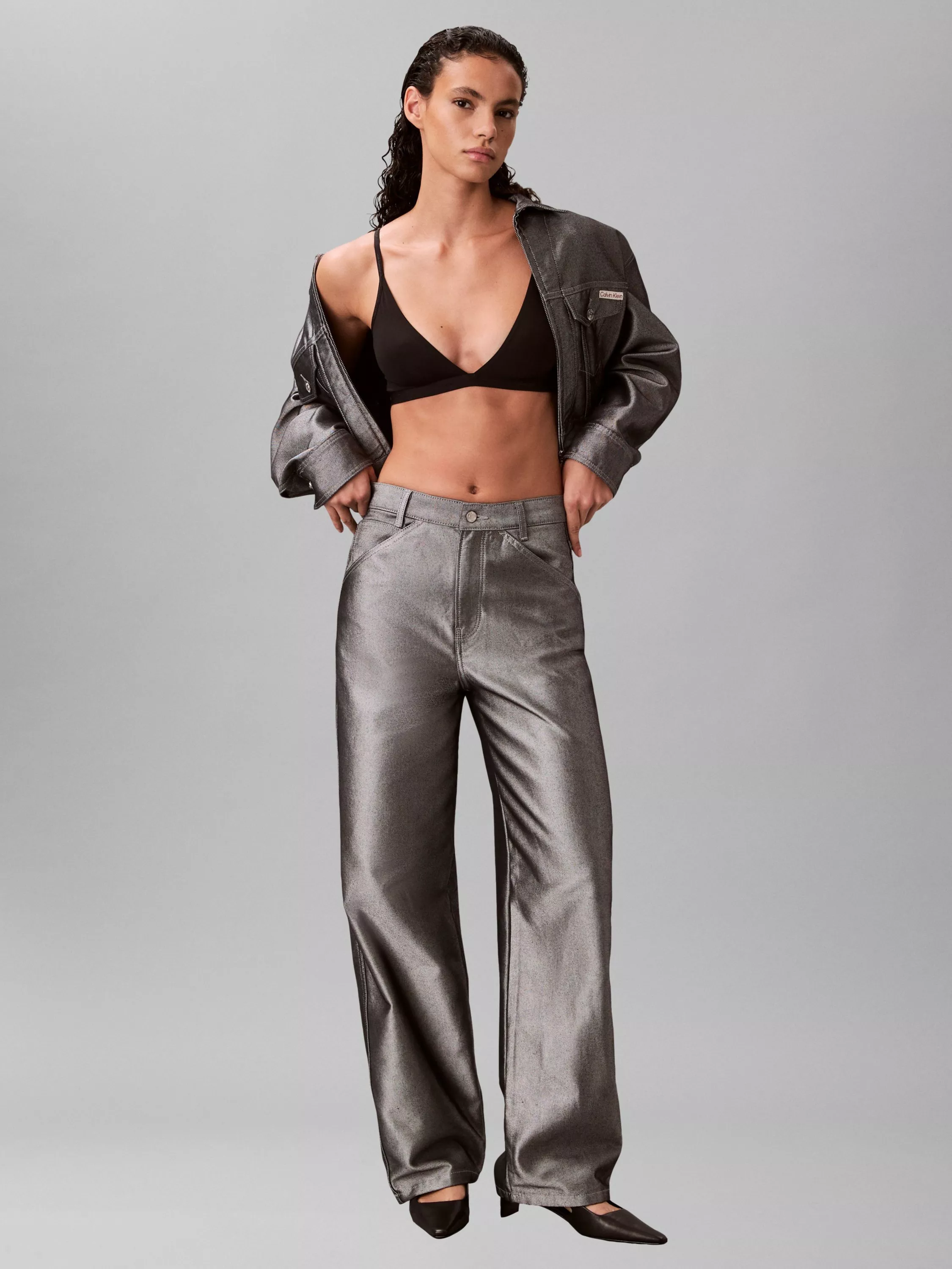 Calvin KleinHigh Rise Tapered Jeans, Silver Shine