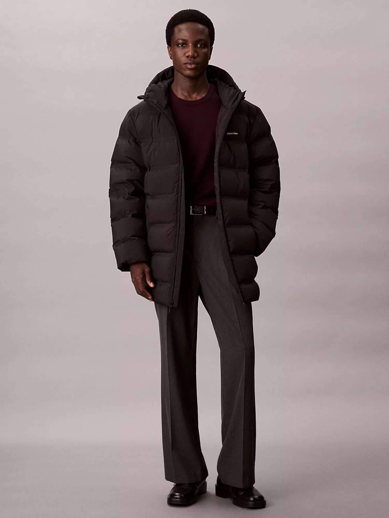 This puffer coat keeps you warm through winter chills, offering lightweight comfort with down-insulated panelling and practical zip fastening. Its plain design with modern quilted details fits seamlessly into your wardrobe, ensuring you feel ready for anything your day throws your way. Finished with an adjustable drawcord hood, zipped pockets at the waist and a Calvin Klein logo on the chest.