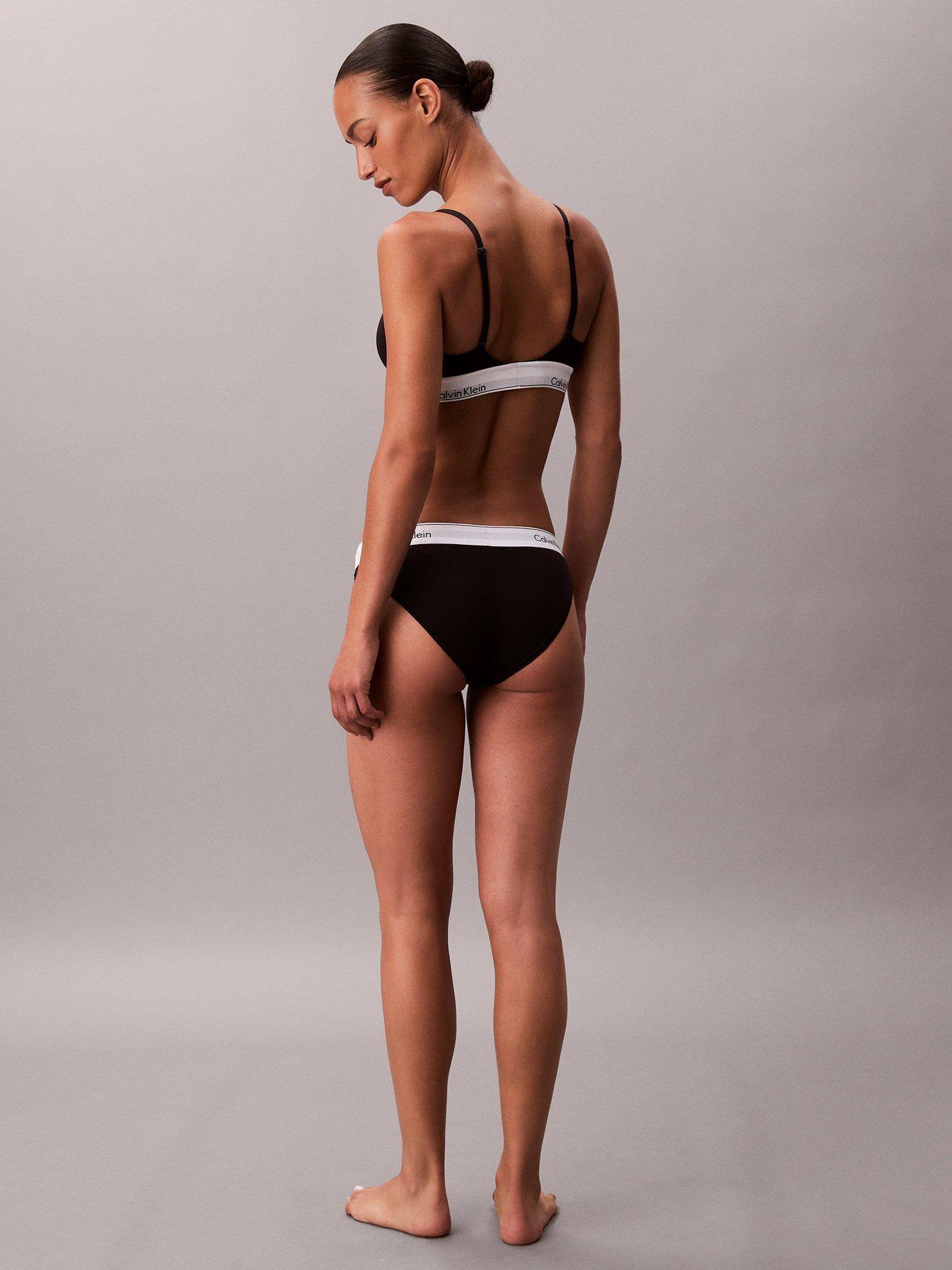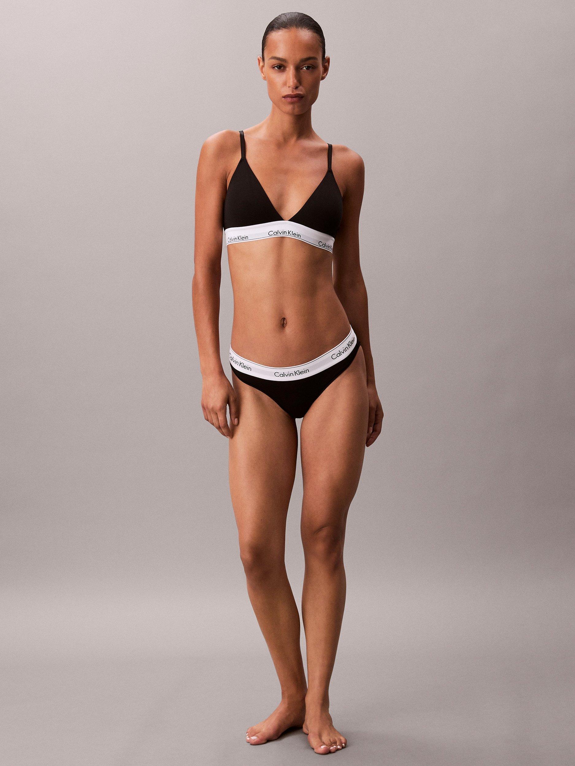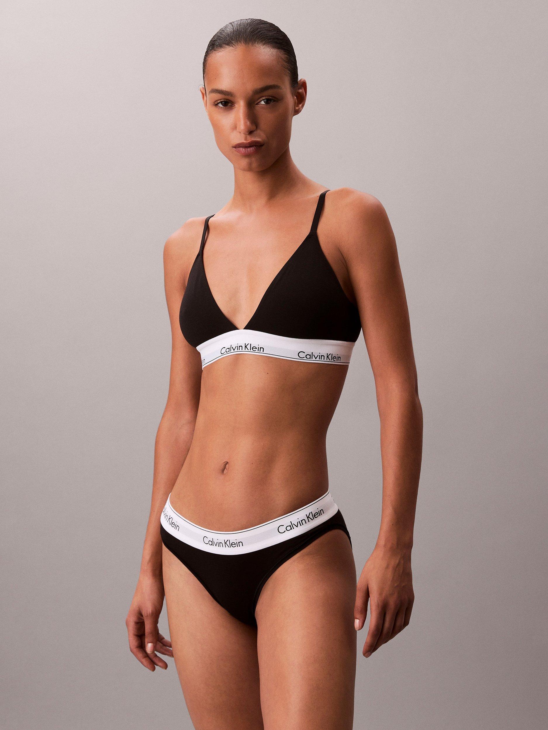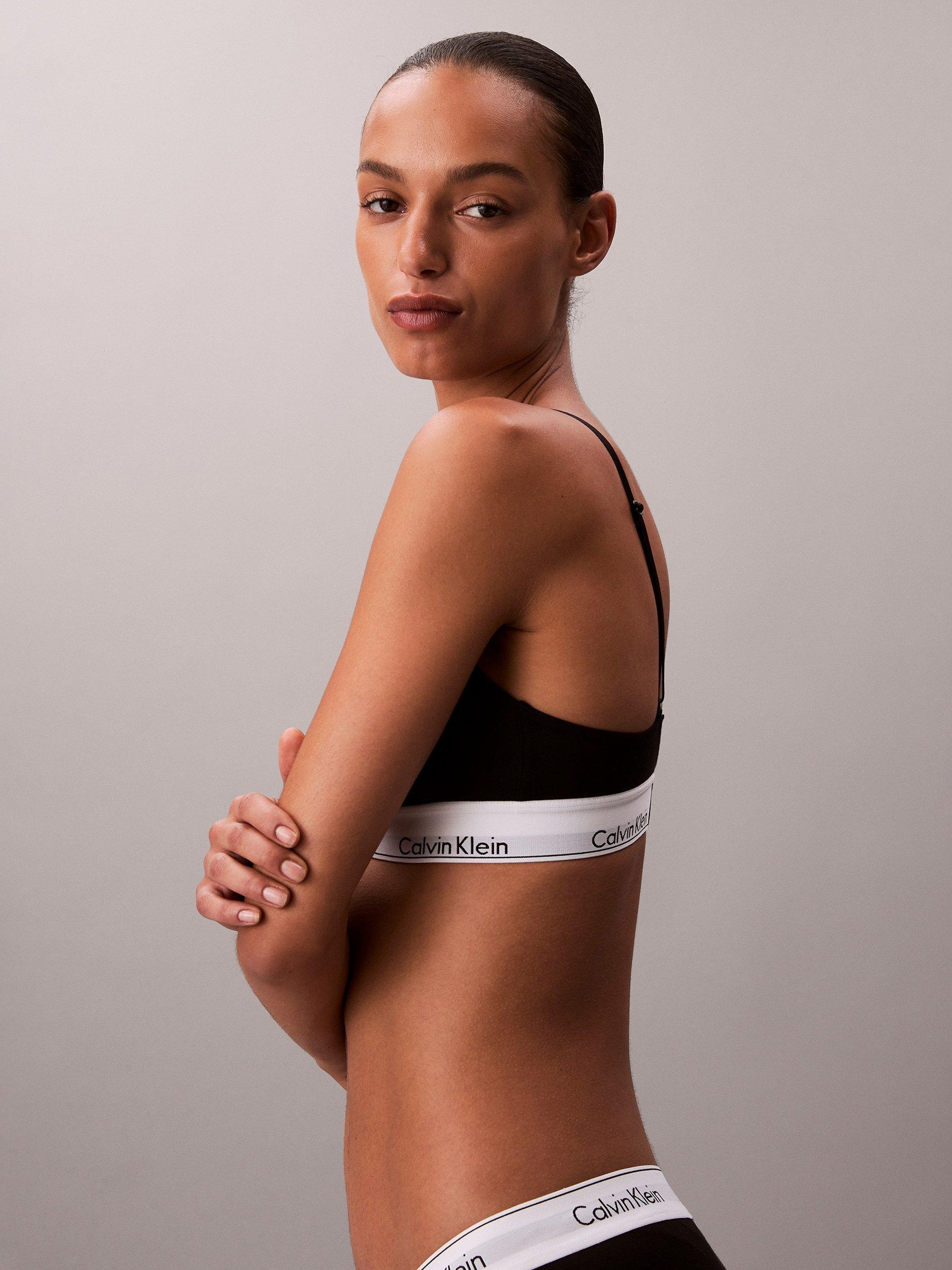Made with super soft cotton stretch blended with silky modal for a flexible fit and feel, this triangle bralette provides wire-free support with lightly lined cups and removable padding. Designed with Calvin Klein's new Infinity Bond stitch-free band for seamless, ultimate comfort. Adjustable straps allow conventional or crossback wear. Finished with a cushioned hook and eye back closure.