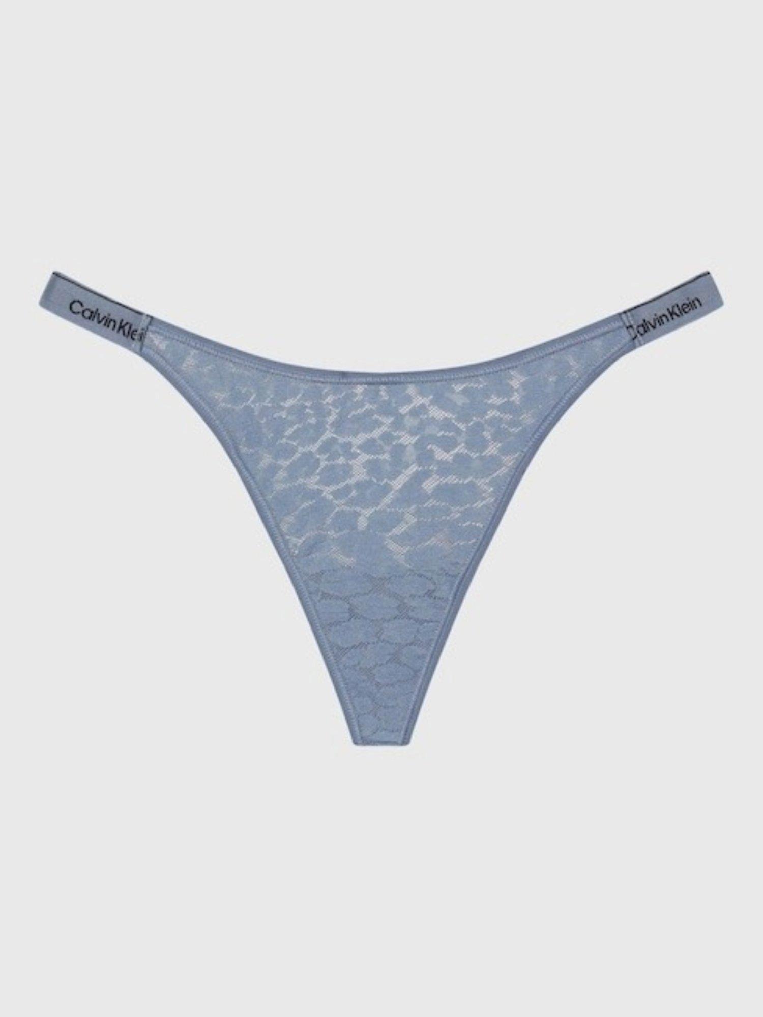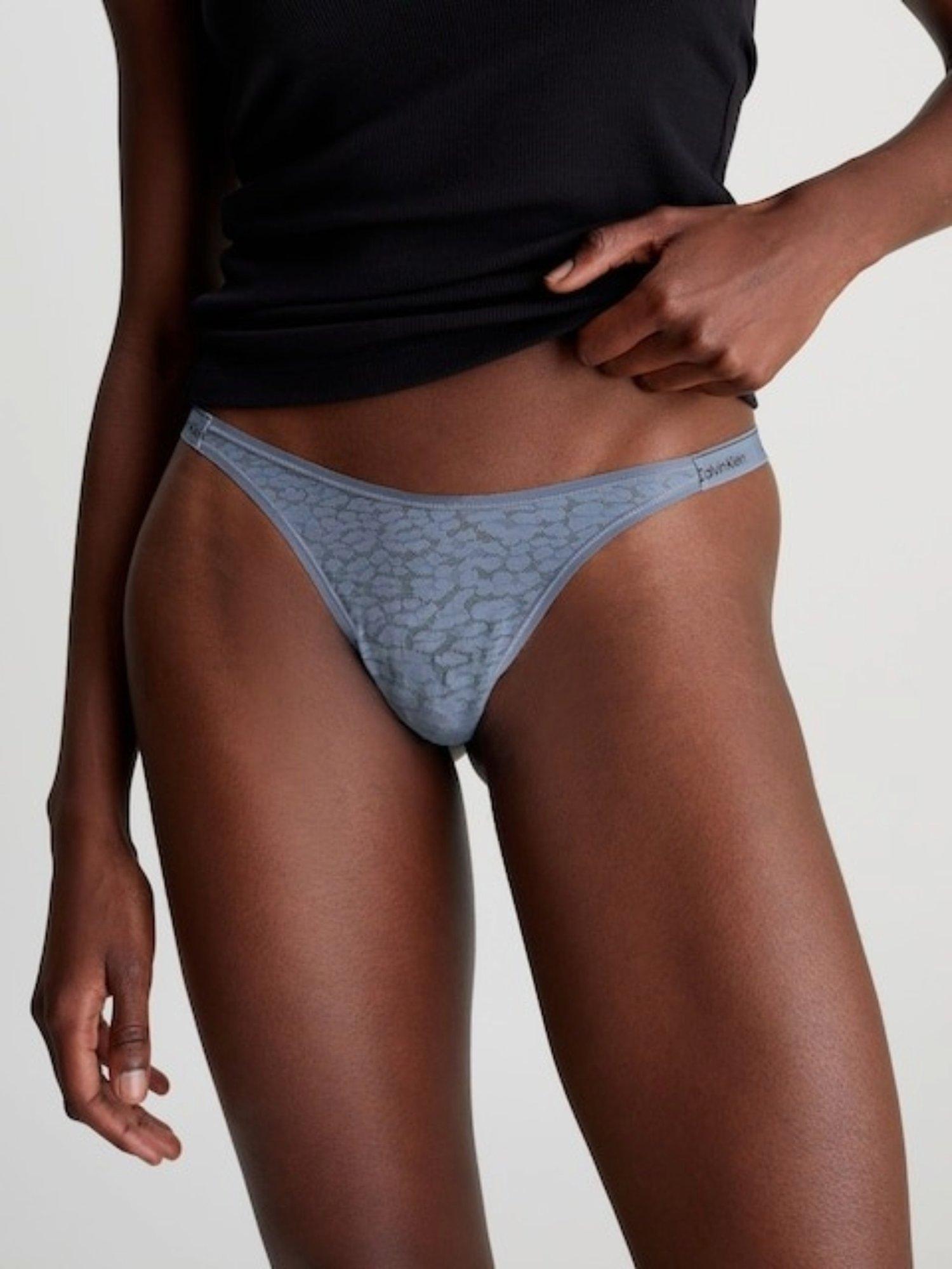 Made in semi-sheer leopard lace, this thong is designed with a dipped waistline, string sides and Calvin Klein signature elastic trims.