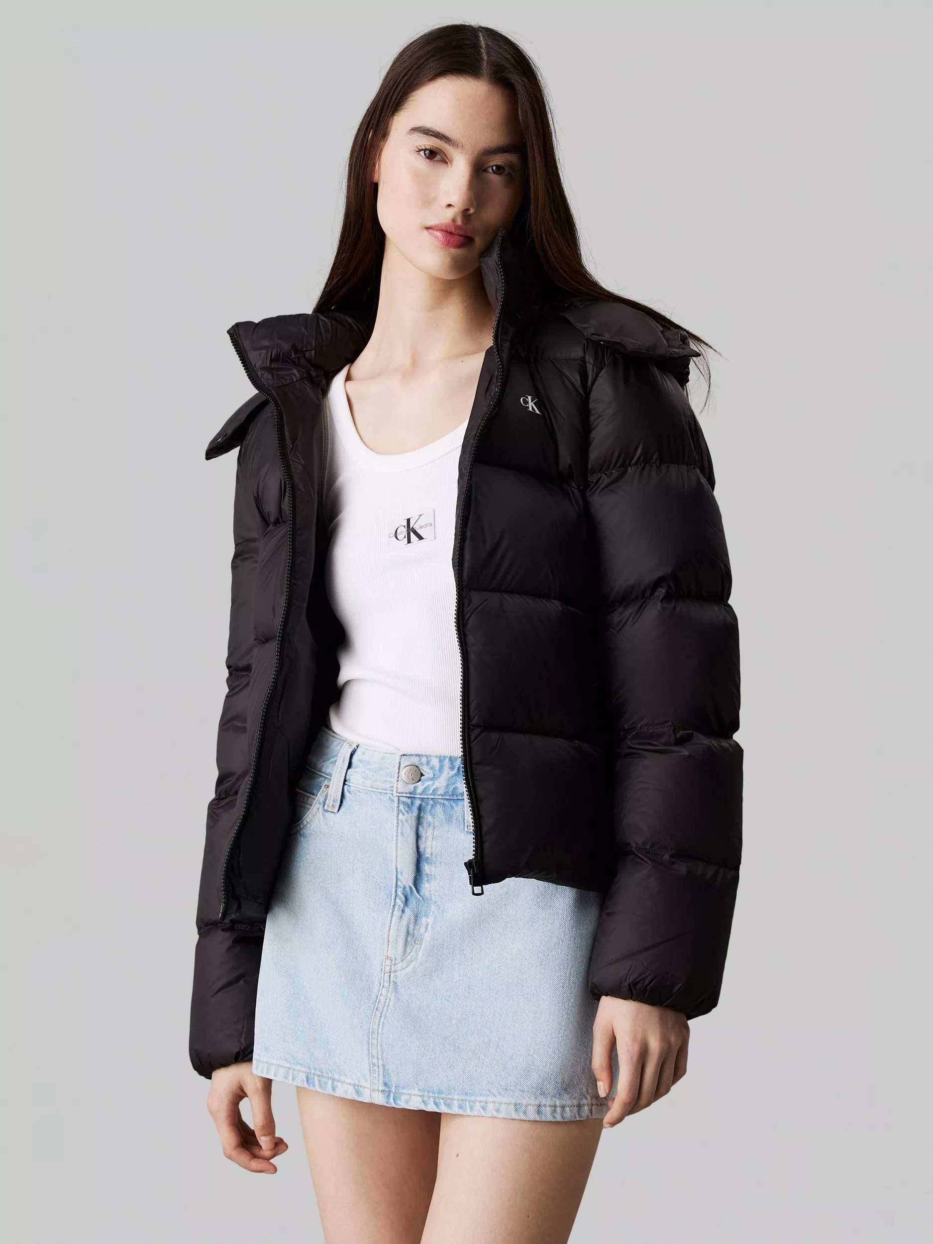 Keeping you warm in chilly weather, this puffer coat by Calvin Klein Jeans sits at the hip for versatile coverage.