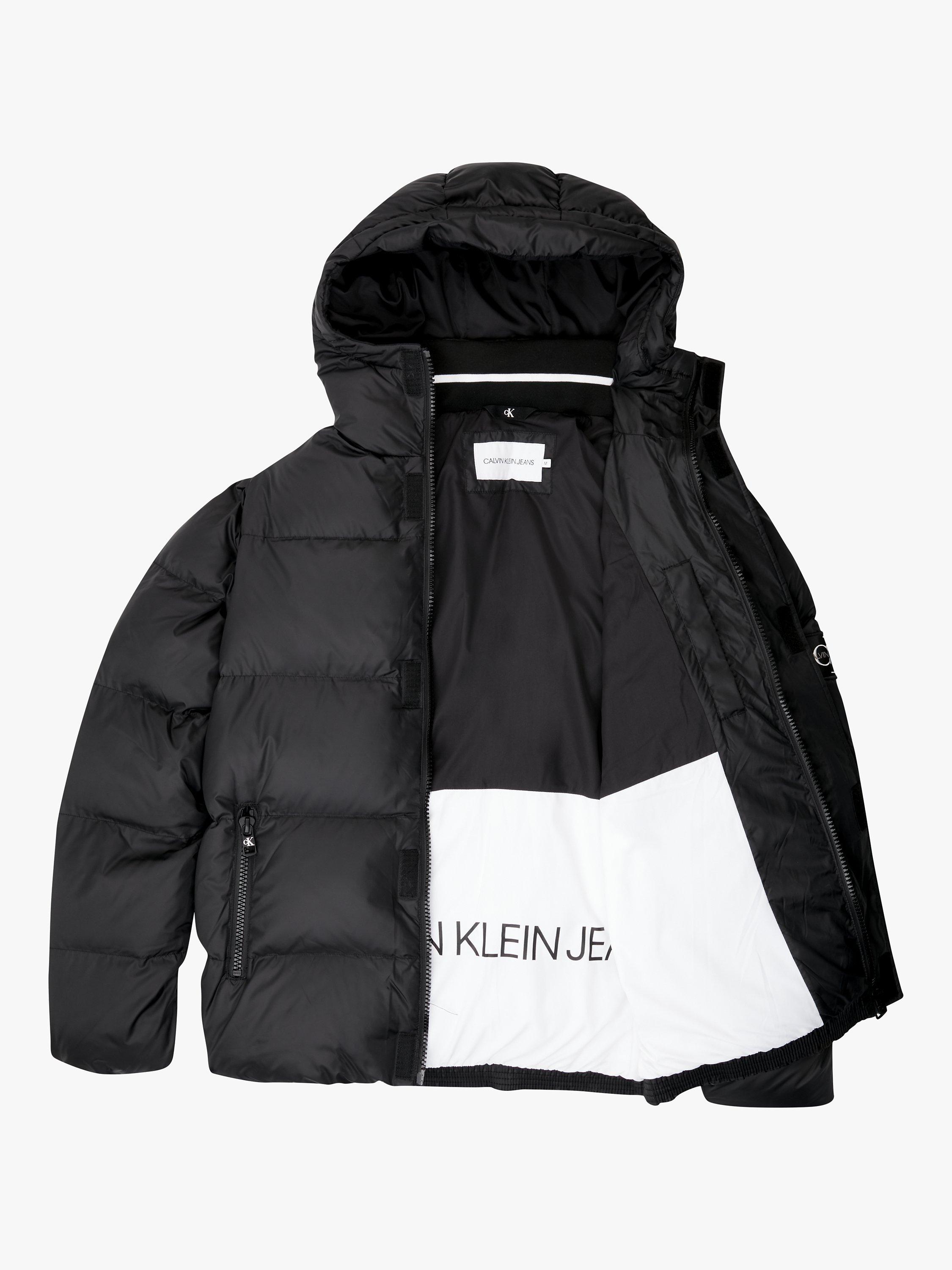 Made with robust fabric, it's Filled with sustainably sourced down and features a modern colour block design on the lining for a Calvin Klein contemporary twist.