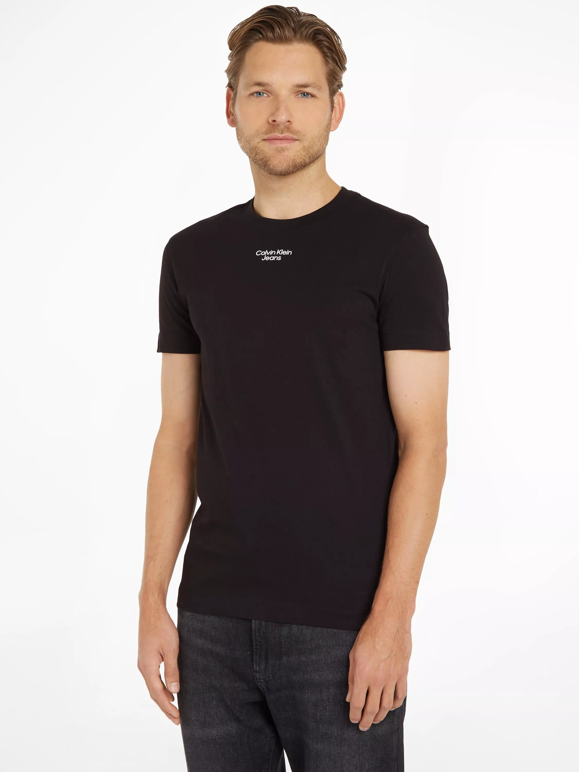 A bonafide wardrobe essential, bulk up your basics with this cotton crew neck T-shirt from Calvin Klein Jeans.