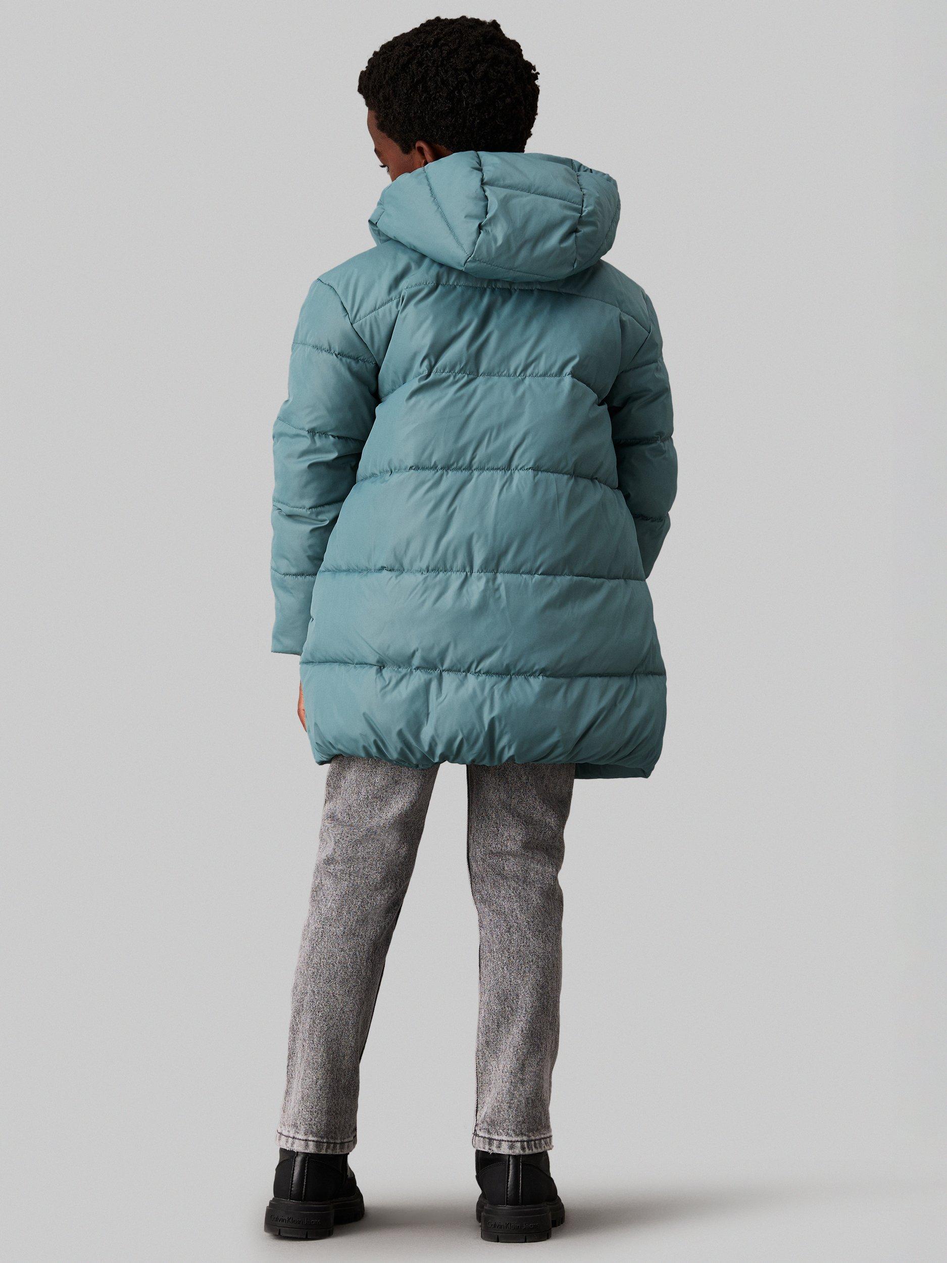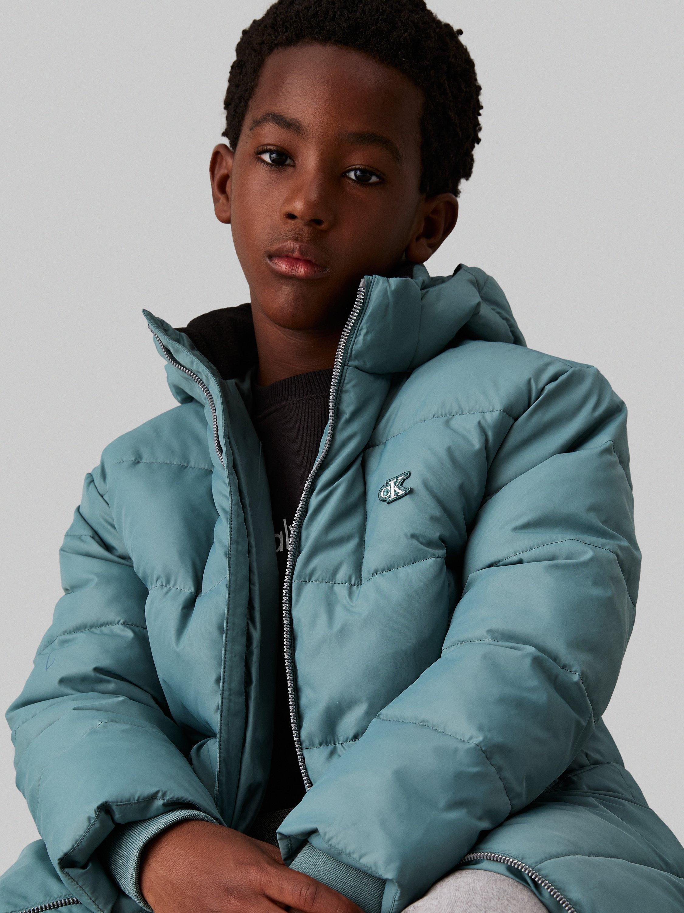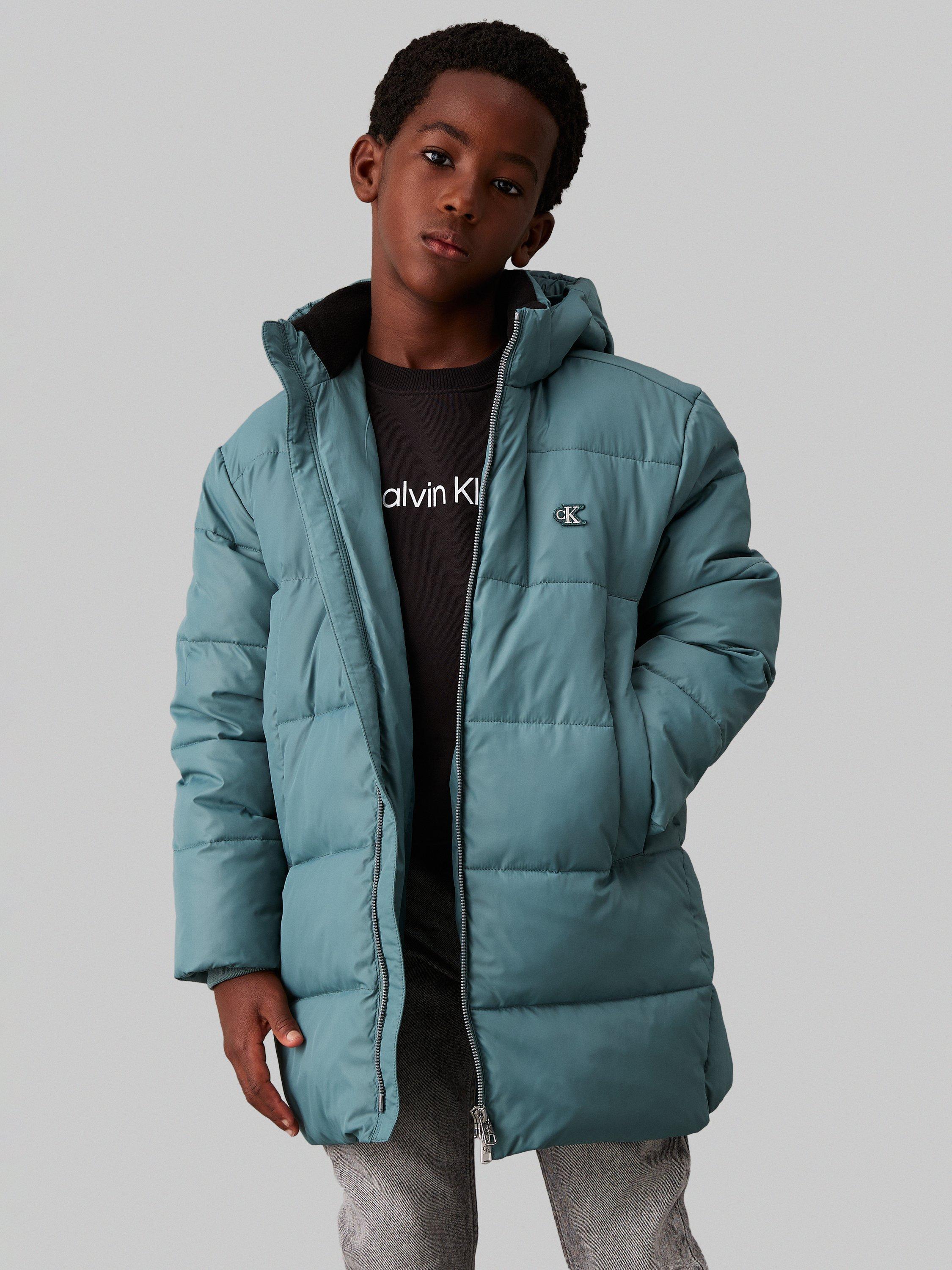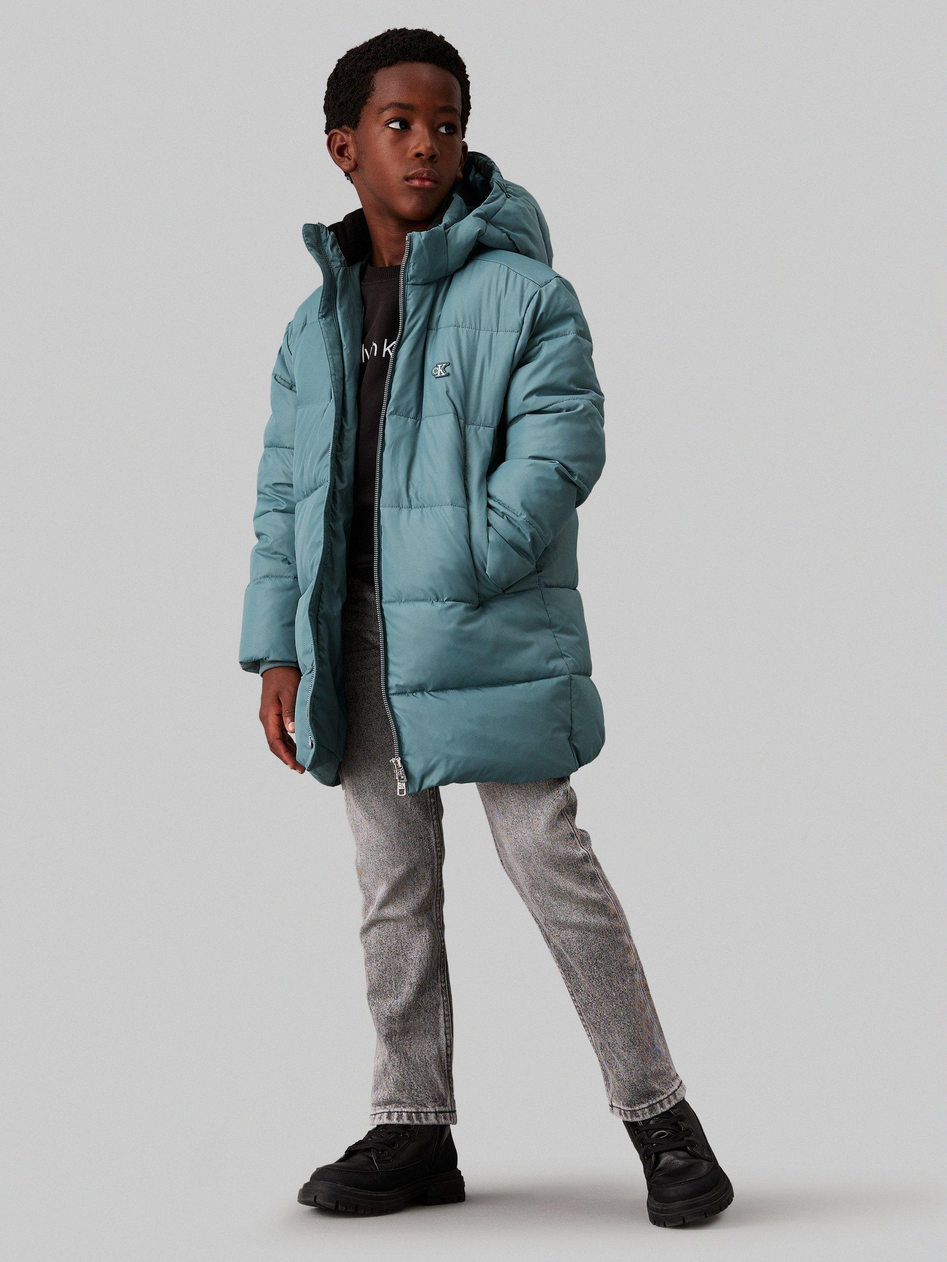 This puffer style parka jacket from Calvin Klein is cut in a comfy relaxed fit. The attached hood provides extra warmth and protection from the elements.