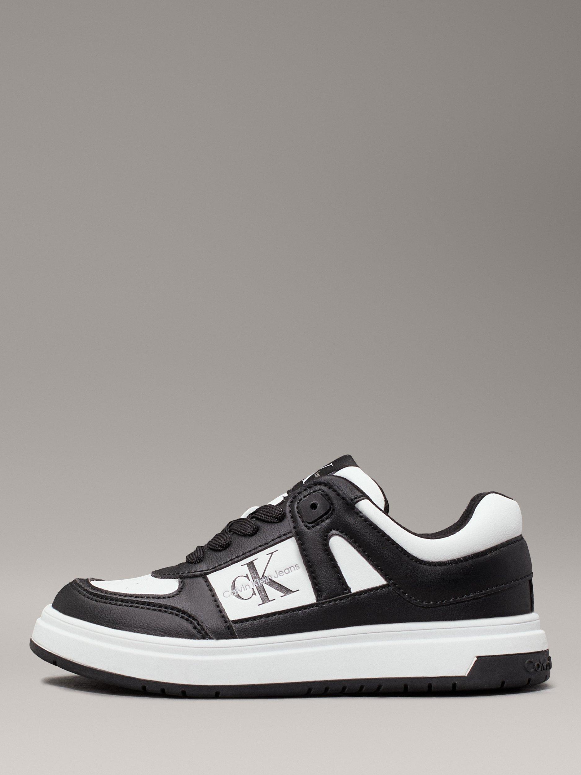 Calvin KleinKids' Low Top Lace Up Trainers, Black/White