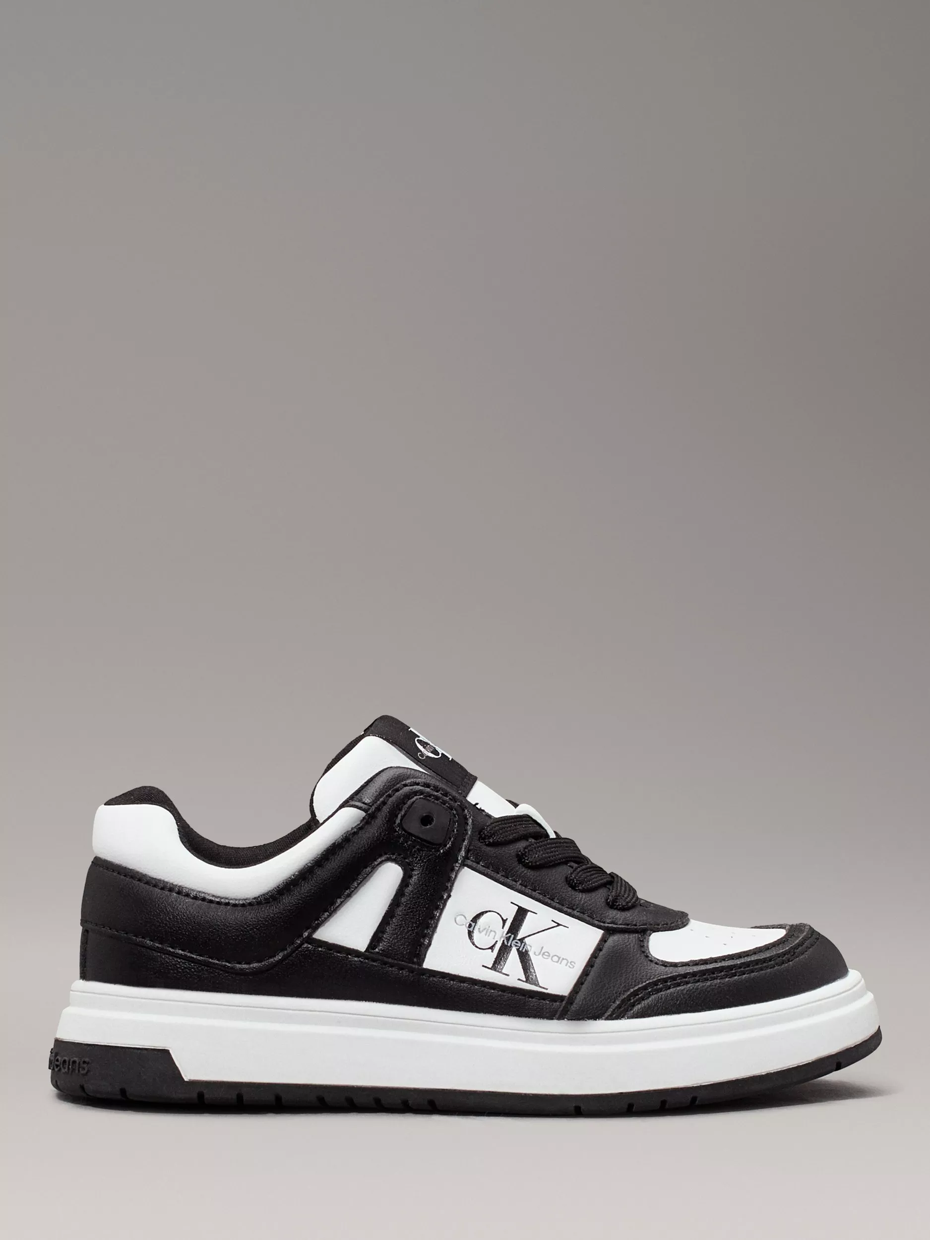 Calvin KleinKids' Low Top Lace Up Trainers, Black/White, EU36