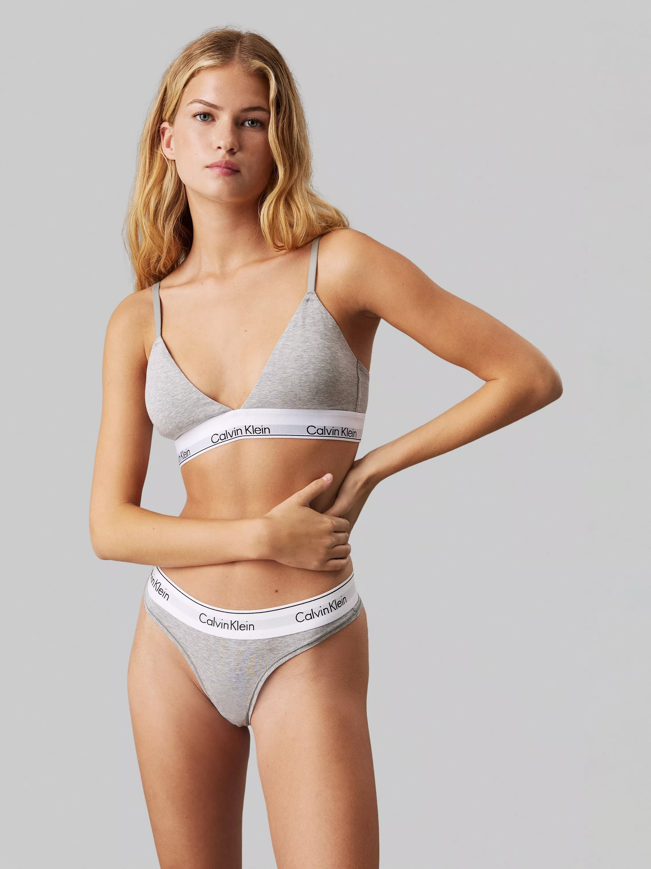 Go for breathable comfort and a sporty look with CK signature MODERN COTTON underwear range. Cotton modal blend, soft moulded triangle cups with removable padding. Adjustable shoulder straps convert to cross-back style.