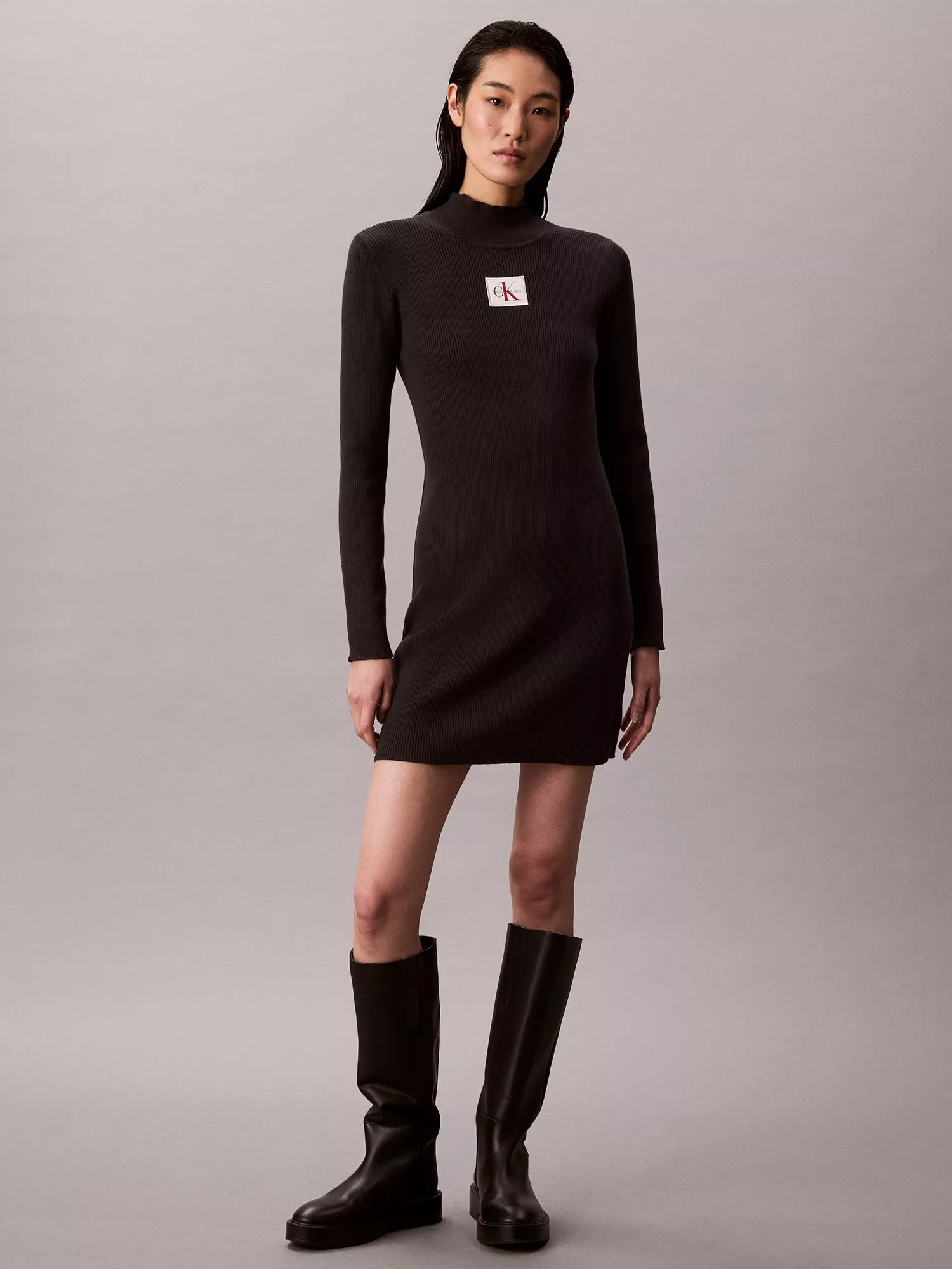 Designed for both cosiness and compliments. This long sleeved cotton mix mini dress by Calvin Klein features a warming roll neckline and is branded for trend-led appeal.