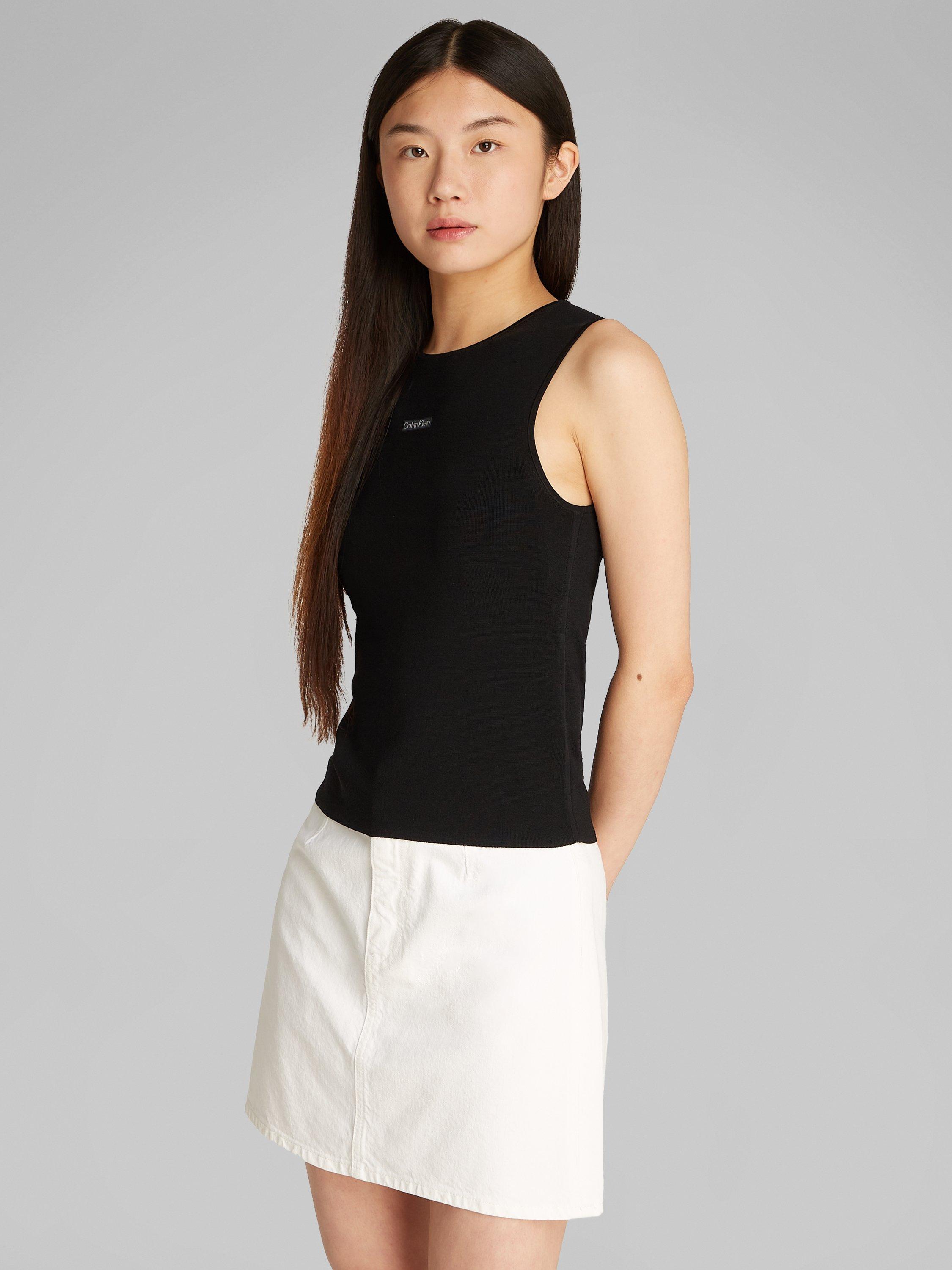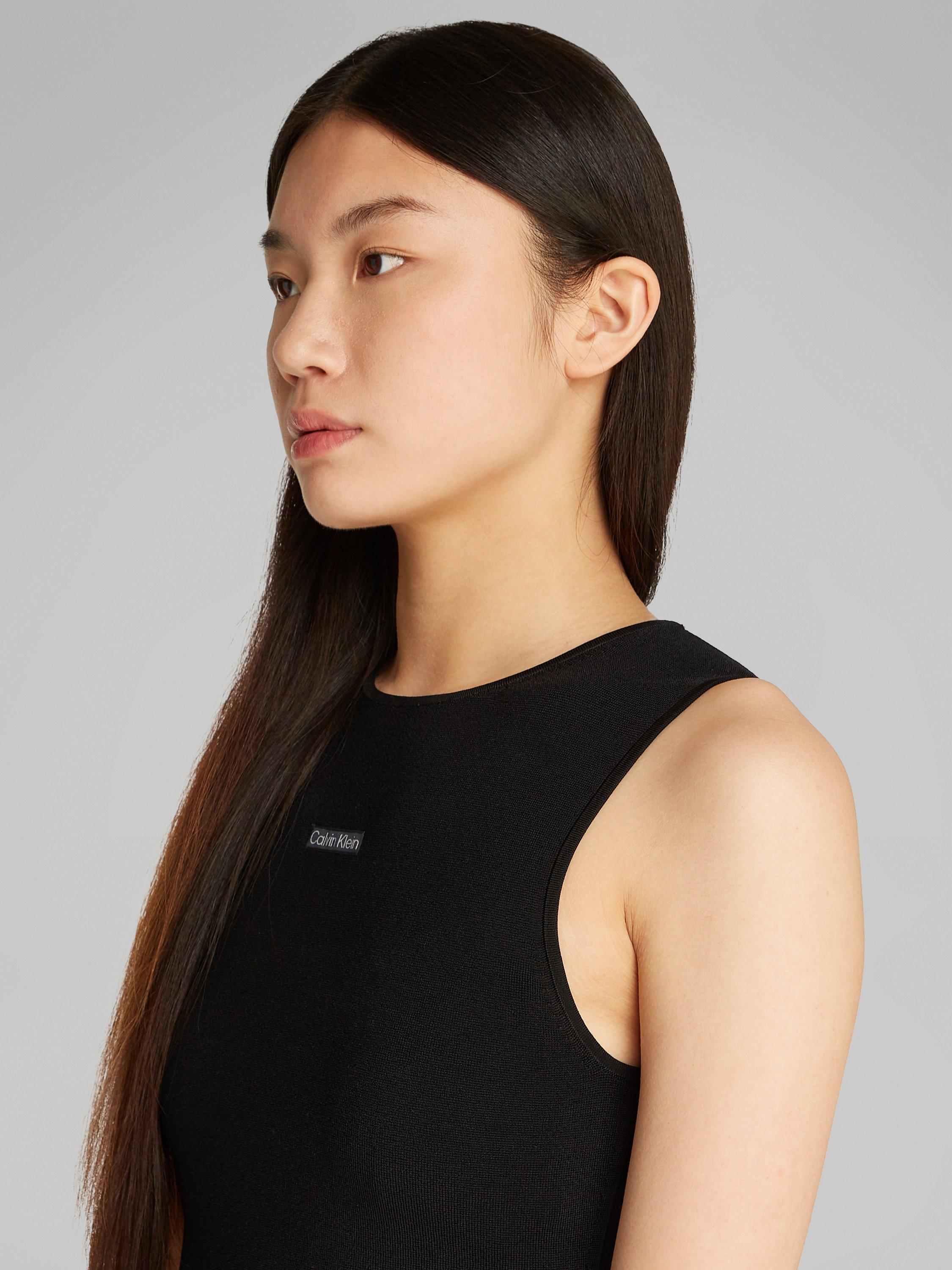 Framed with a crew neckline, this sleeveless logo jumper by Calvin Klein will take the cool weather in its stride.