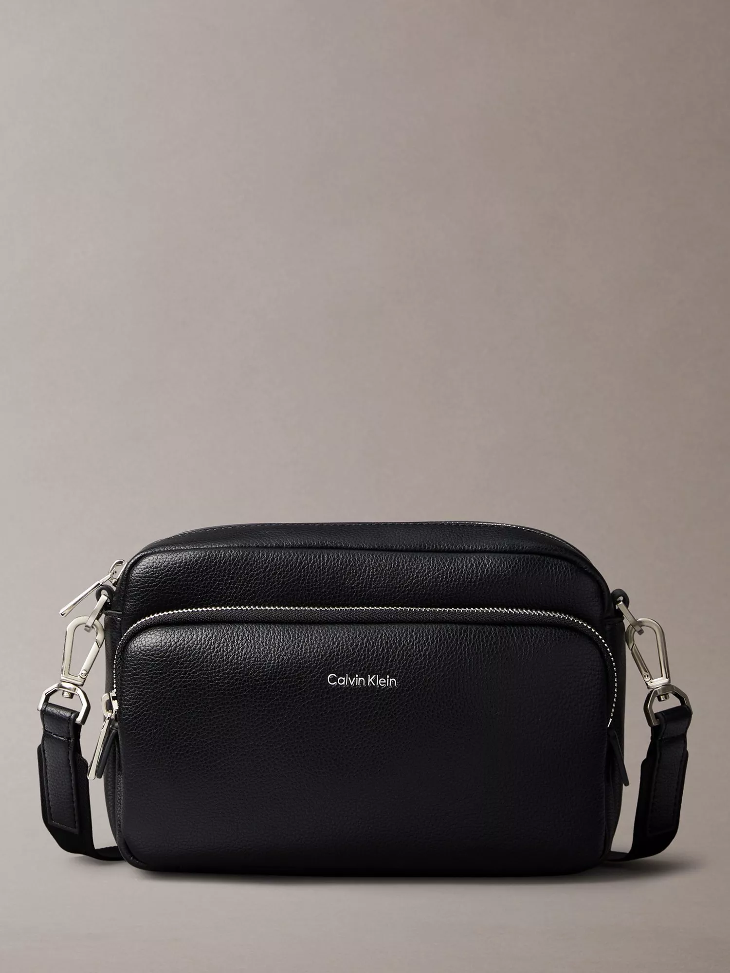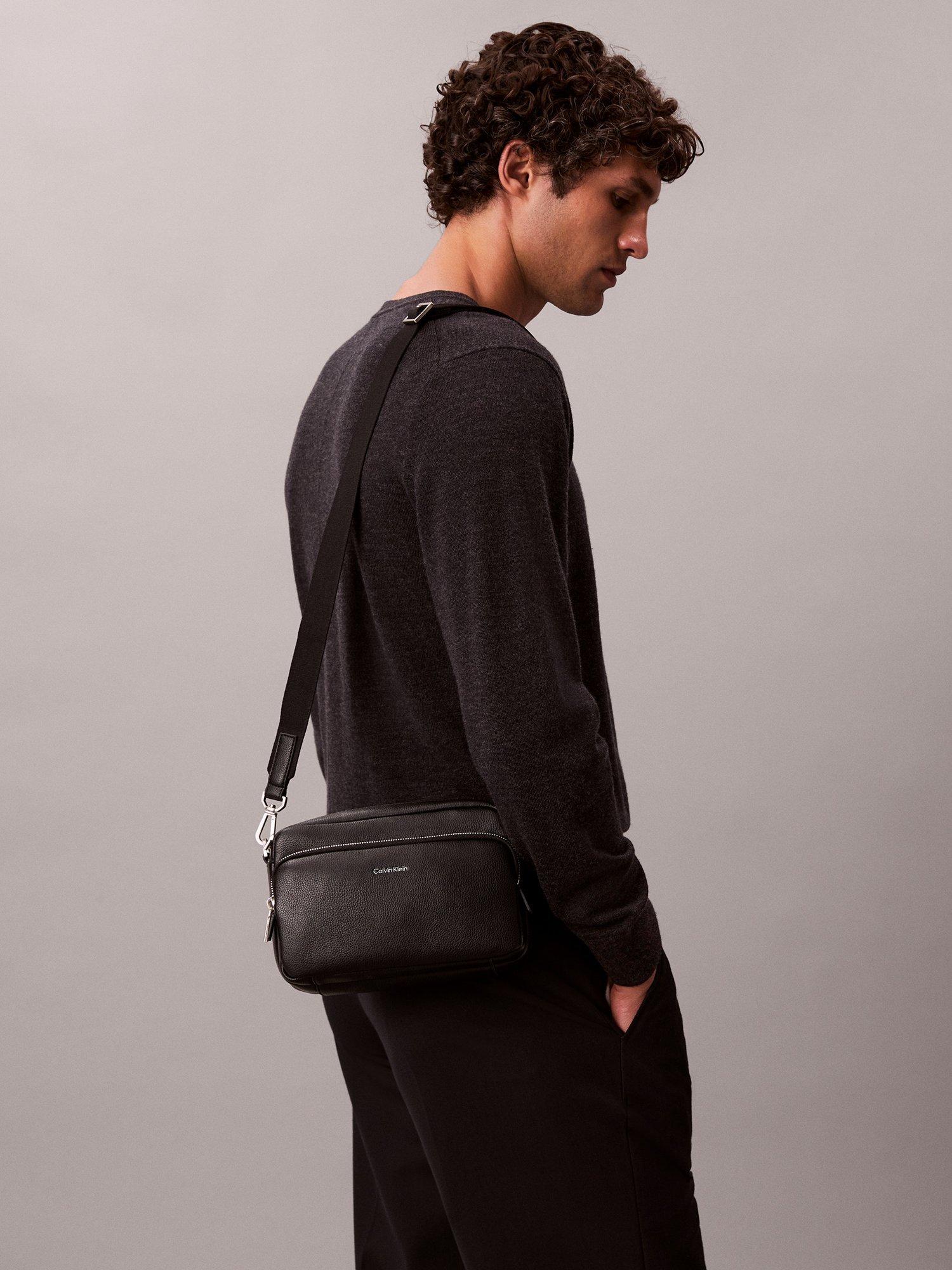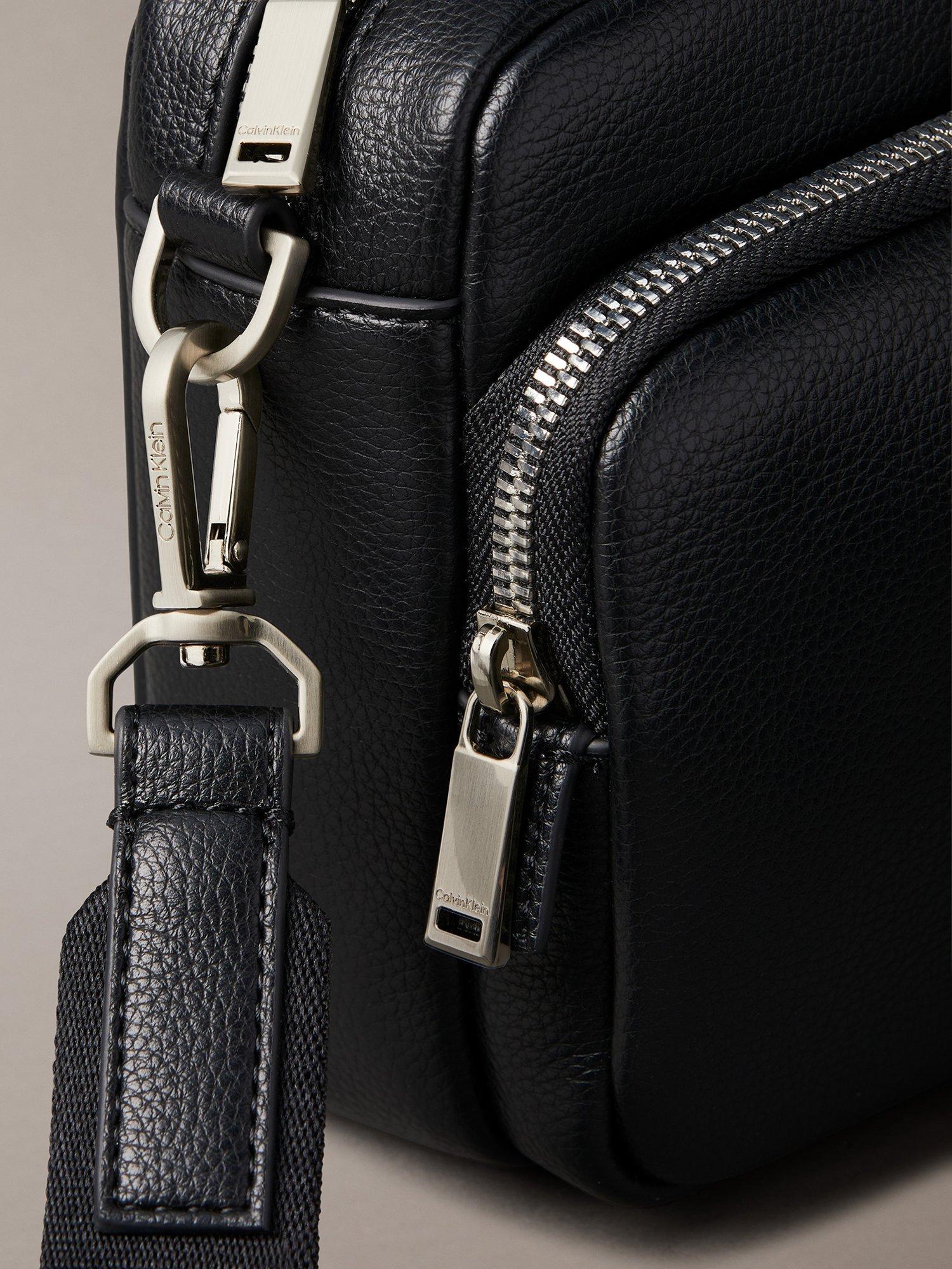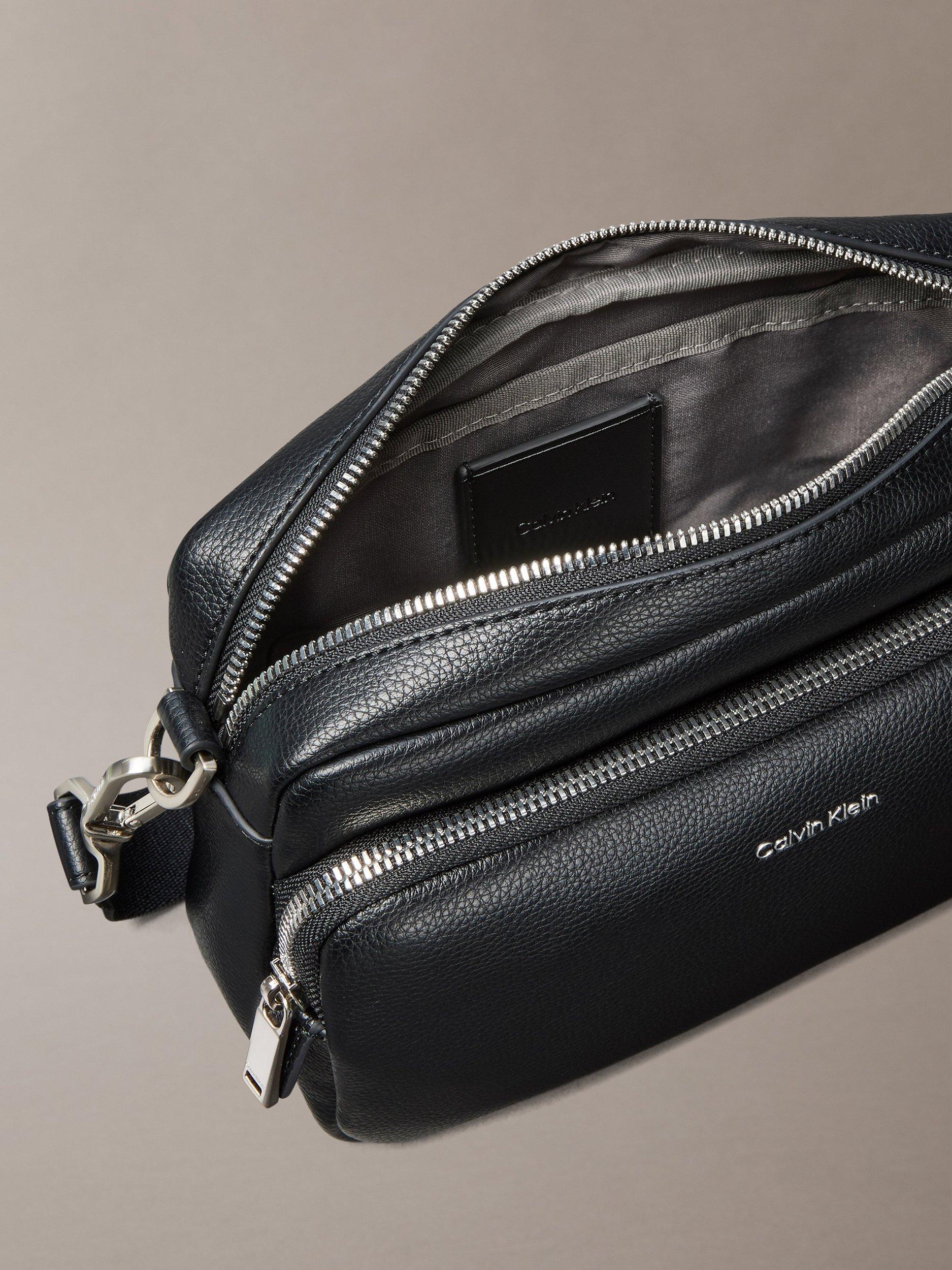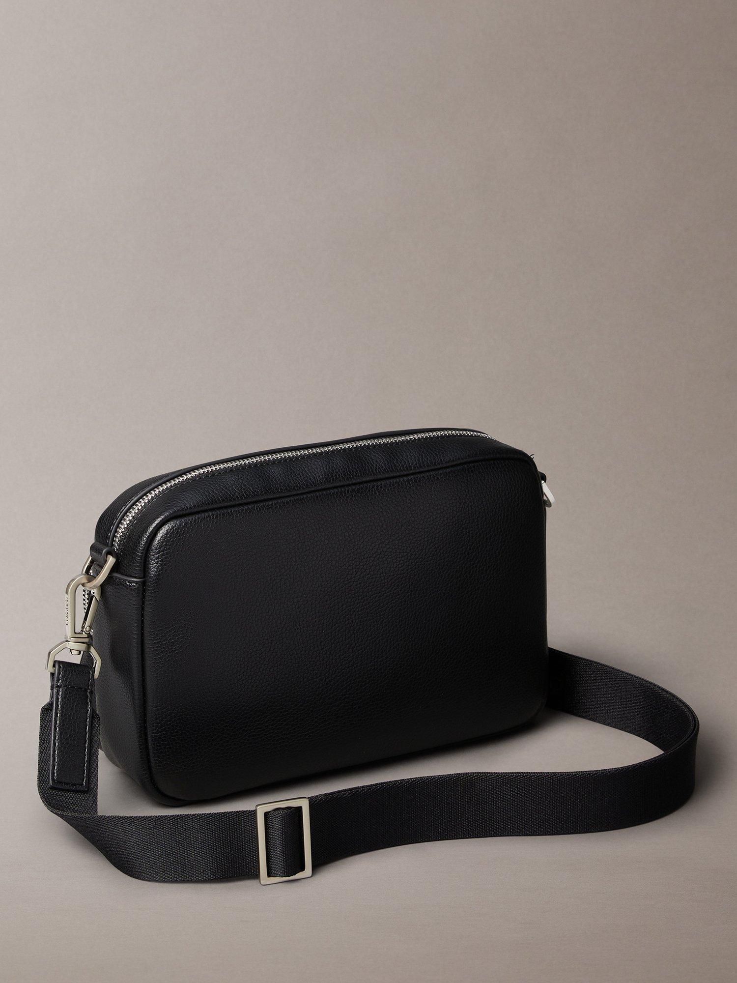 This sleek camera bag from Calvin Klein is a modern, versatile accessory. It features a main top zipper and a front zip pocket for easy access to your belongings. The bag also comes with a removable shoulder strap and is finished with a Calvin Klein logo.