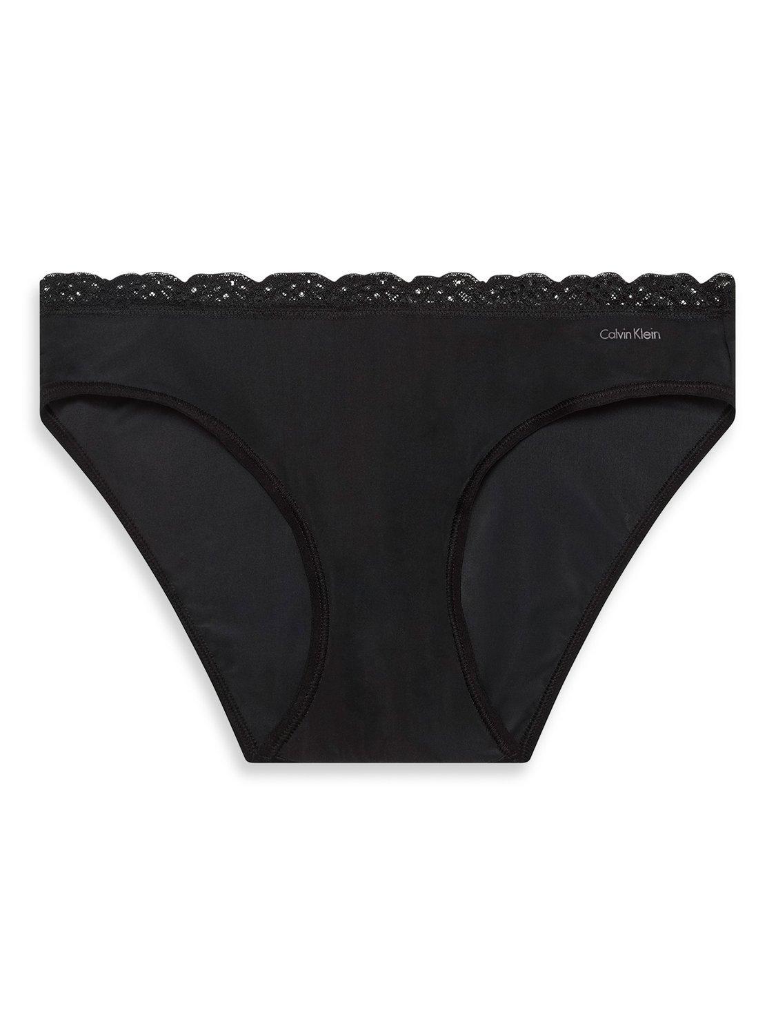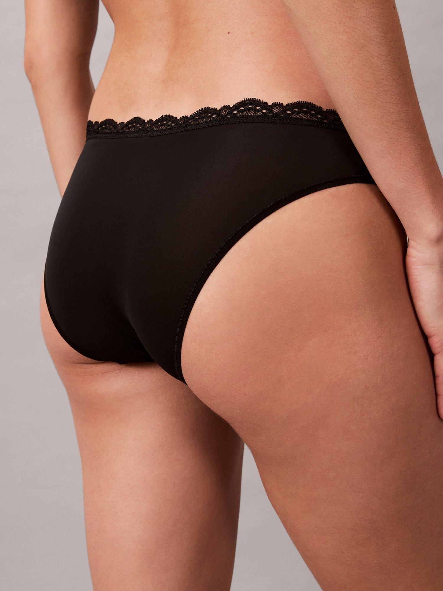 Soft and lightweight, this Calvin Klein underwear is detailed with scalloped edge lace trim. Crafted from a silky microfibre stretch blend with clean finishes for a smooth feel. Also features a fully lined gusset and seaming details. Complete with a Calvin Klein heat seal logo at the hip.