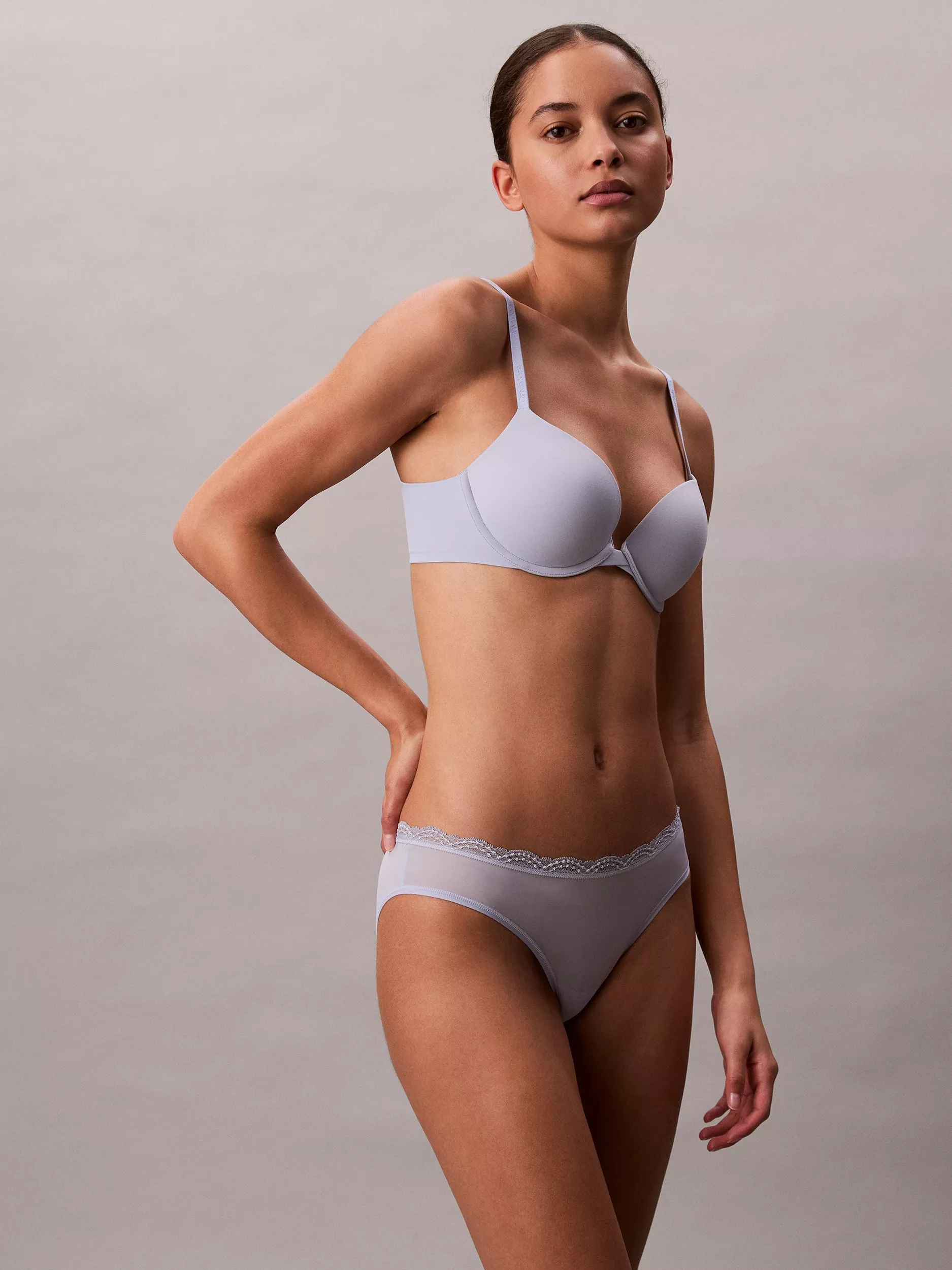 Soft and lightweight, this Calvin Klein underwear is detailed with scalloped edge lace trim. Crafted from a silky microfibre stretch blend with clean finishes for a smooth feel.