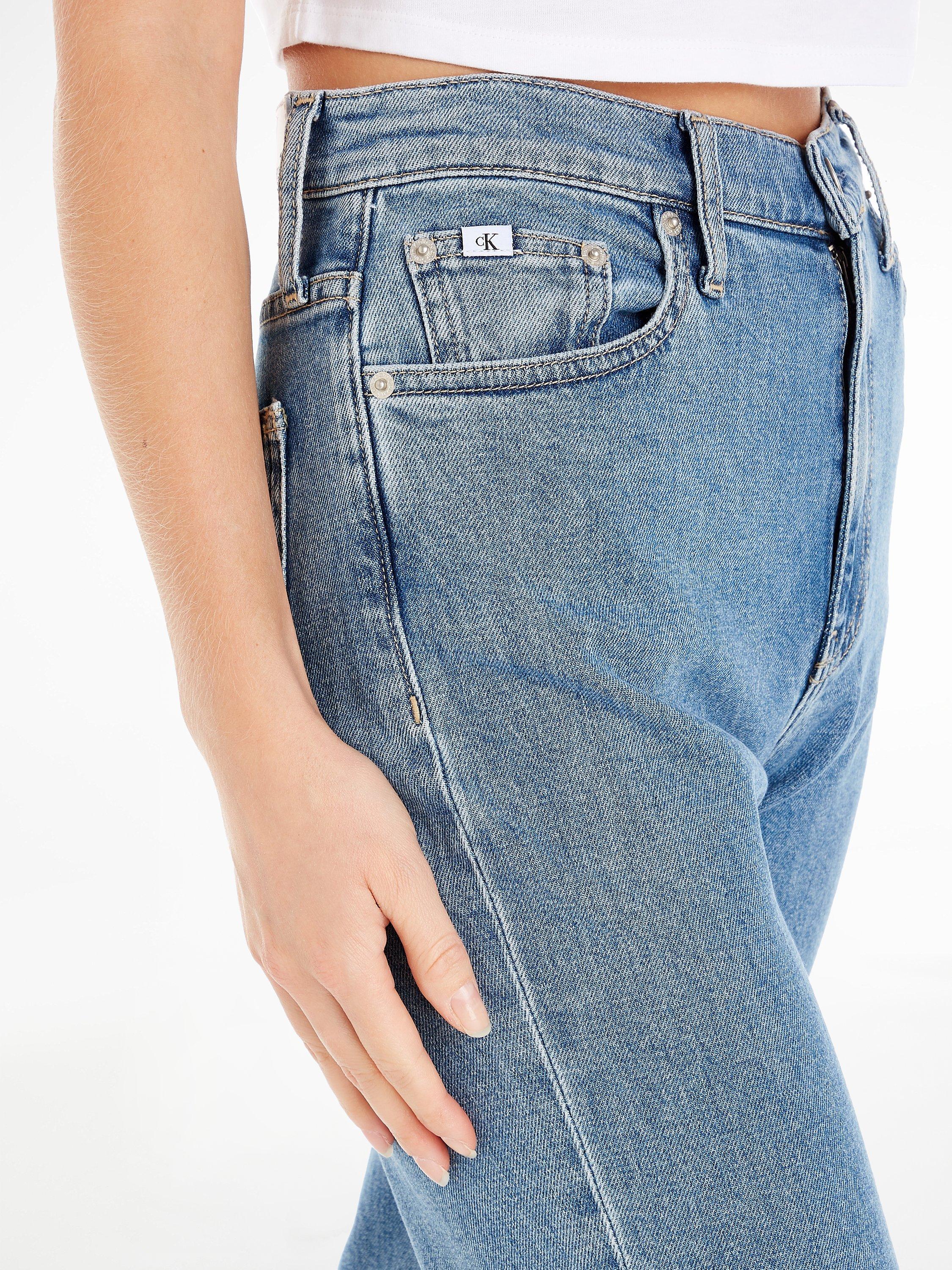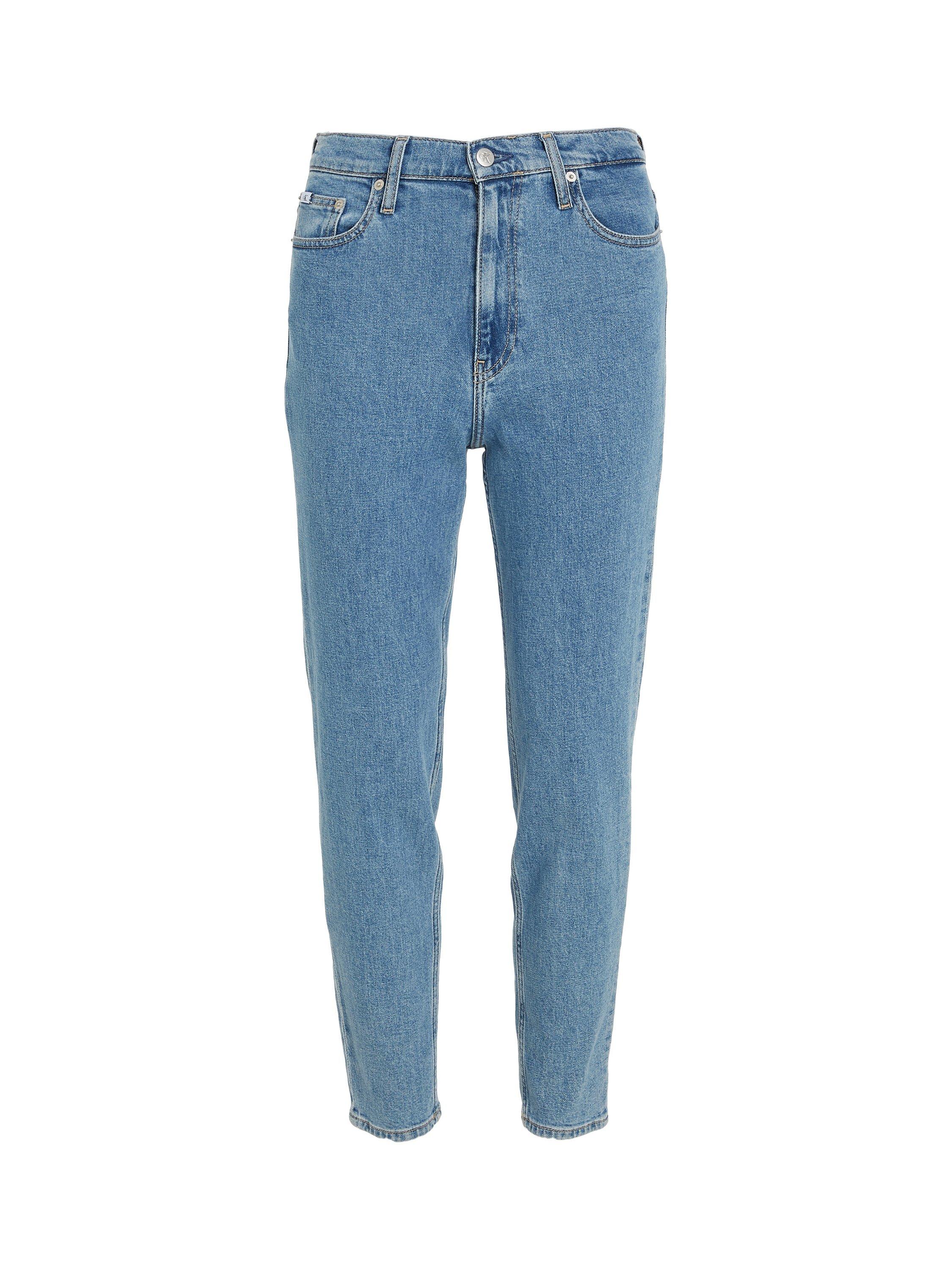 A pair of high-waisted mom jeans from Calvin Klein Jeans, made from classic denim and sitting at the ankle for a contemporary finish. Wearing well with subtle pattern, allow yourself to experiment a little.