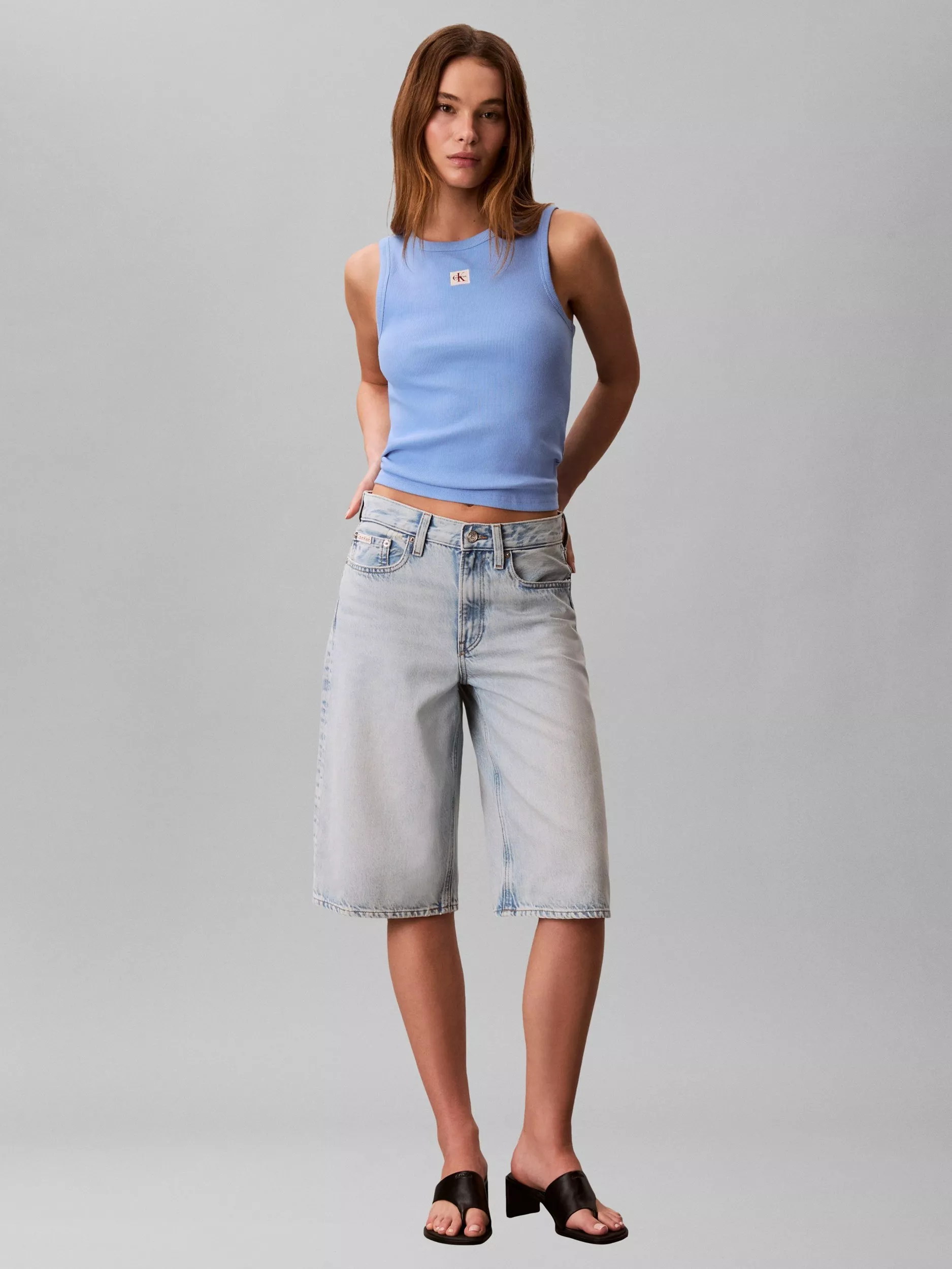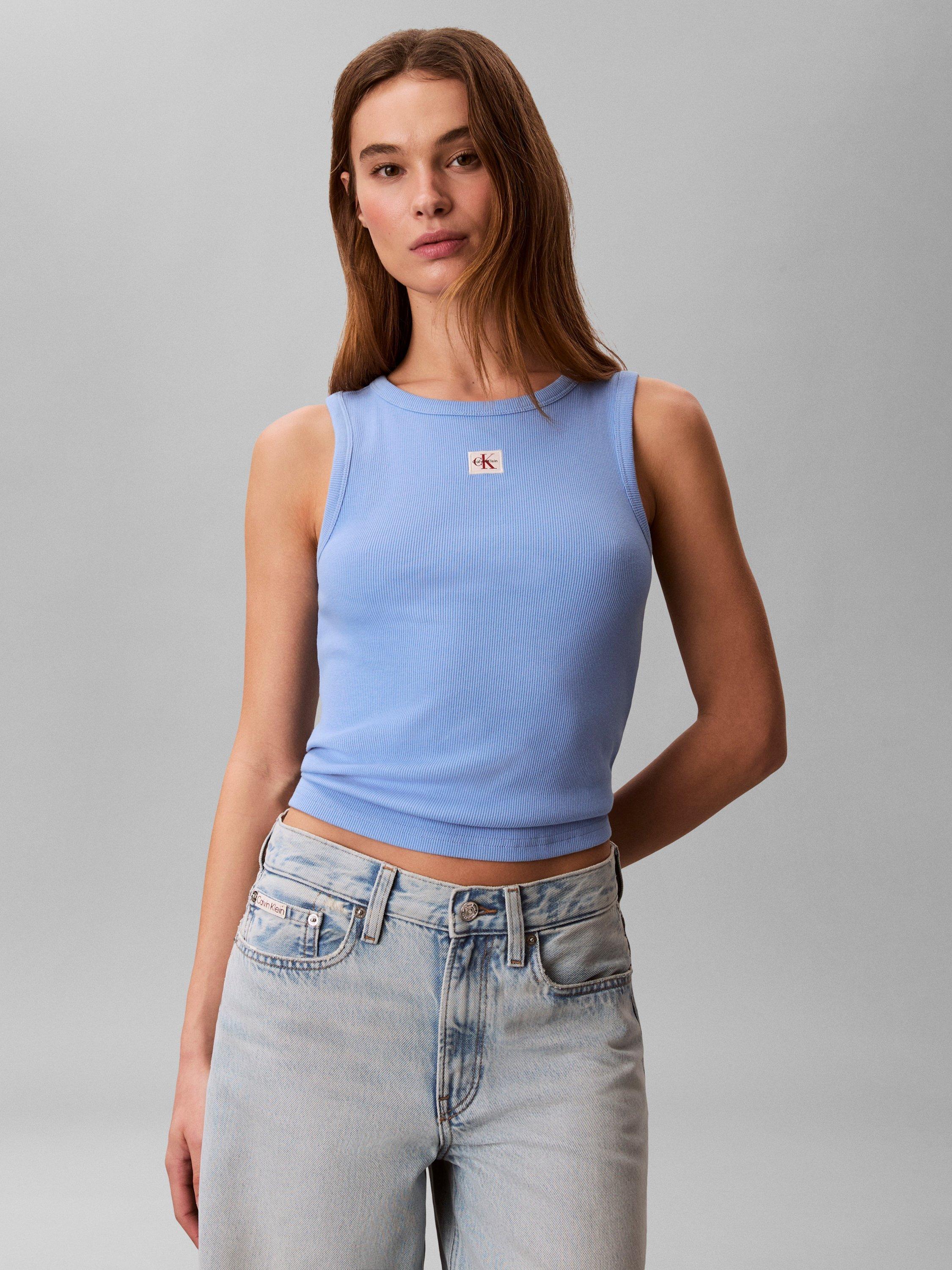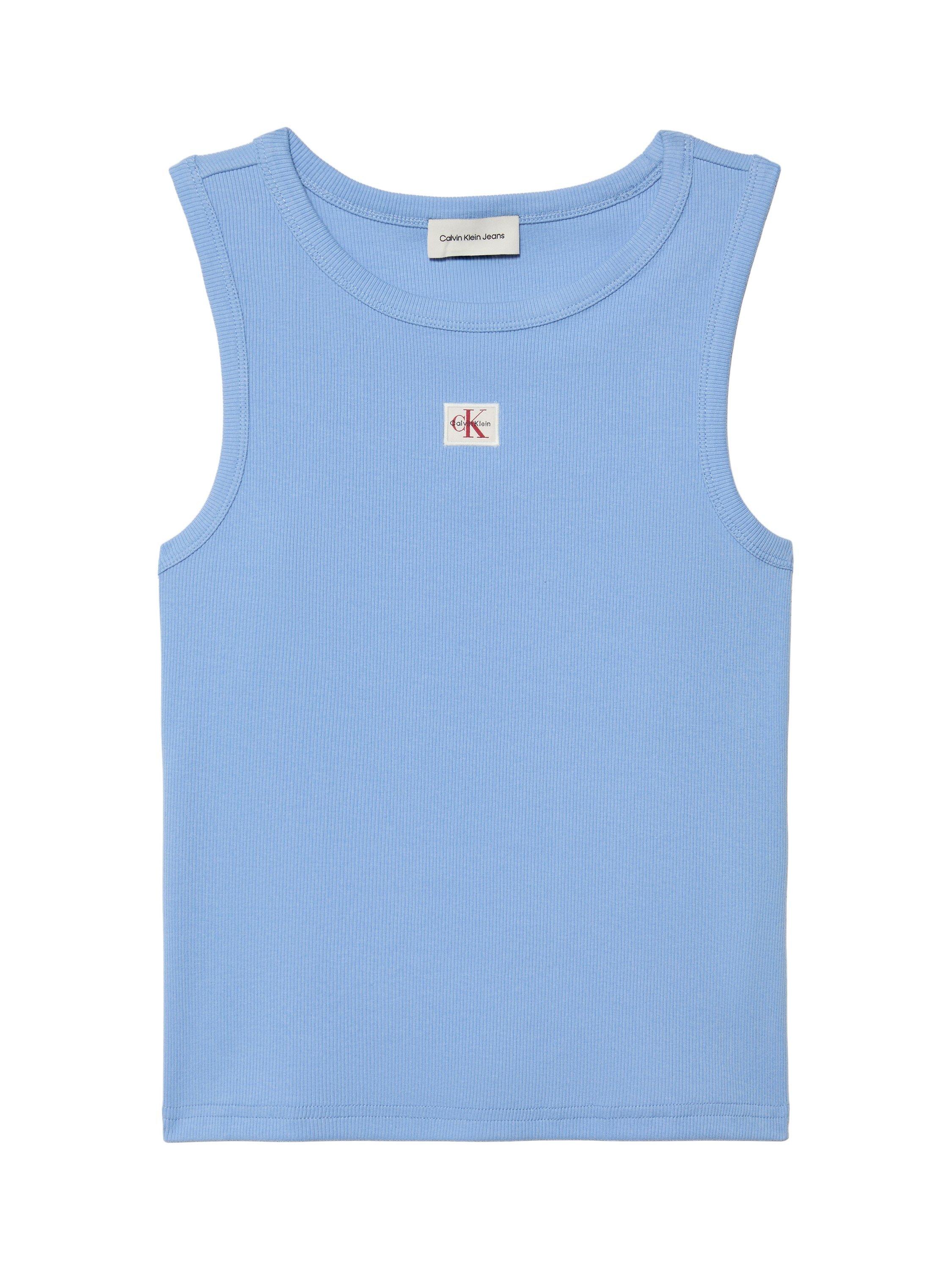 Calvin KleinMonogram Badge Ribbed Vest Top, Blue Descent