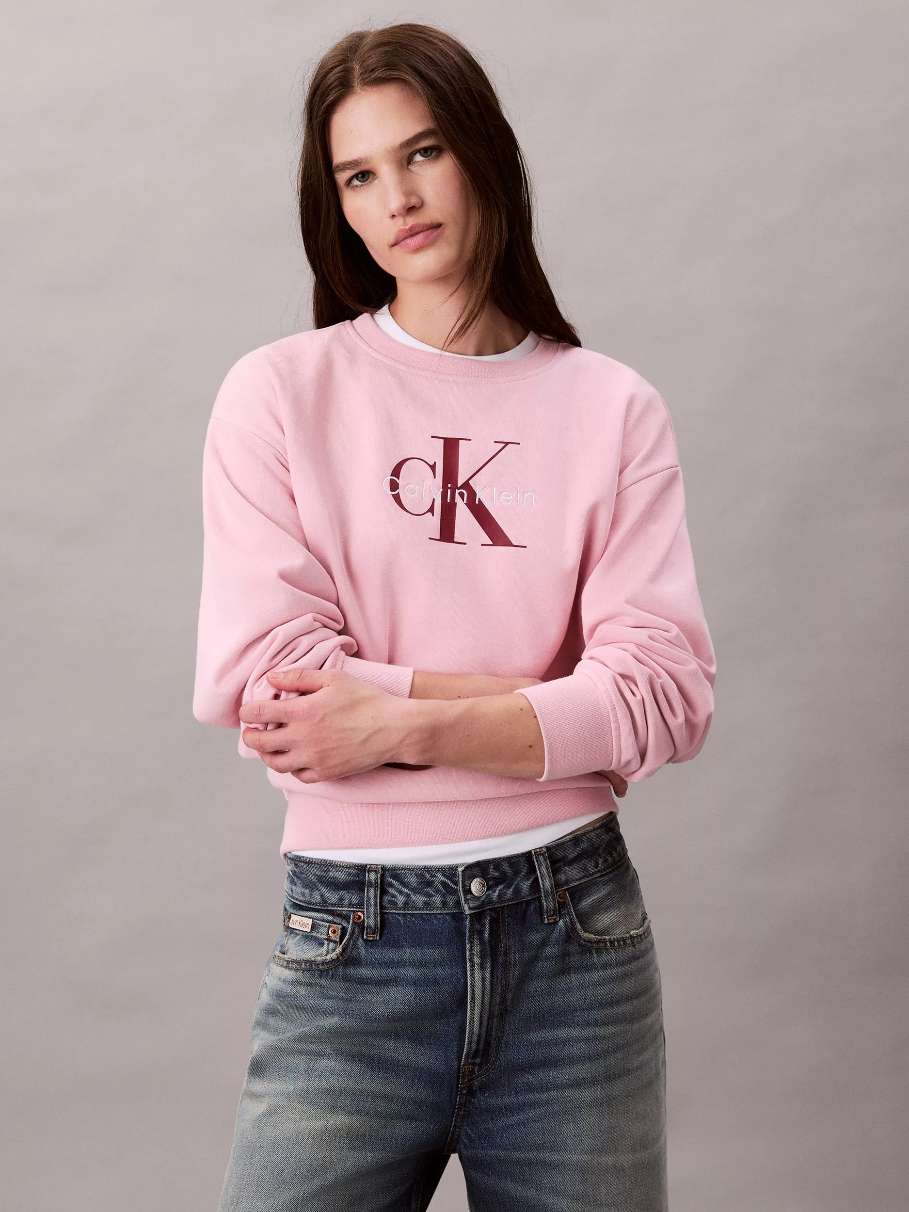 Fabricated from a cotton blend, this mid-weight crew neck jumper from Calvin Klein has a distinctive design.