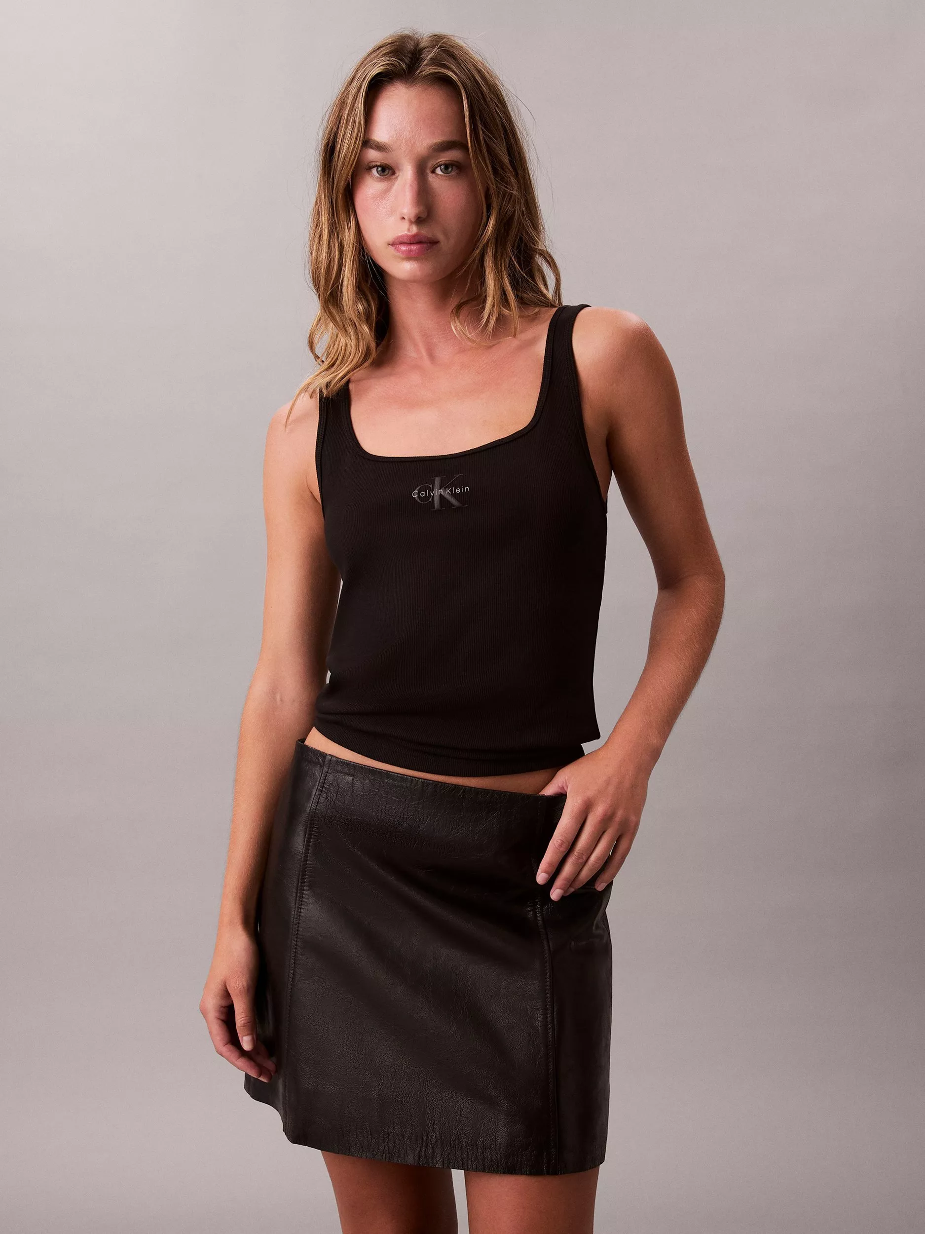 Calvin KleinMonogram Logo Scoop Neck Top, Black