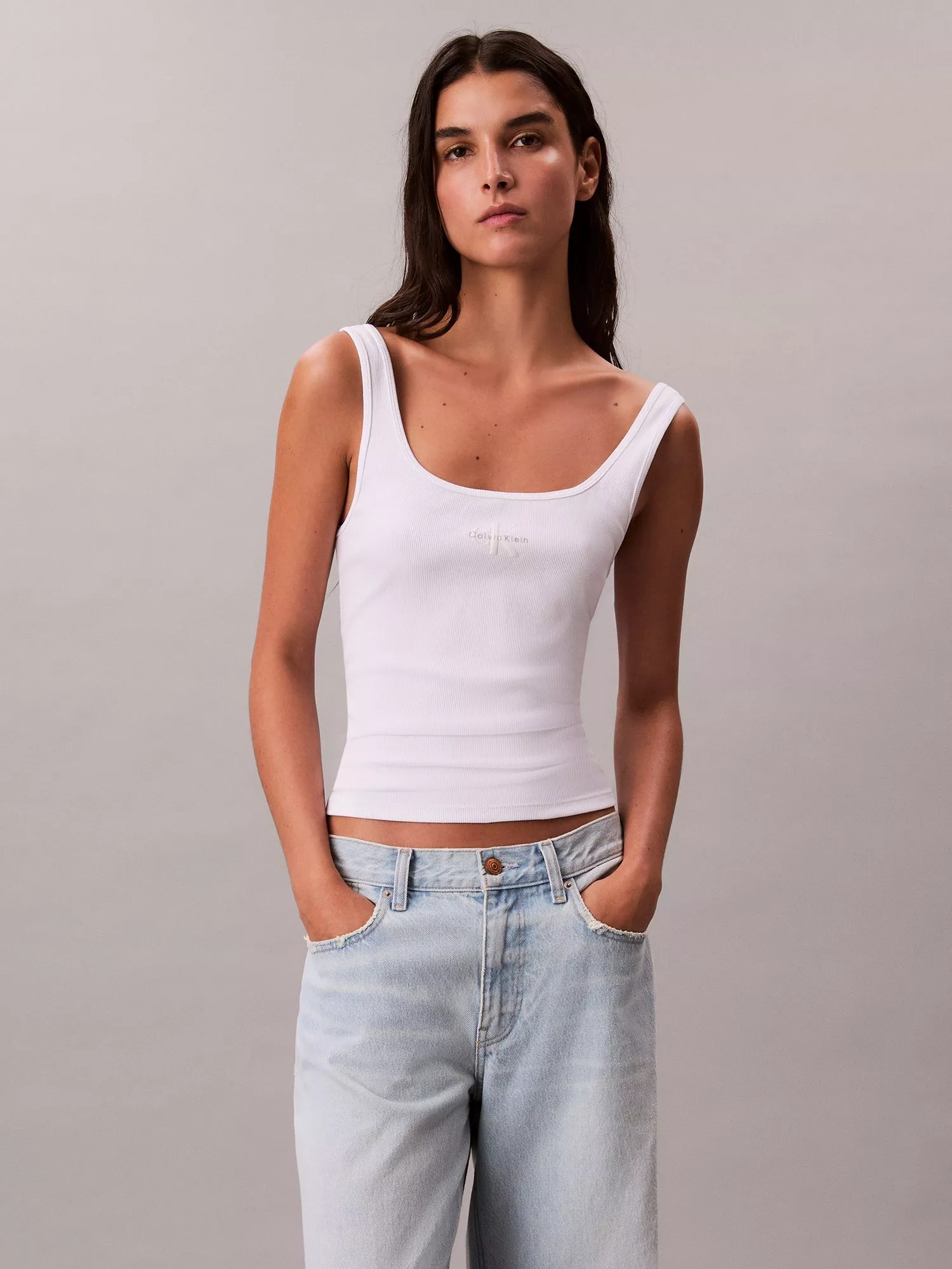 Calvin KleinMonogram Logo Scoop Neck Top, Bright White