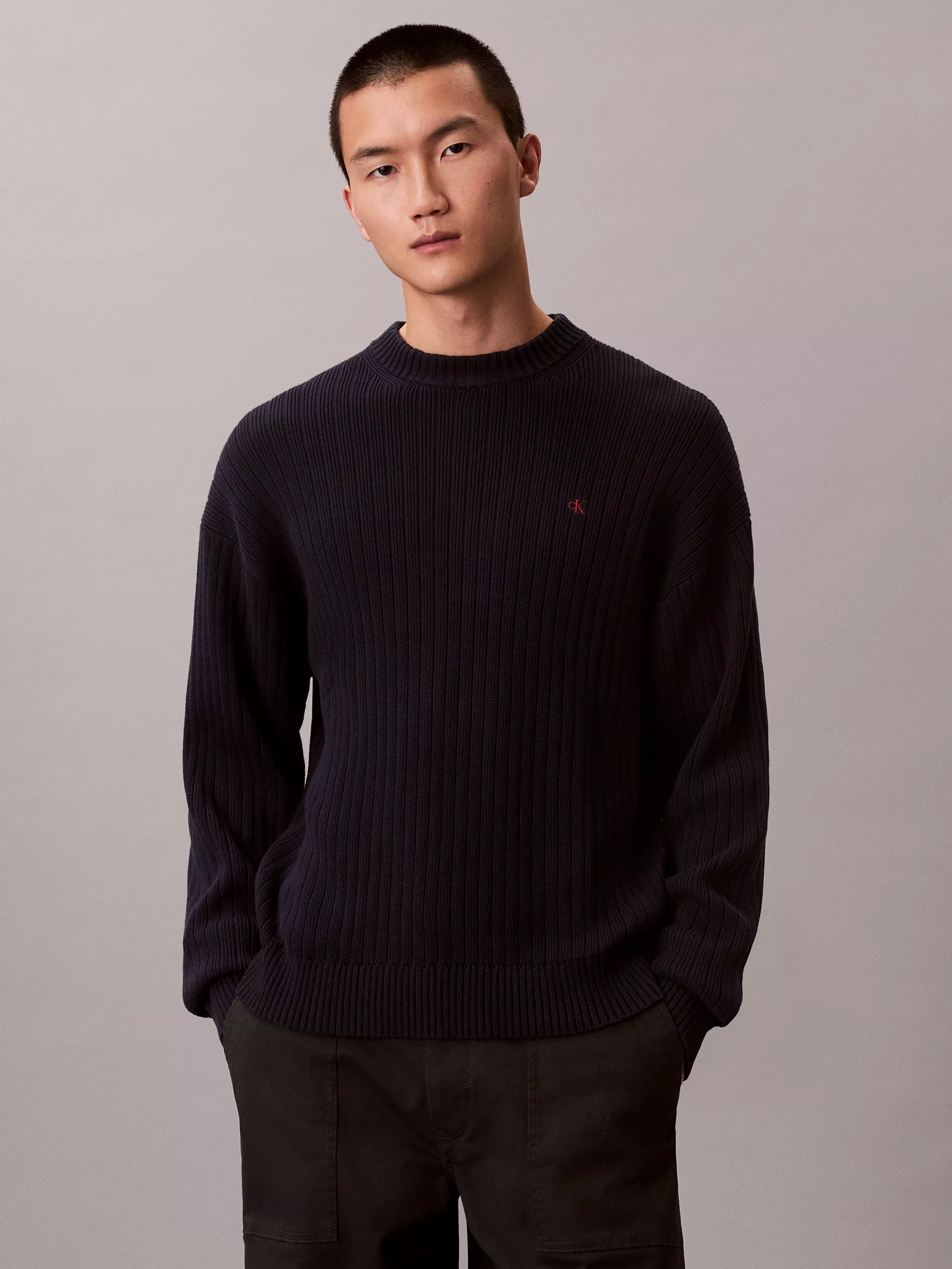 A textured take on a classic, this regular-fit crew neck jumper is crafted from pure, breathable cotton with a vertical ribbed pattern.