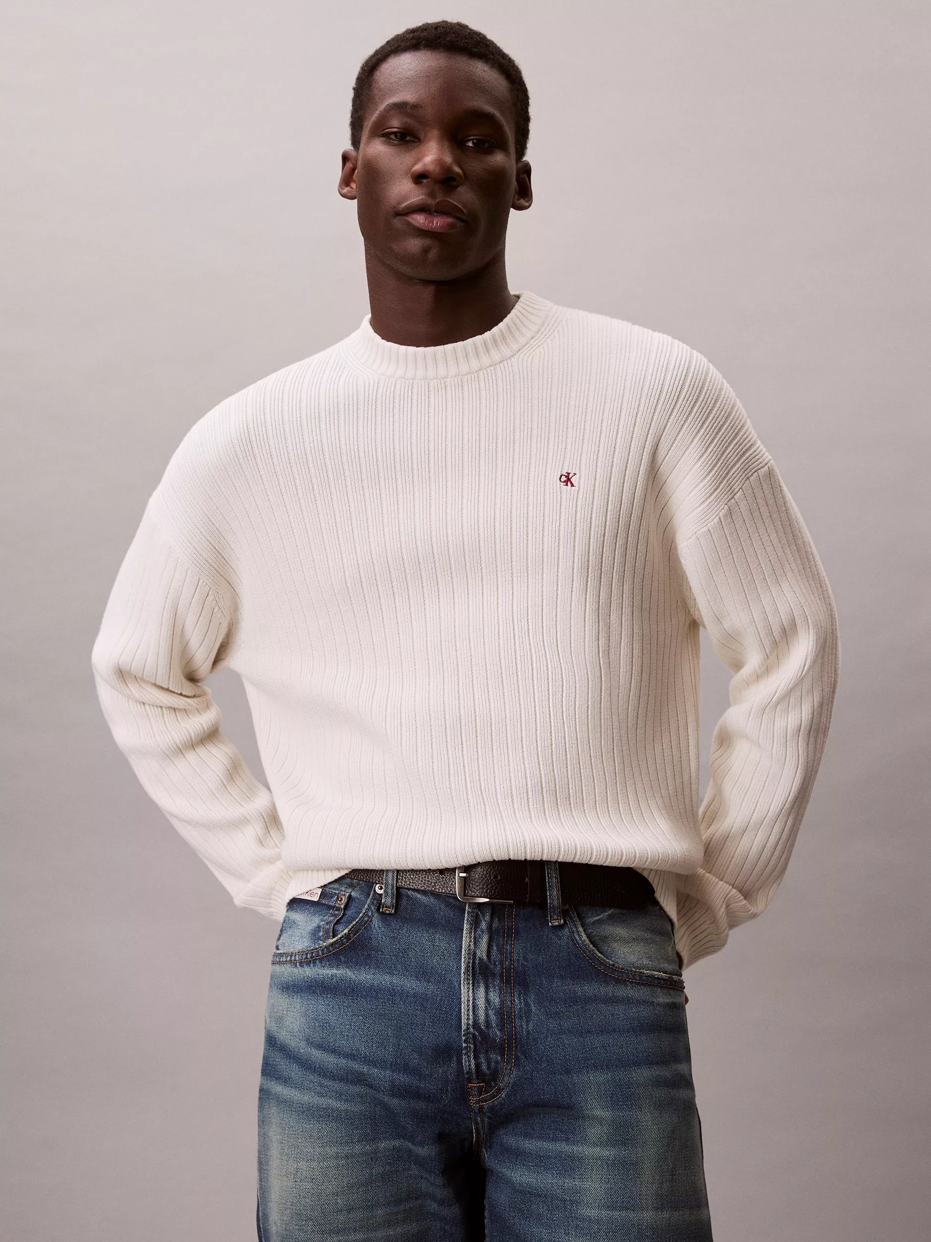 A textured take on a classic, this regular-fit crew neck jumper is crafted from pure, breathable cotton with a vertical ribbed pattern.
