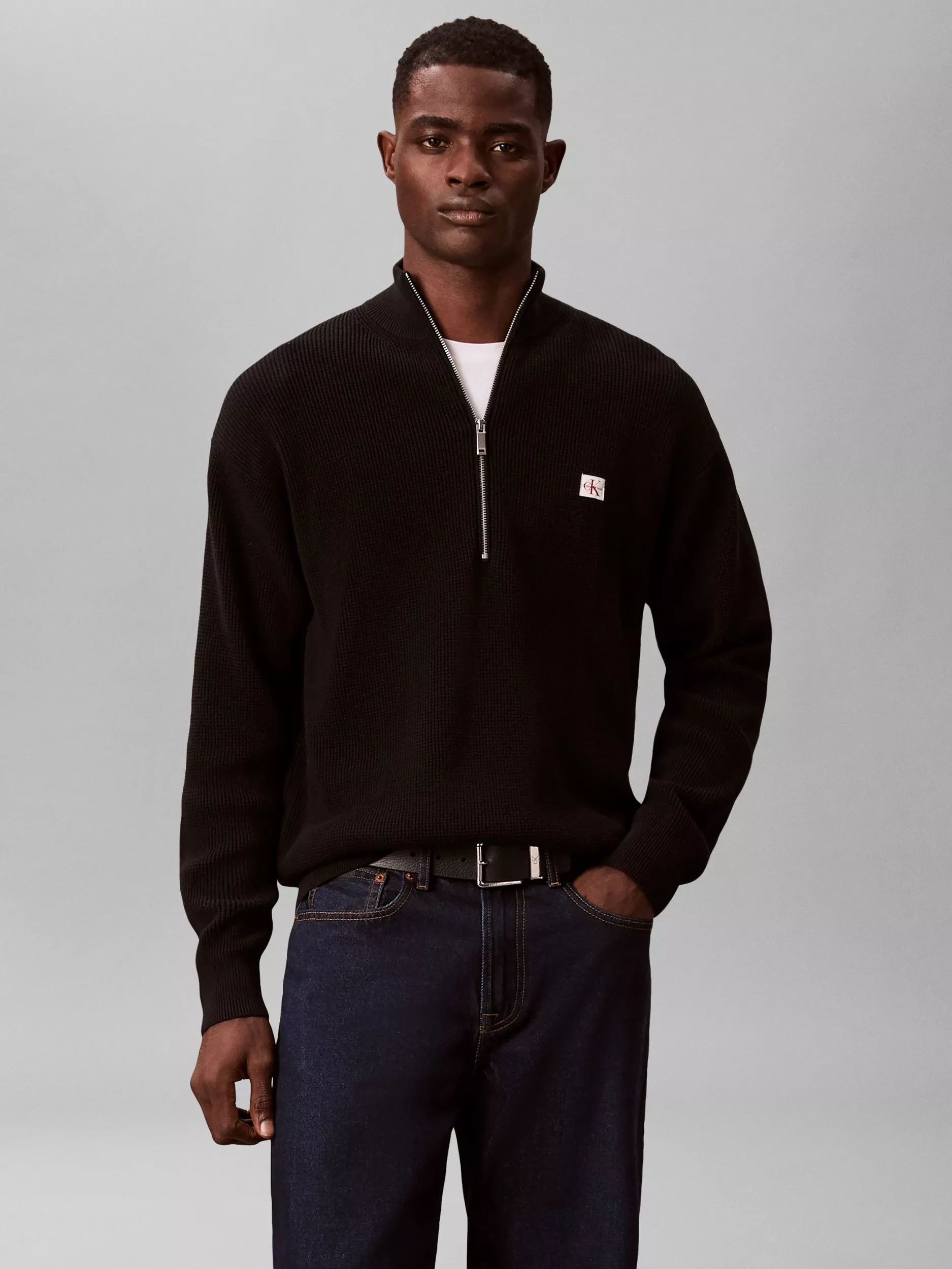 Calvin KleinQuarter-Zip Waffle Textured Jumper, Black