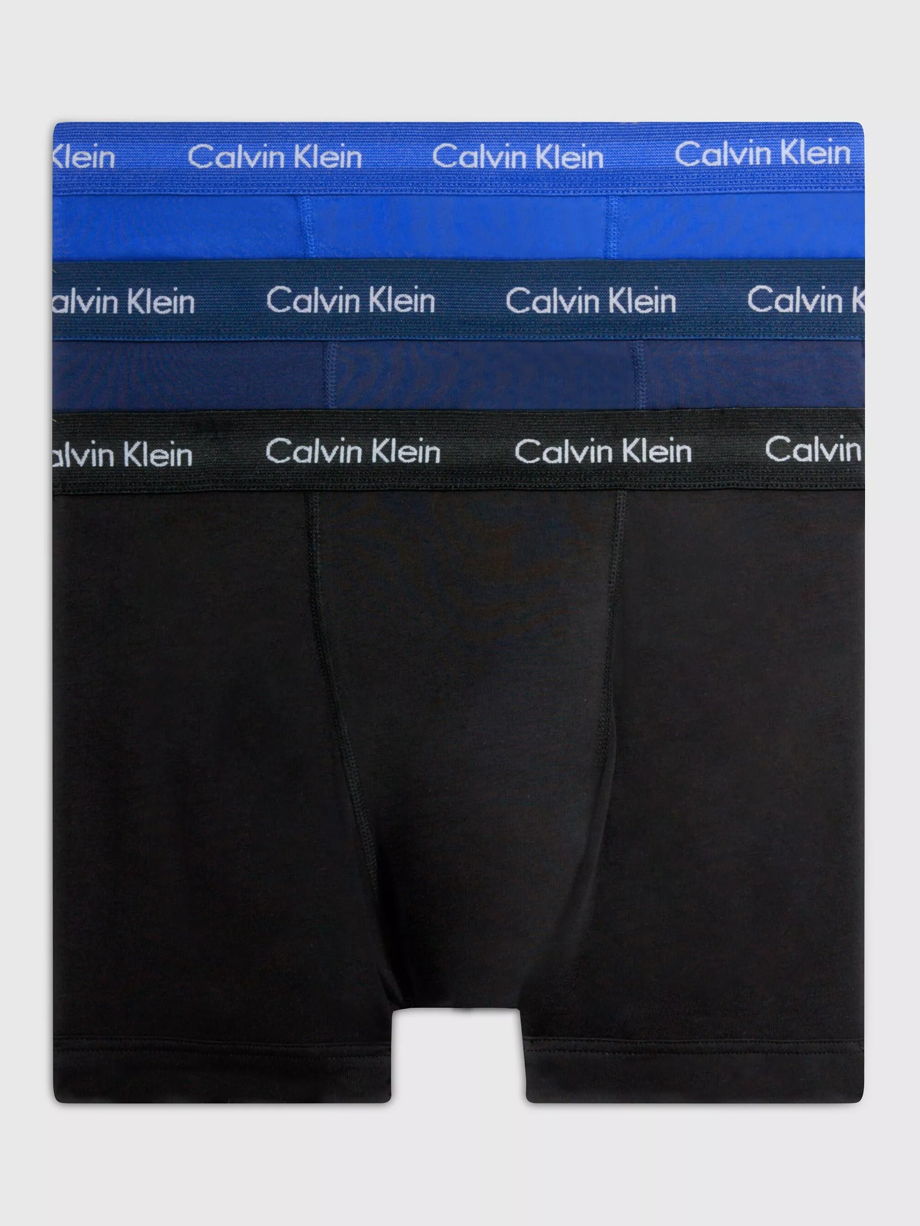 Calvin KleinRegular Cotton Stretch Trunks, Pack of 3, Black/Blue Shadow/Cobalt