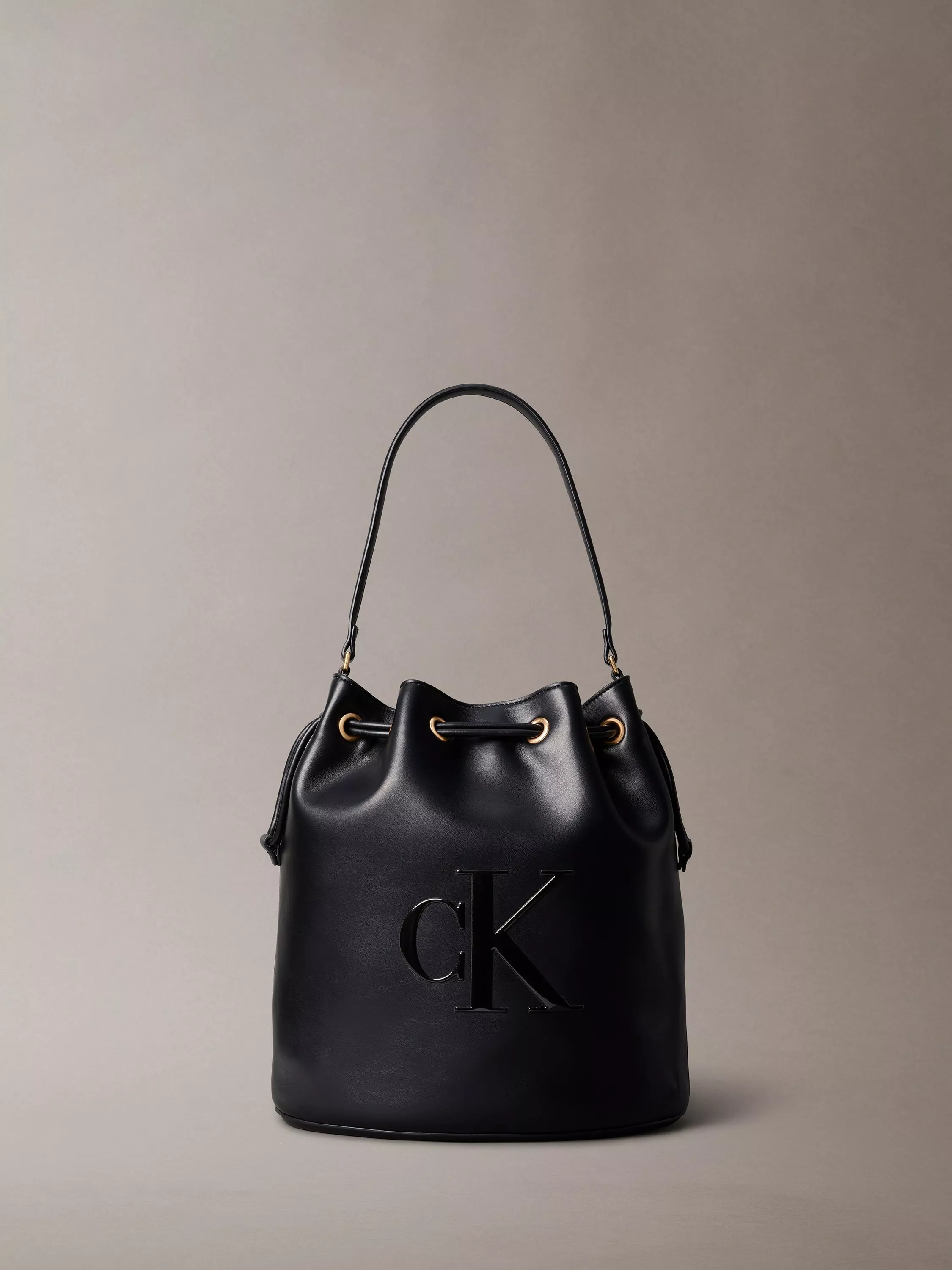 Calvin KleinSandi Embossed Monogram Logo Bucket Bag, Black
