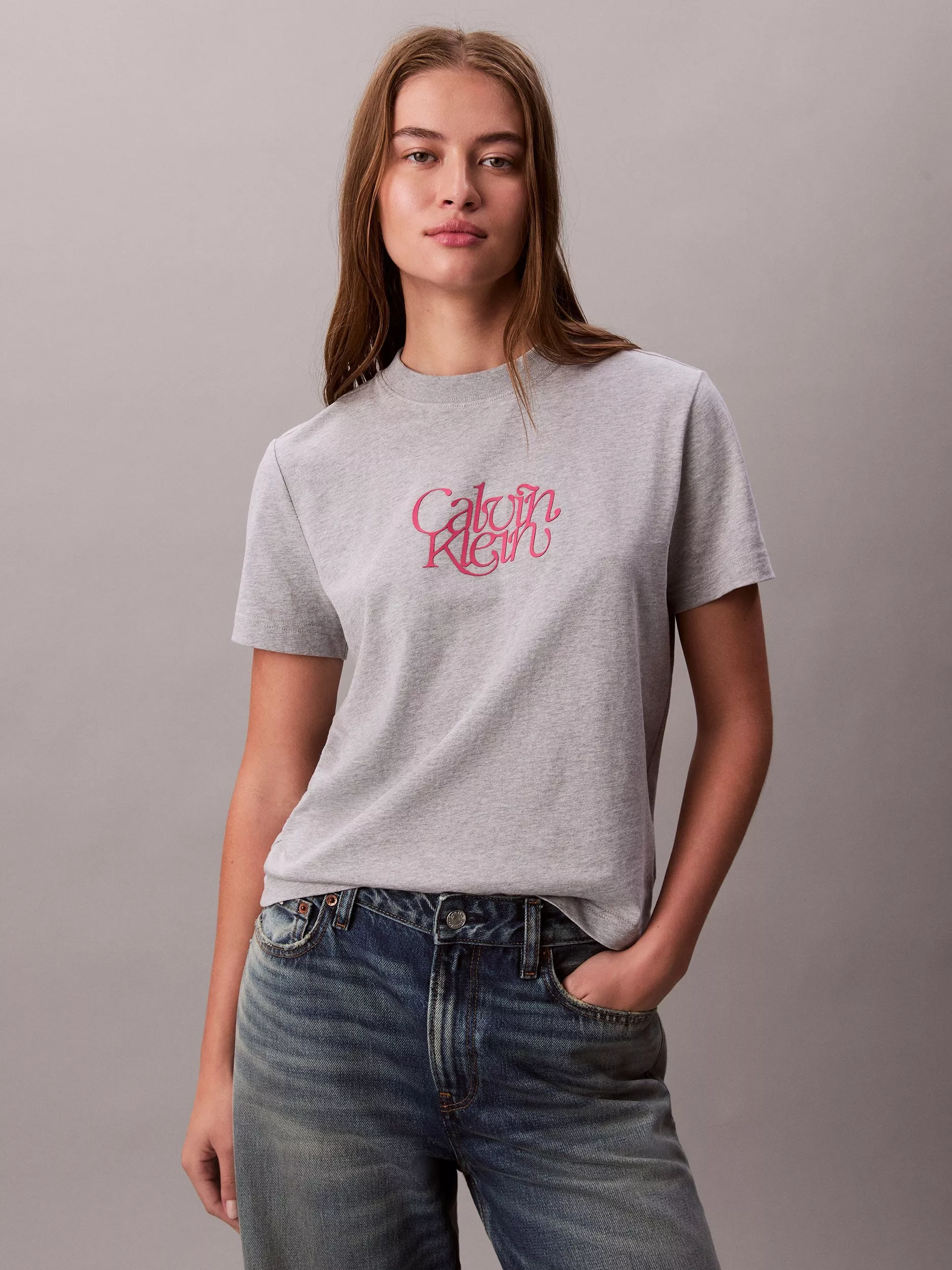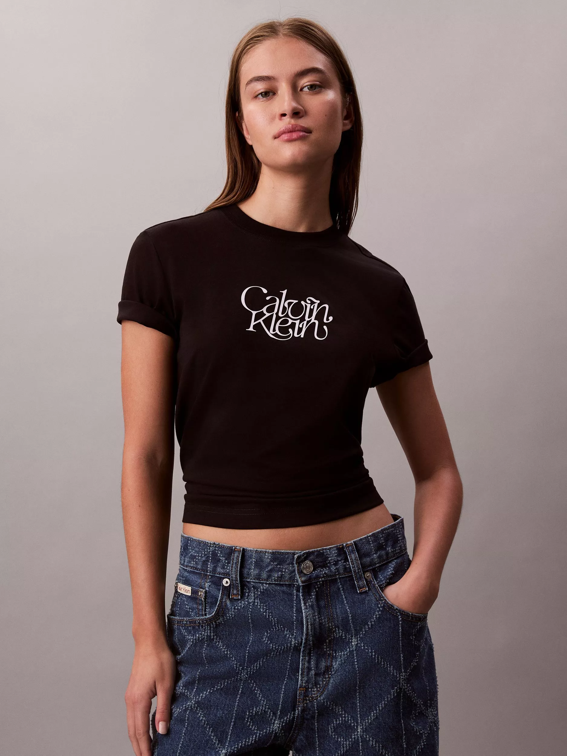 This slim fit T-shirt by Calvin Klein is designed from cotton with a crew neck and features the brand's script logo.