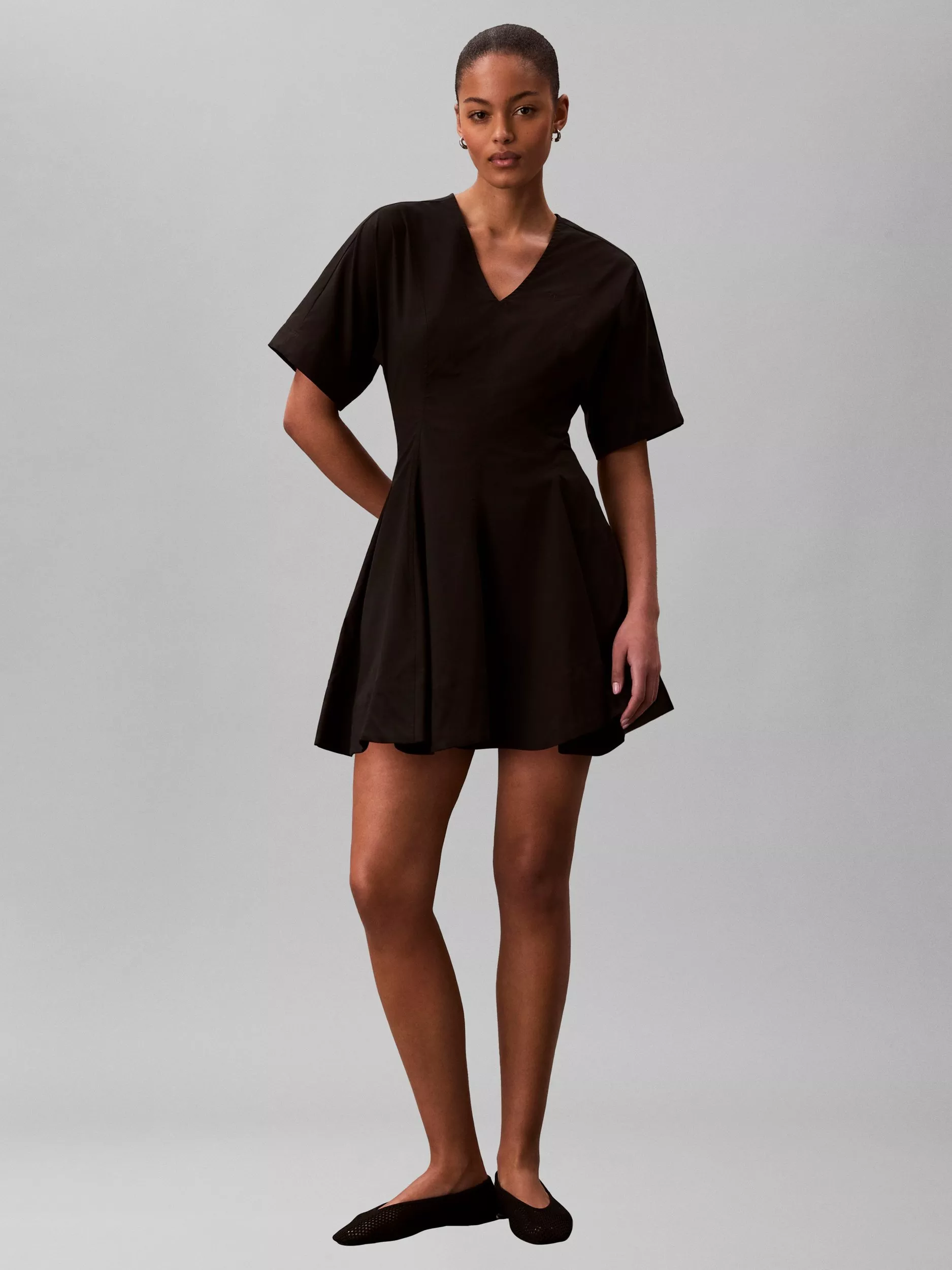 Calvin KleinShort Sleeve Poplin Mini Dress, Black