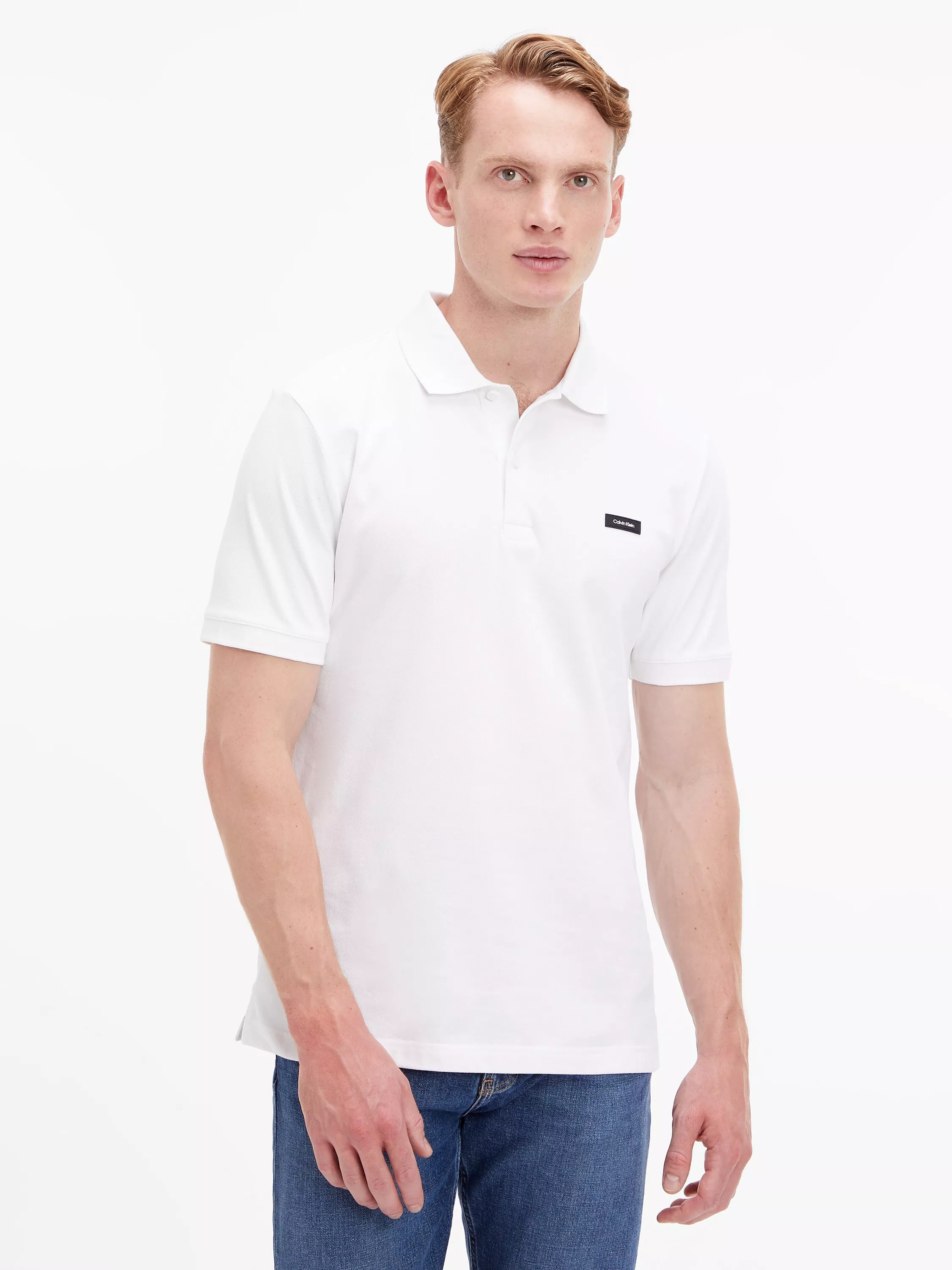 Enhance your wardrobe essentials with this slim fit cotton blend polo shirt by Calvin Klein.