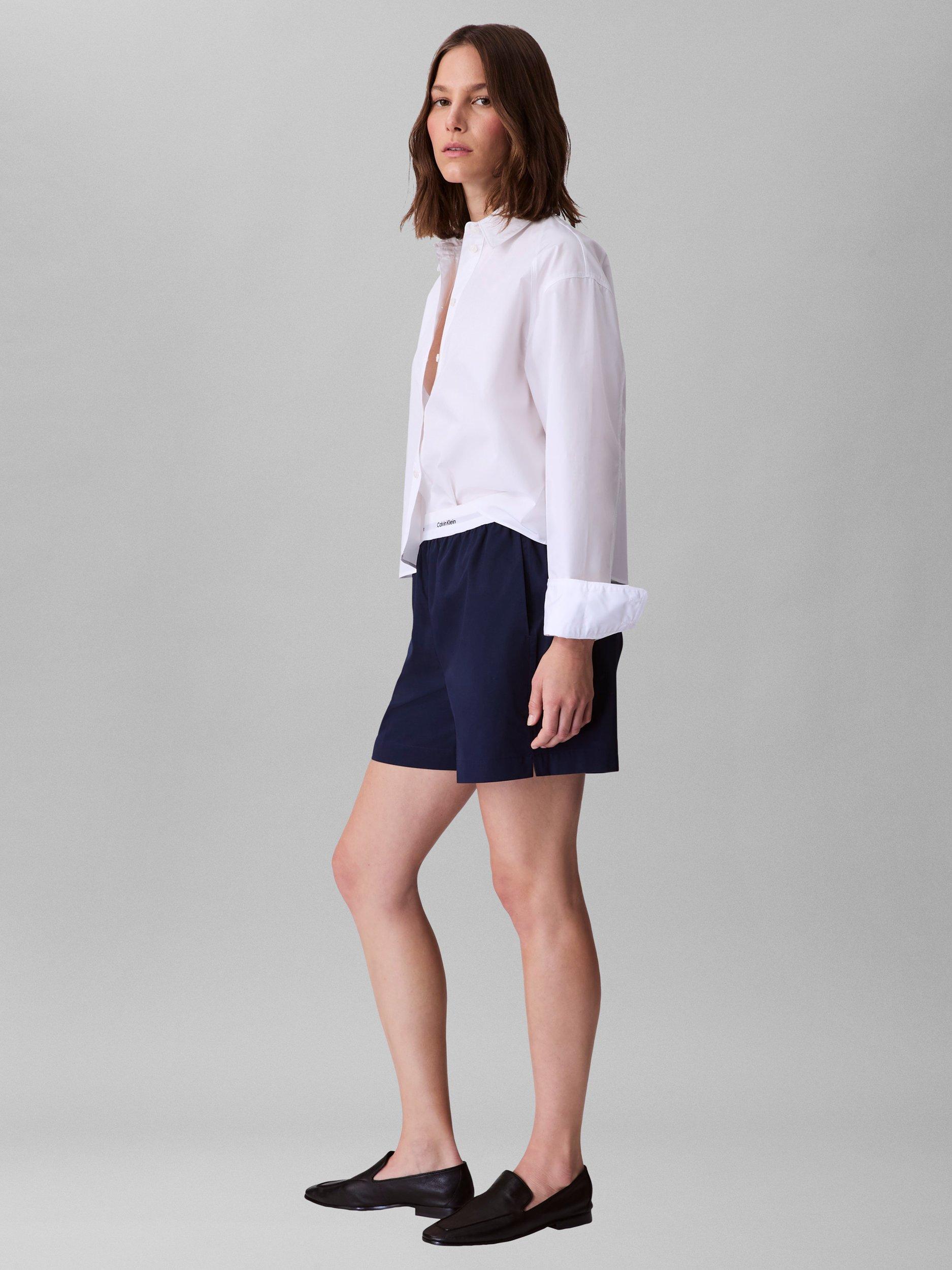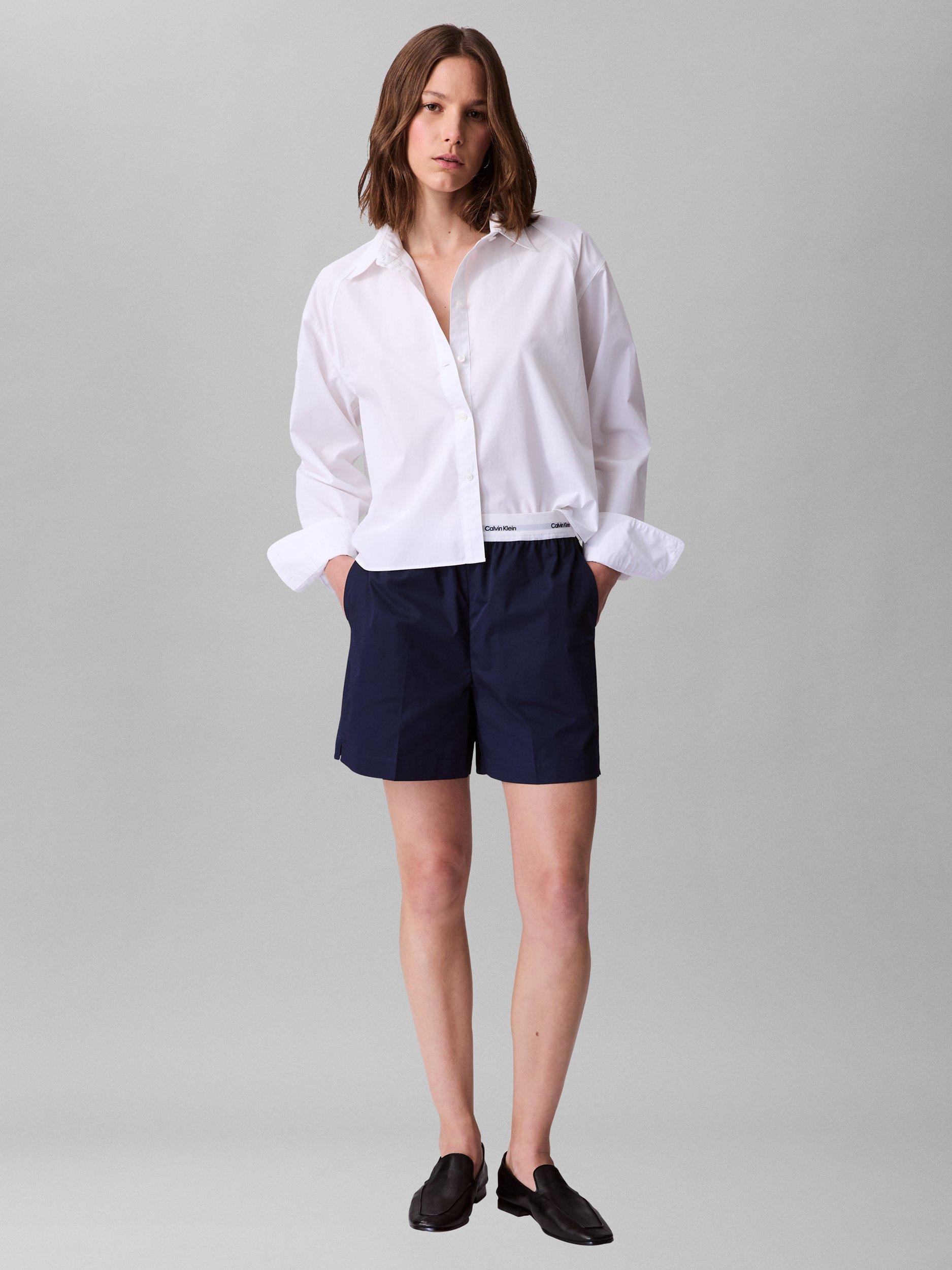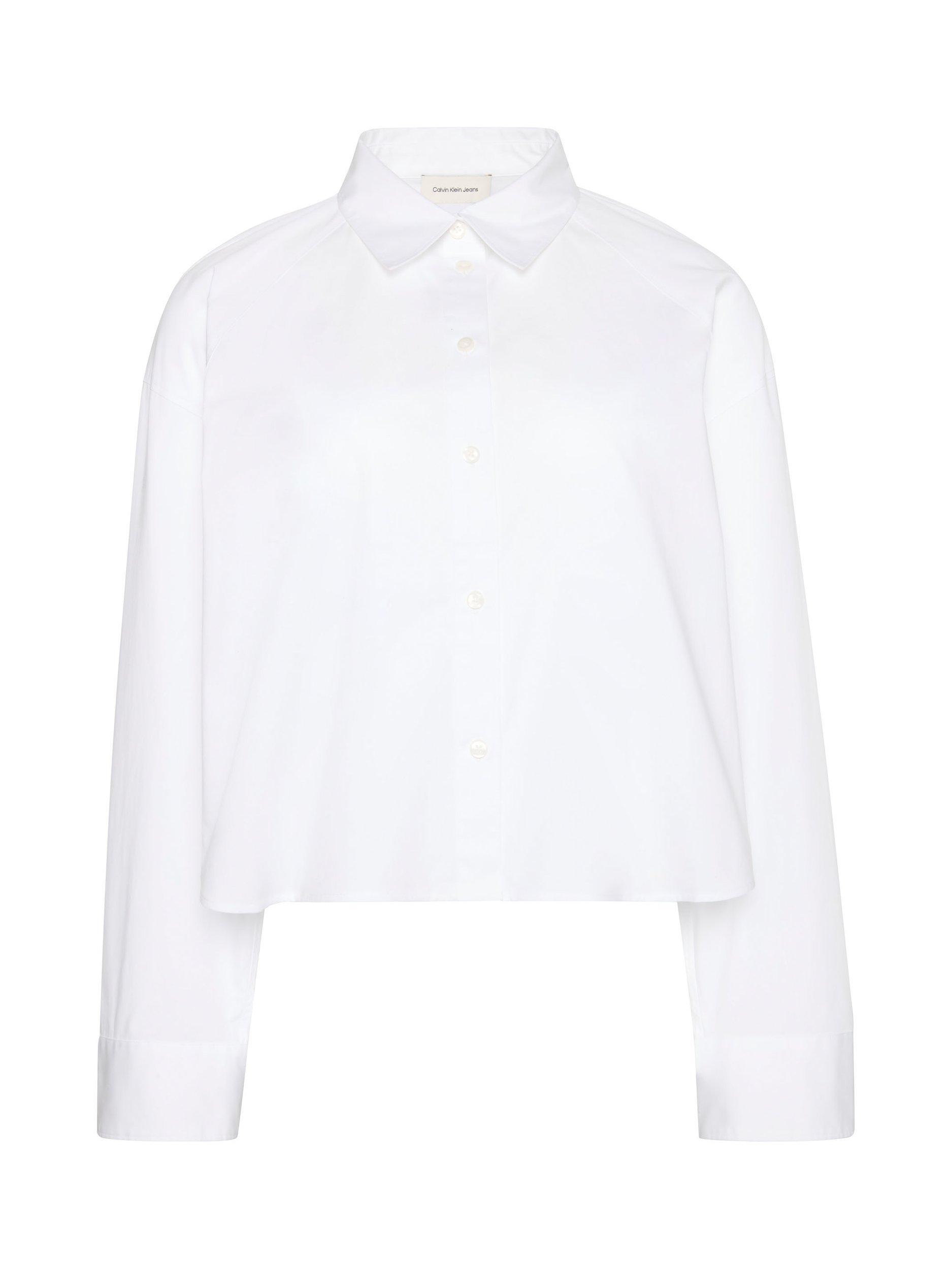 A boxy fit, cropped shirt by Calvin Klein, made from a comfortable cotton-rich fabric. With a collar neck and long sleeves, it comes in a mix-and-match ready plain colour. Effortless style for daily dressing.