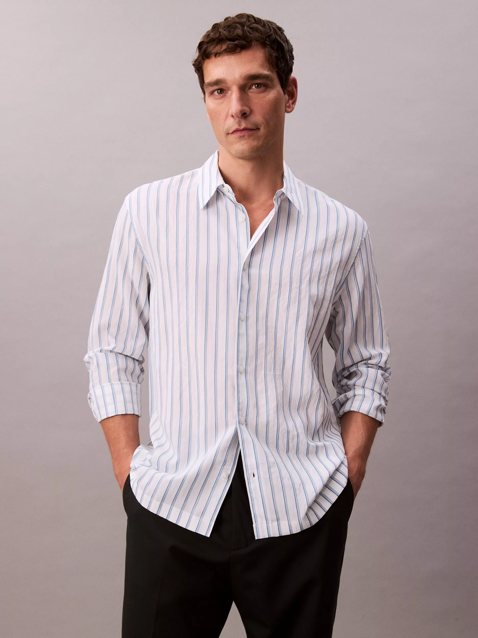 Calvin Klein's smart striped shirt brings ease to your day – lightweight for comfort, with a crisp collar and regular fit that works from meetings to meet-ups.