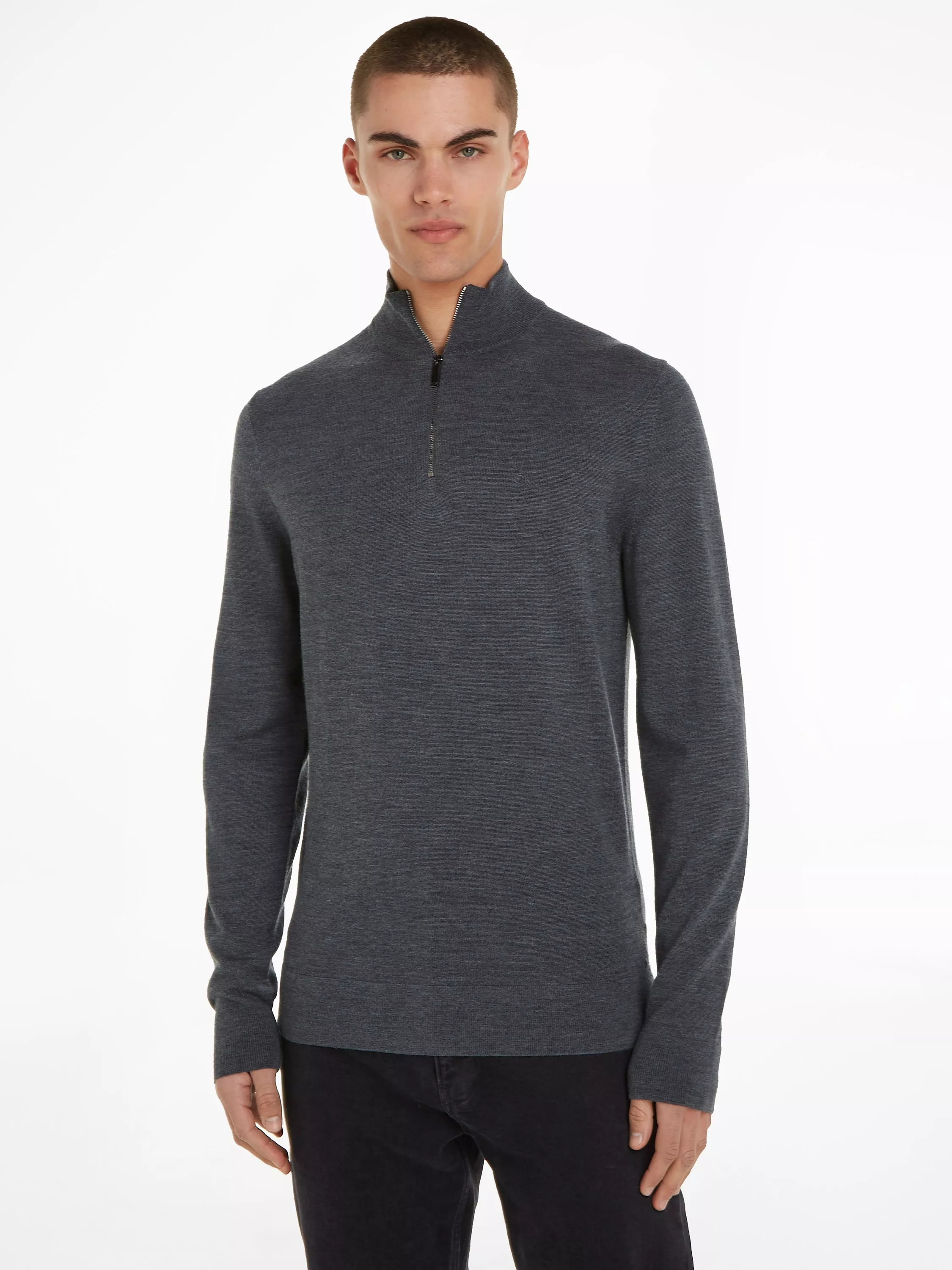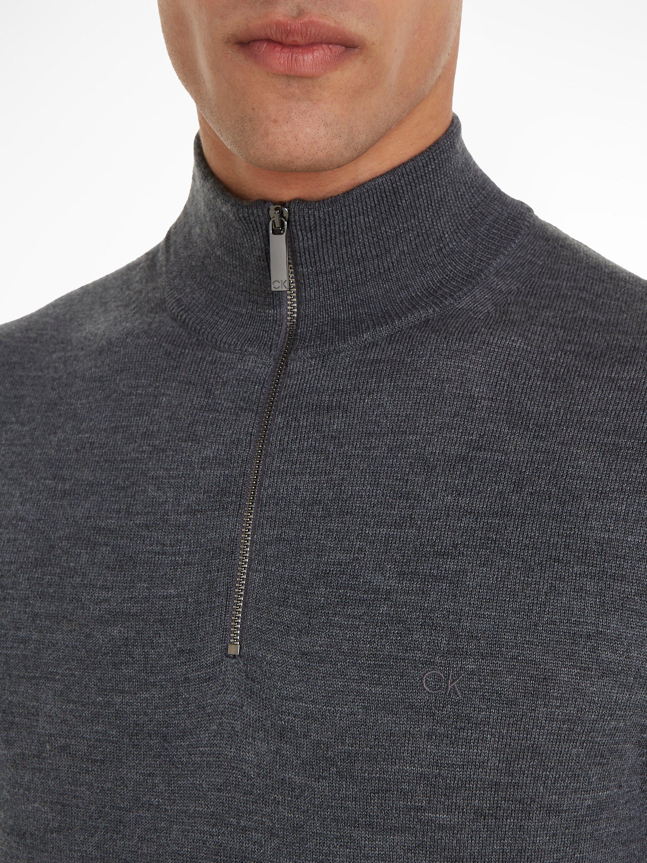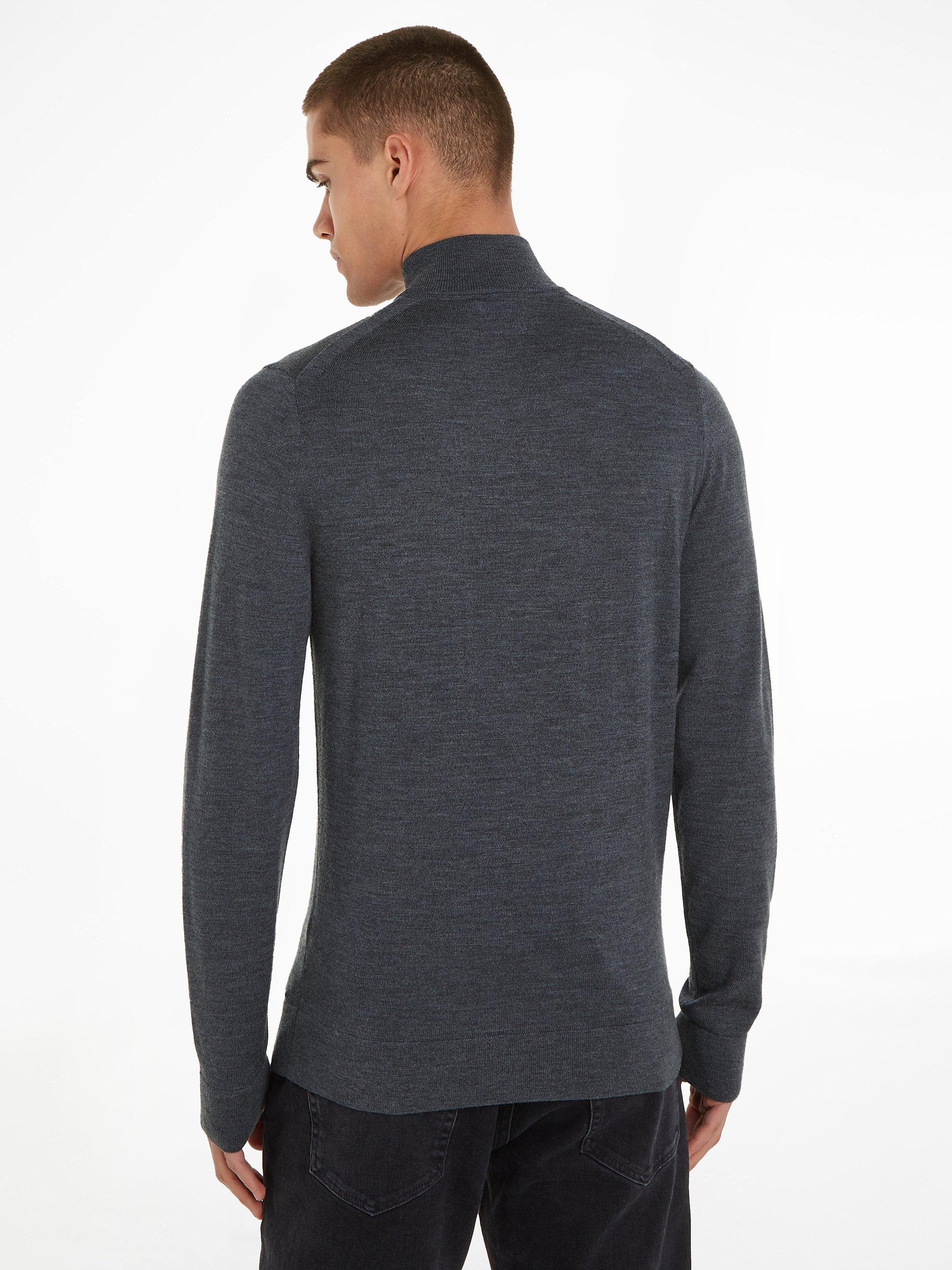 Calvin KleinSuperior Wool Cotton Zip Jumper, Dark Grey Heather