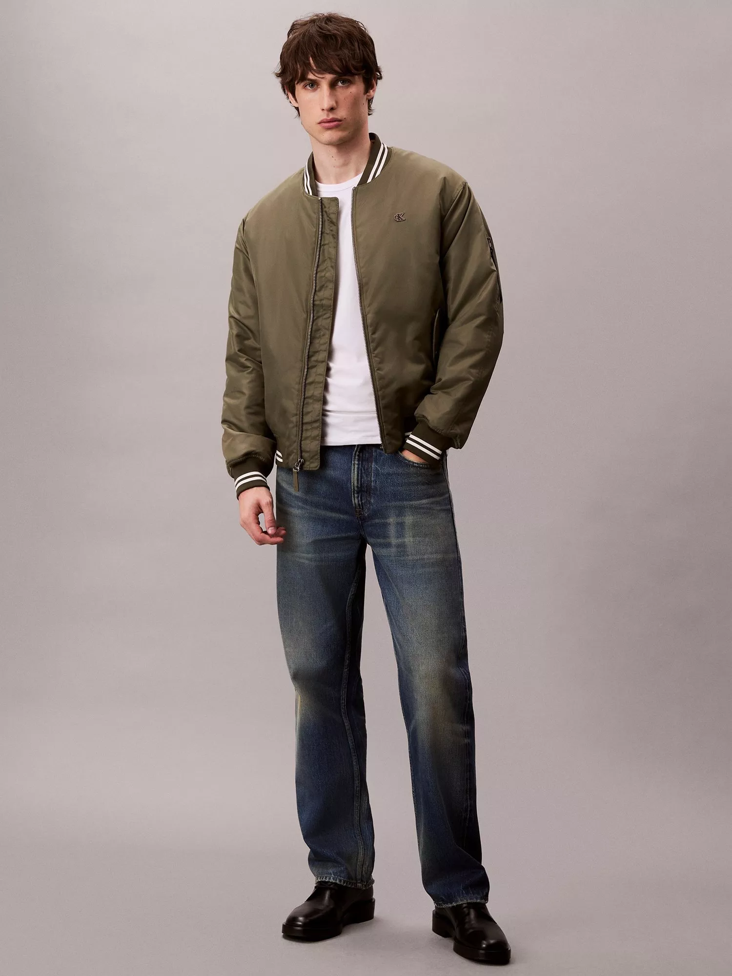 A year-round layering favourite that'll ensure you stay street-style savvy, this bomber jacket is designed by Calvin Klein.