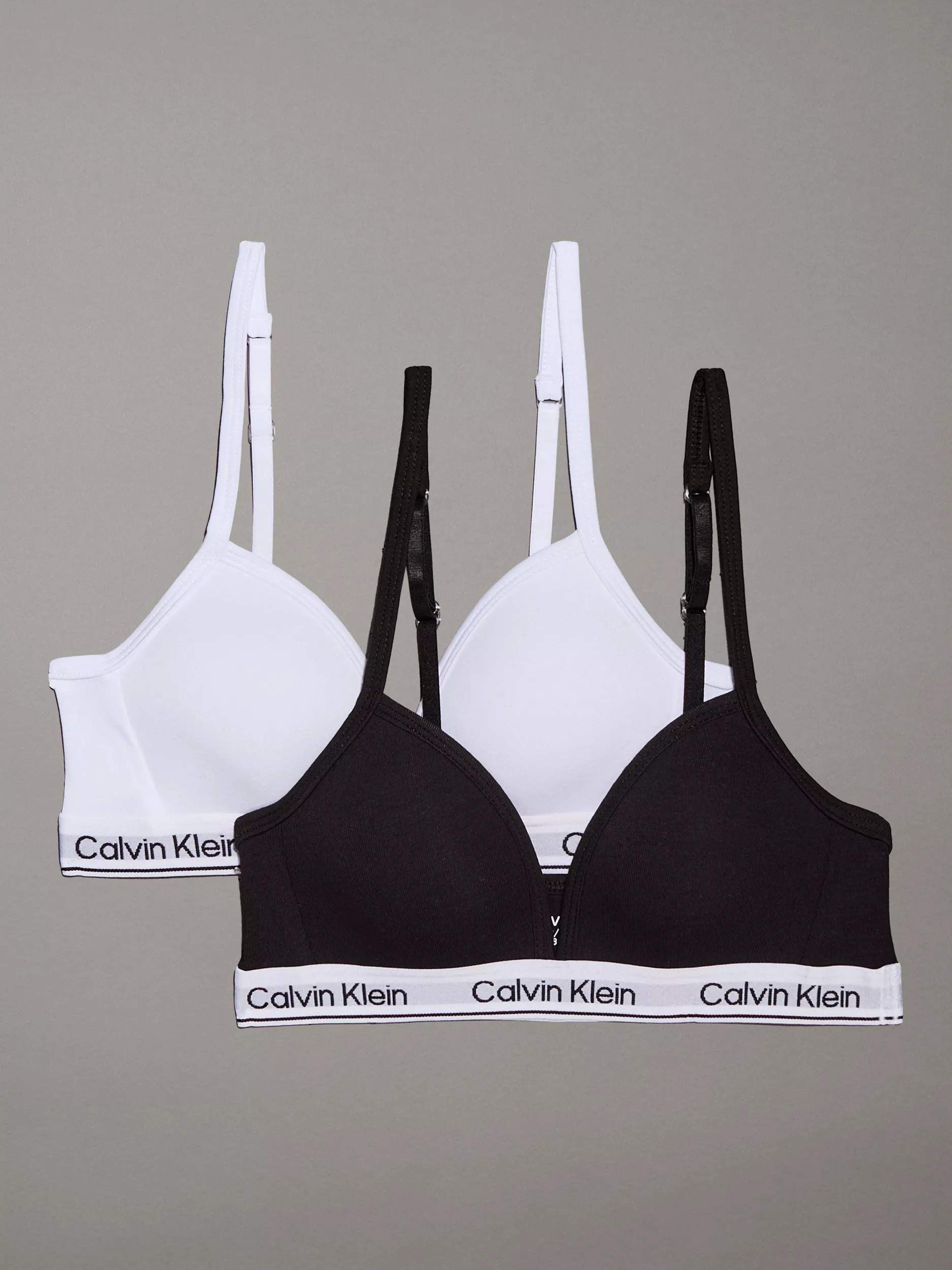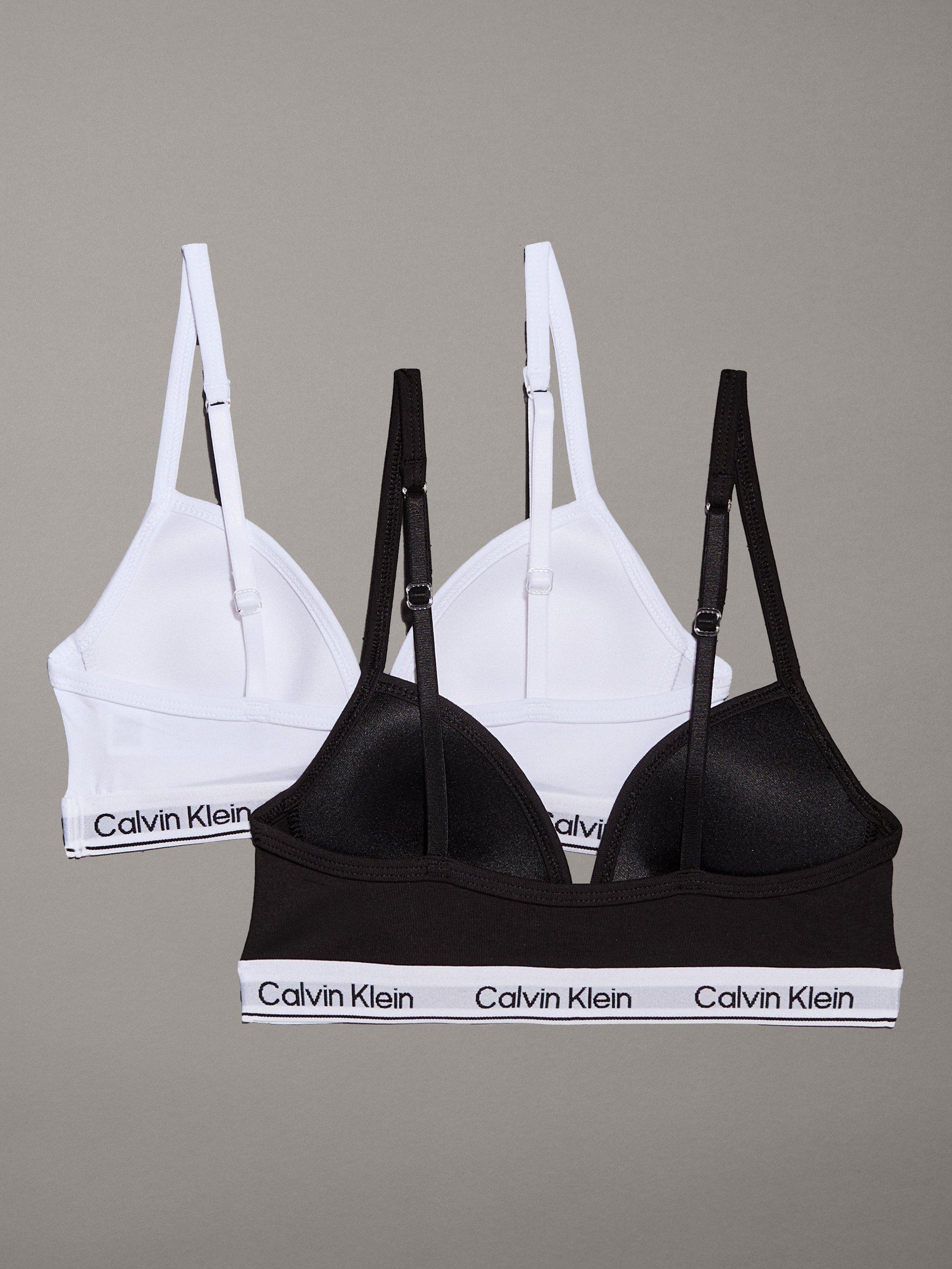 Triangle bra from Calvin Klein Jeans. Choose breathable comfort and a sporty look with the signature modern cotton underwear and loungewear collection. Highlights include; Regenerative cotton elastane blend. Pack of two. Removable pads. Narrow adjustable straps.