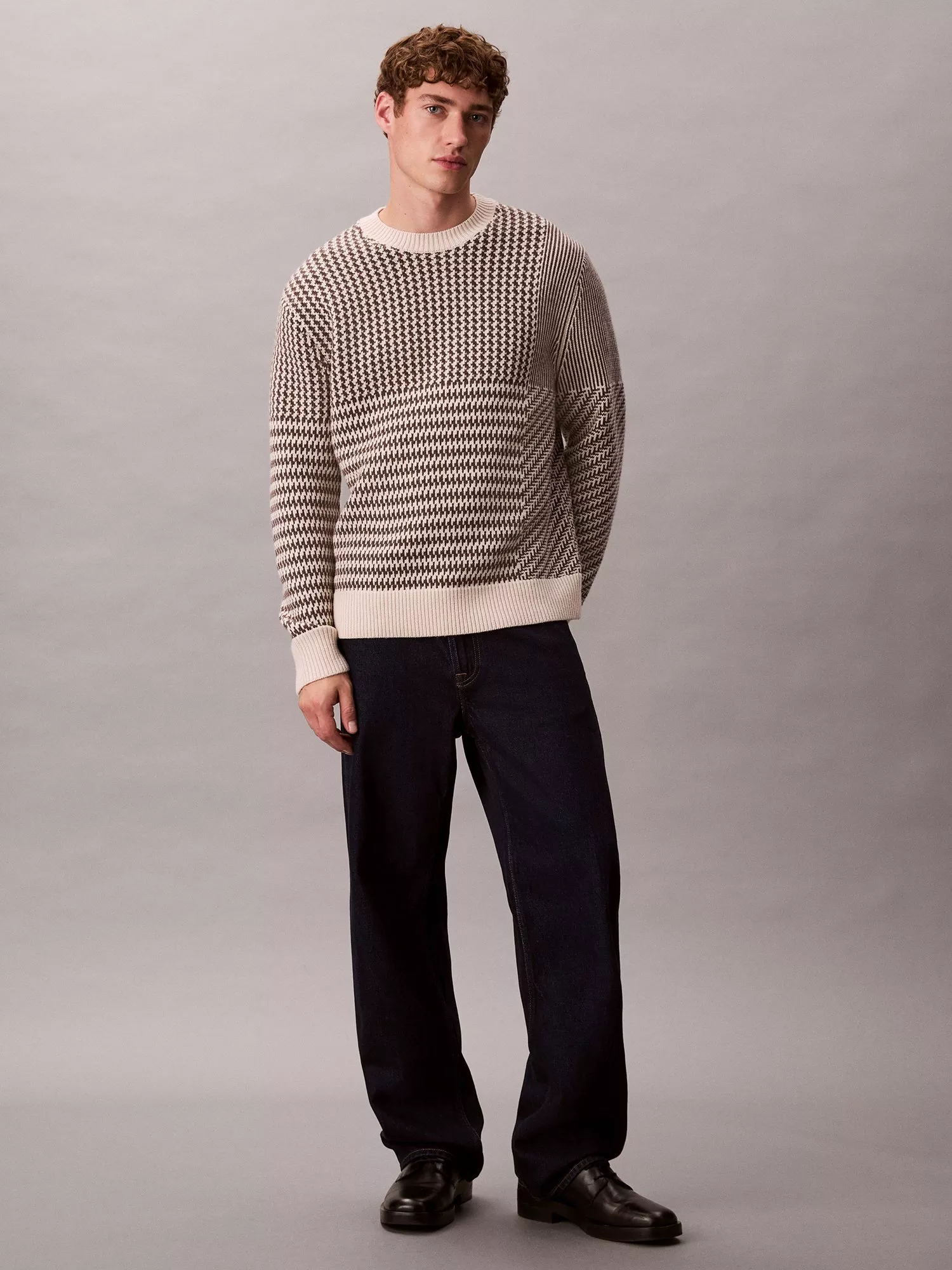Calvin KleinWool Blend Abstract Stripe Jumper, Taupe/Multi