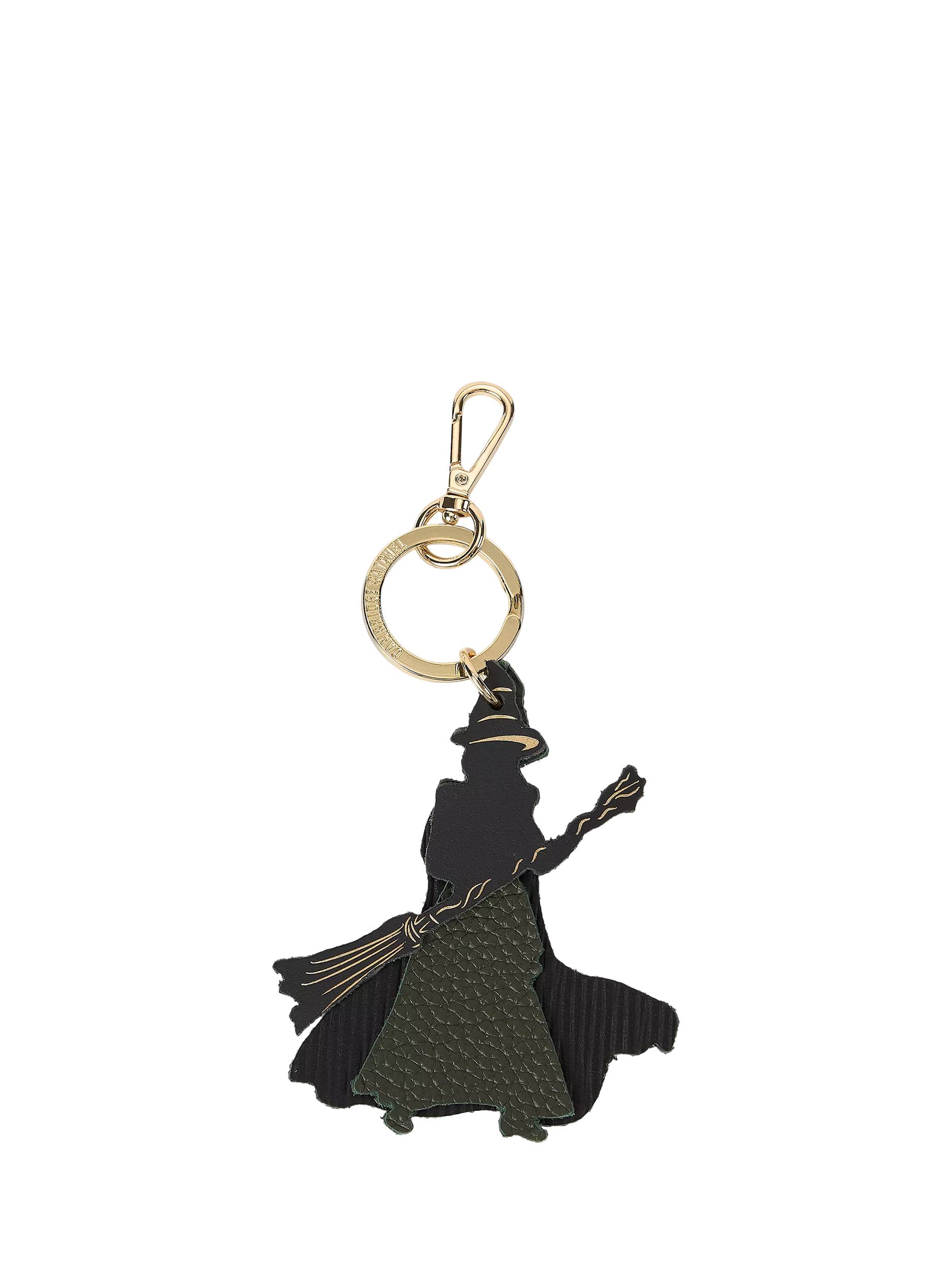 This thrilling charm is a beautiful piece. Crafted from 100% leather with calf grain detailing and gold foiling, it's been precision cut in the shape of Elphaba and is a great way to unleash a little styling magic to your bag. Makes a perfect gift, for you or for someone special.
